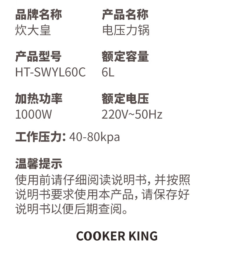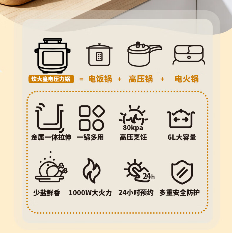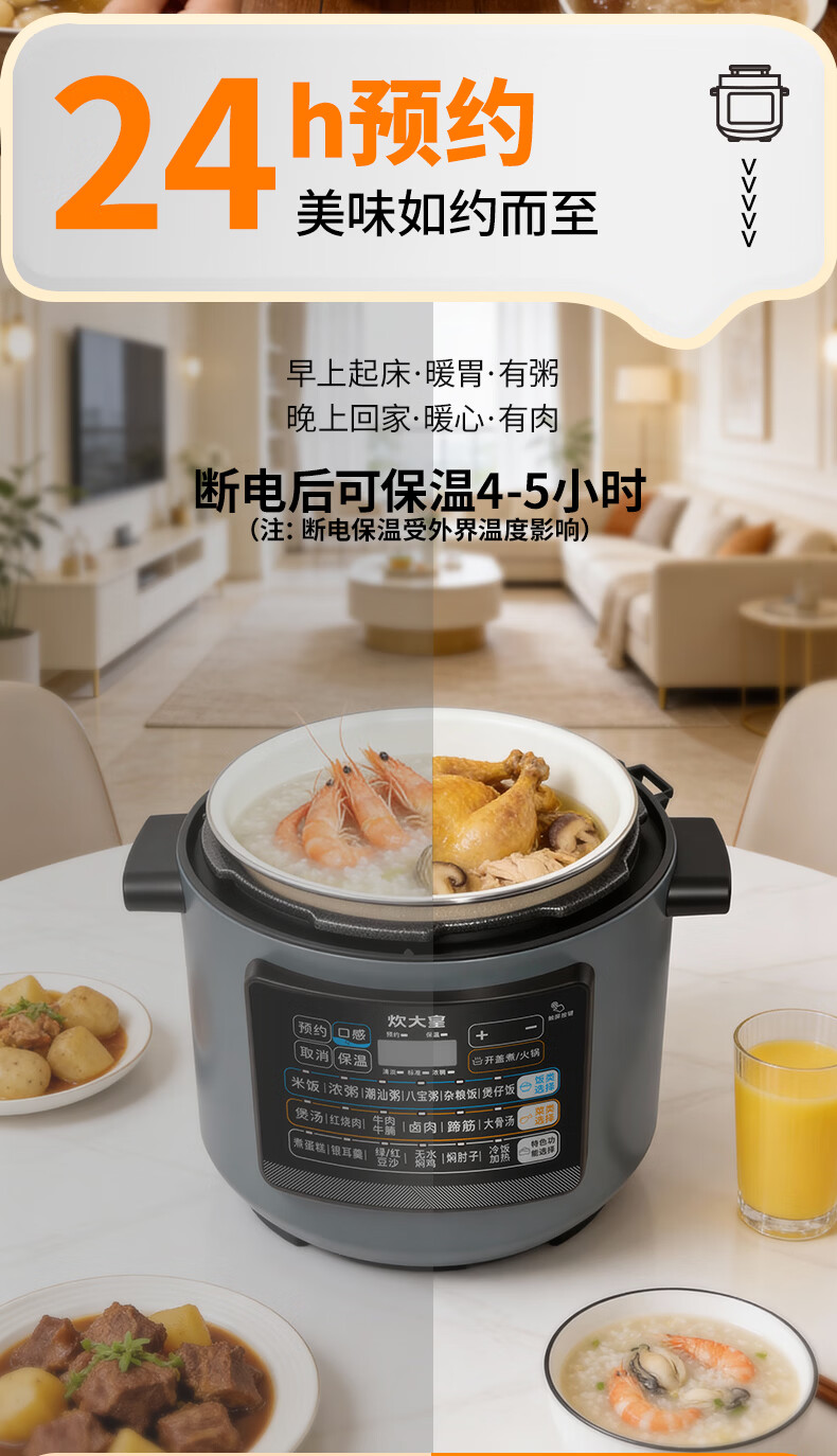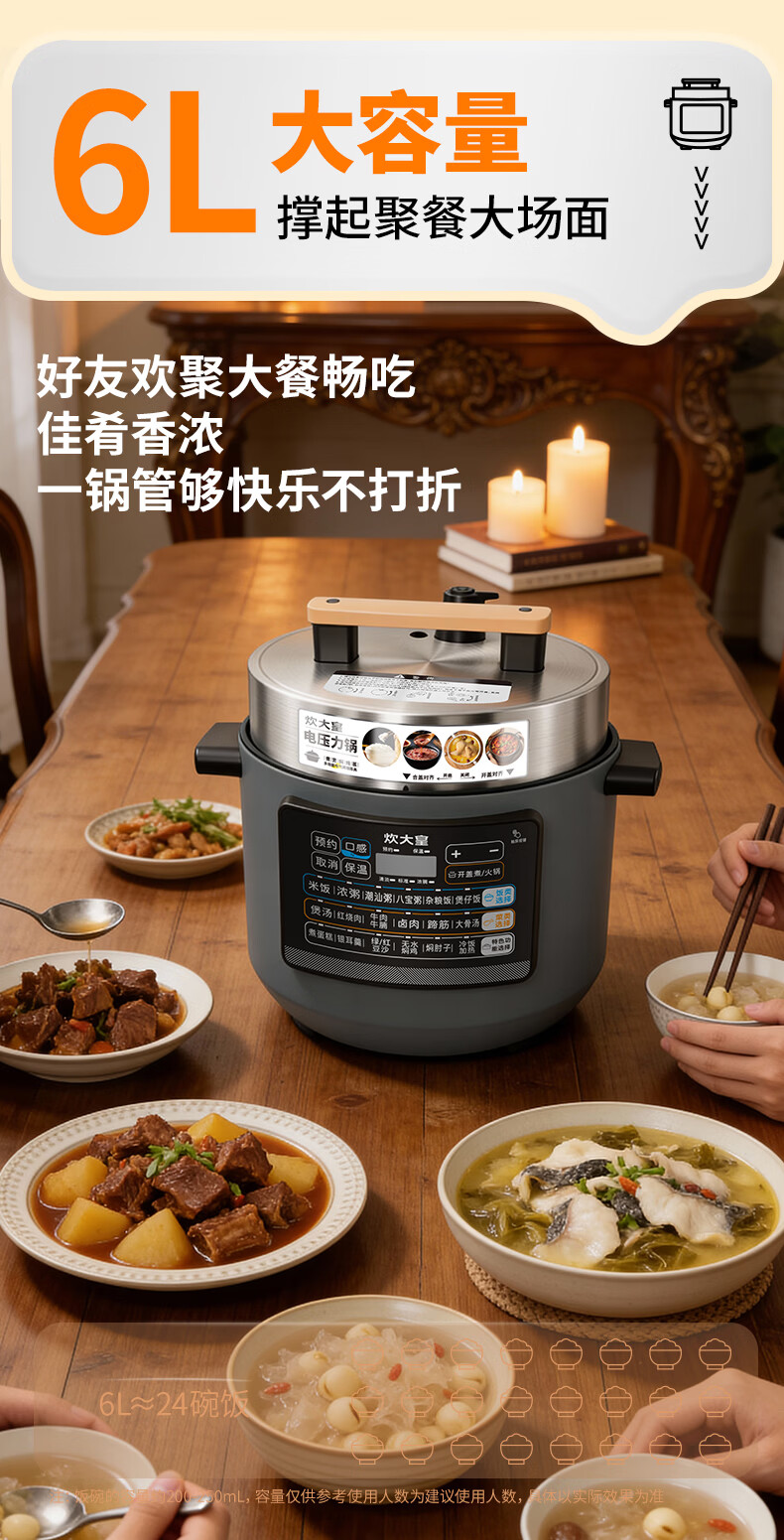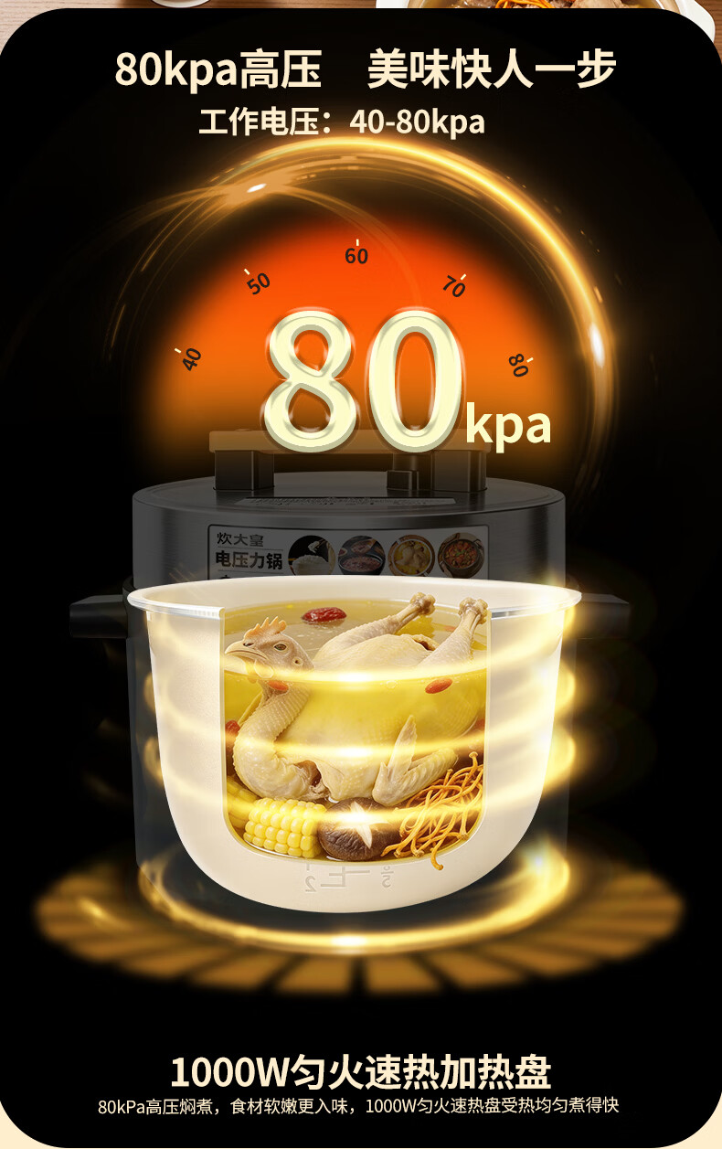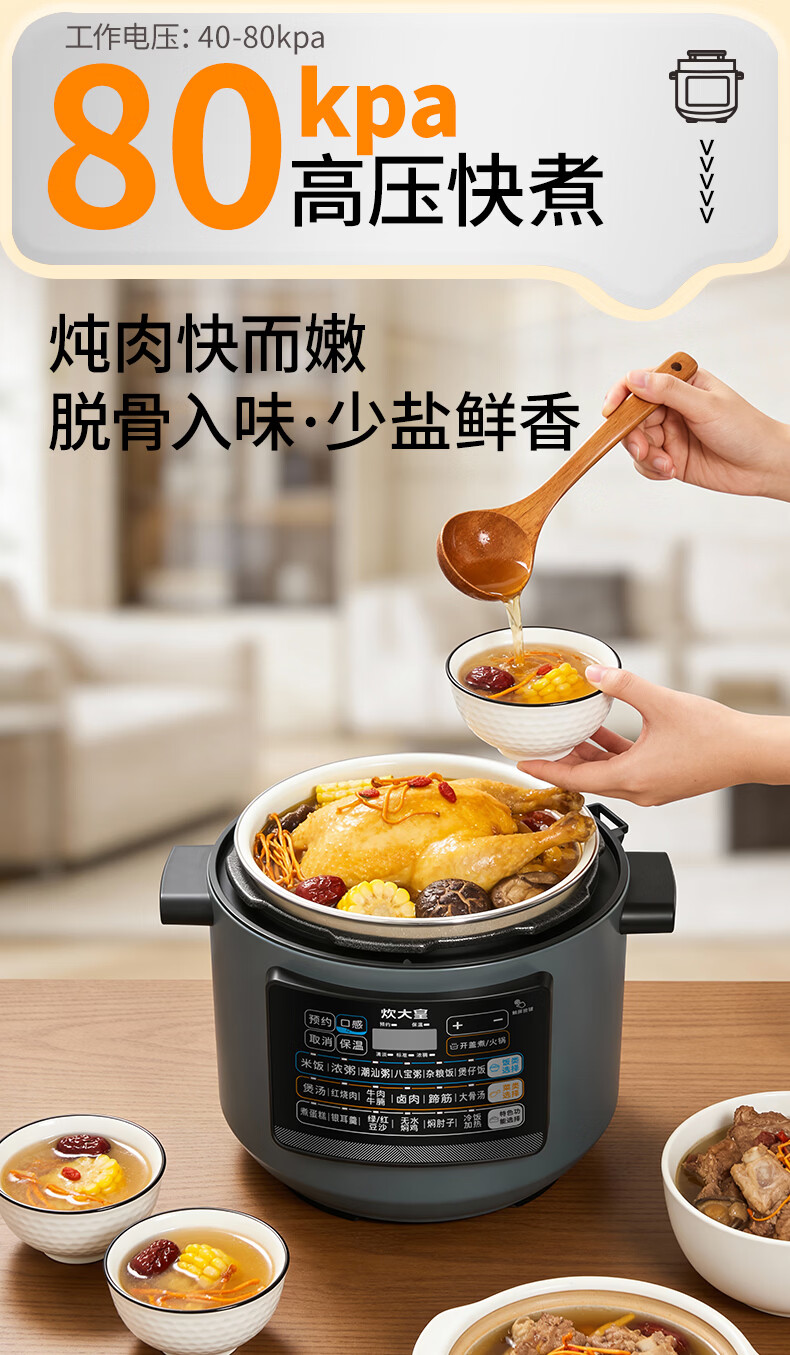 炊大皇(COOKER KING)电压力锅6L双胆家用全自动智能预约炖肉煲汤开盖压力锅 电压力锅 6L