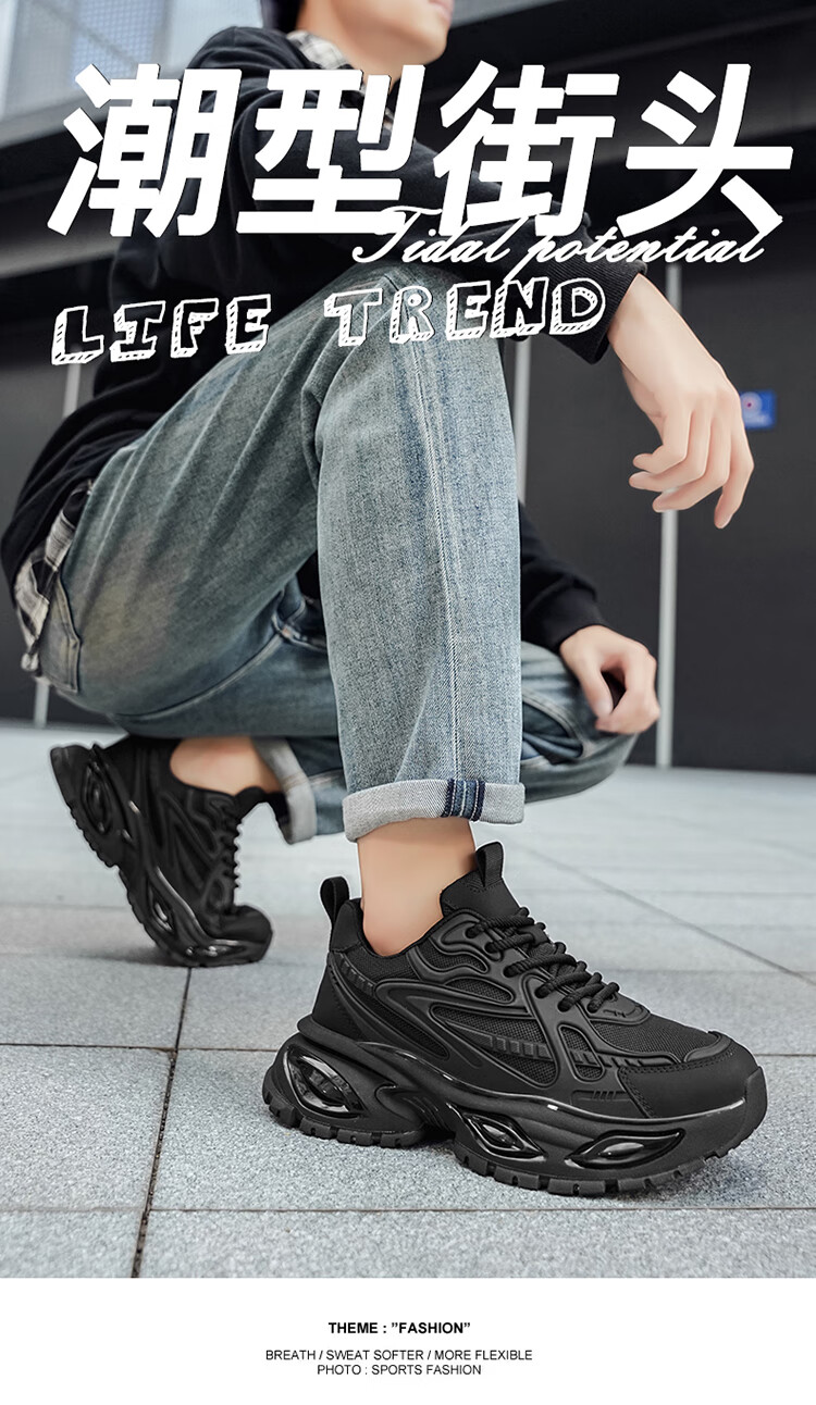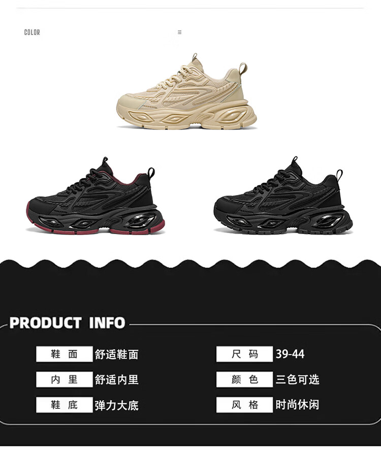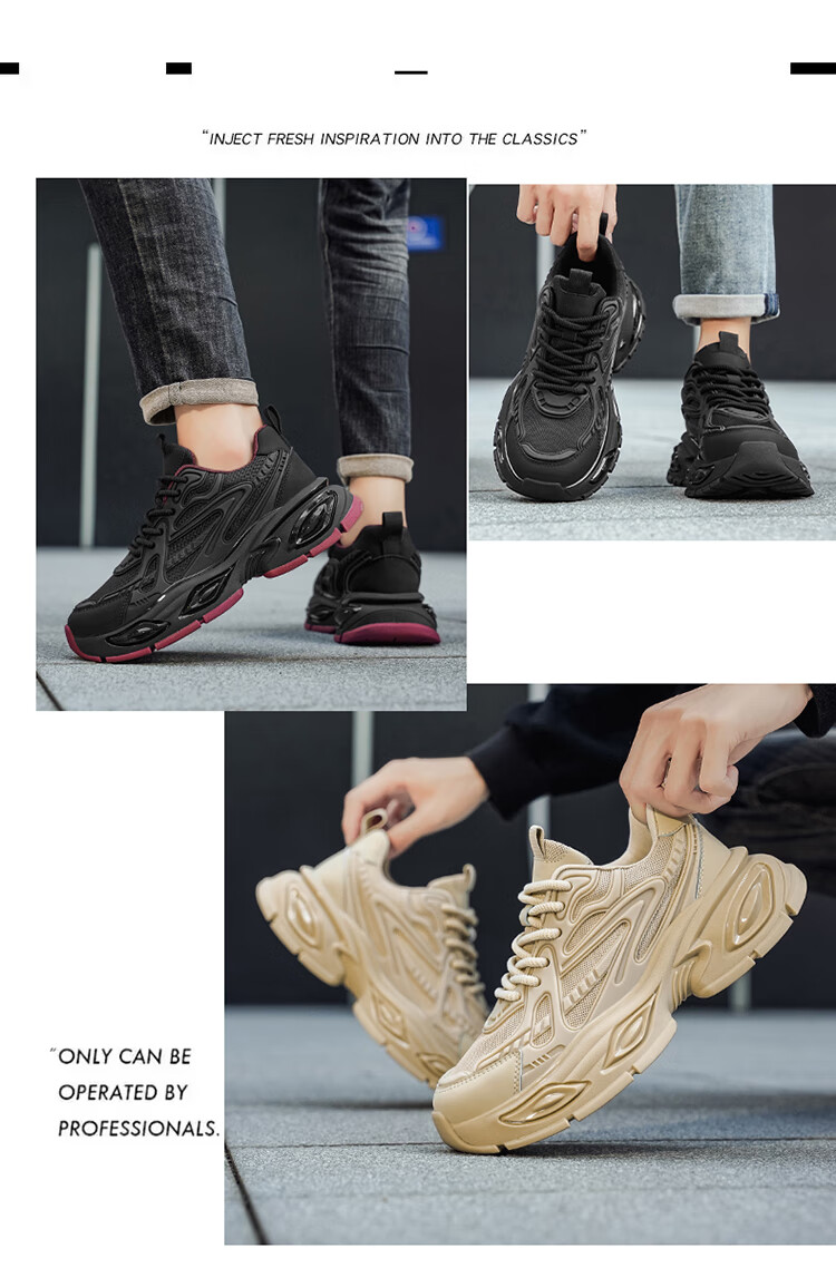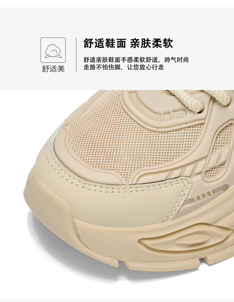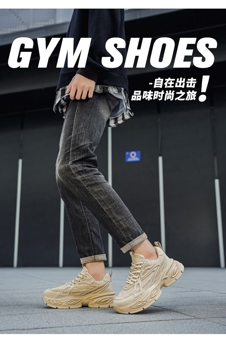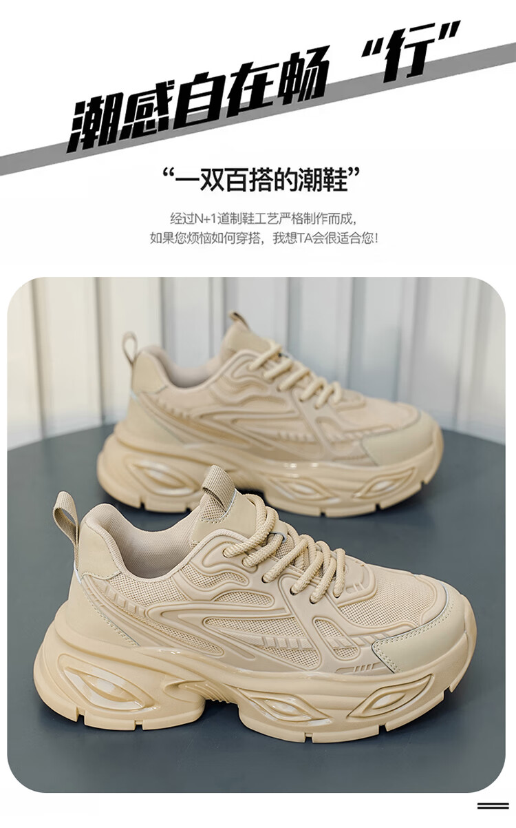 SHENGRUIGONGNIU新品欧洲站轻奢黑武士男鞋气垫减震跑步运动鞋休闲增高百搭老爹鞋 【法国轻奢名品】杏色 44