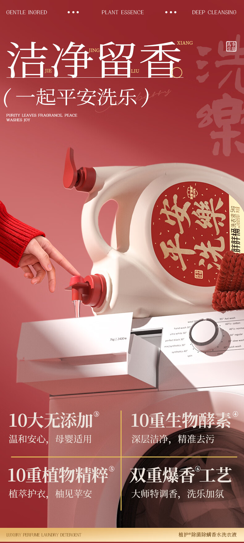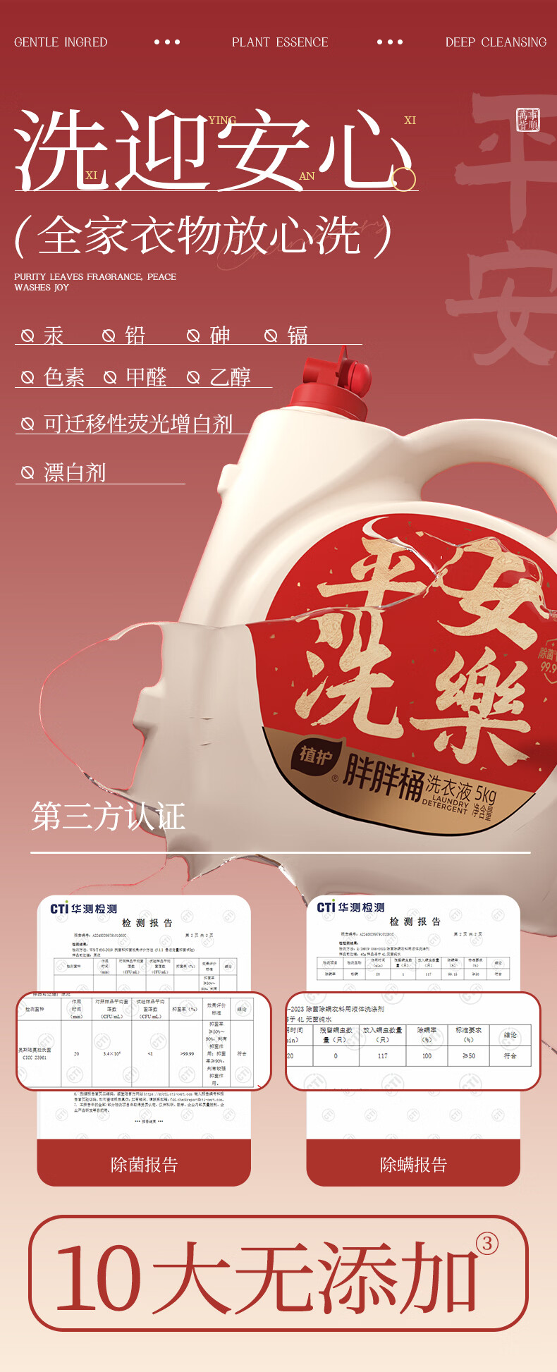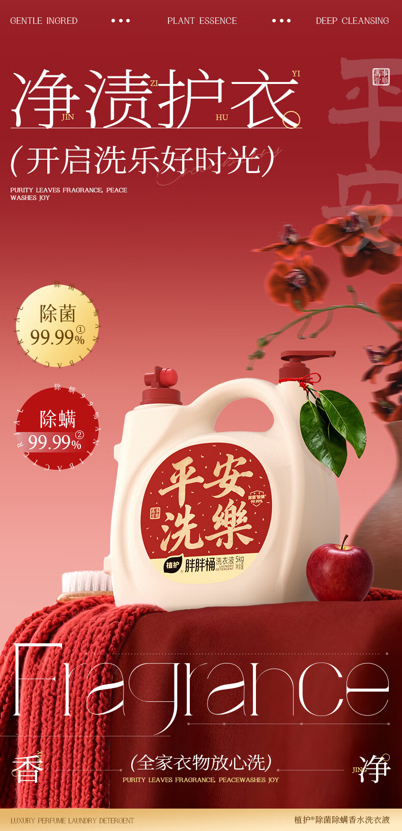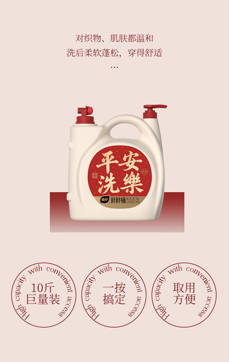 植护除菌除螨99.9%胖胖桶装洗衣液家用囤货深层洁净酵素去渍 【平安洗乐】10斤+20g内衣液*9袋