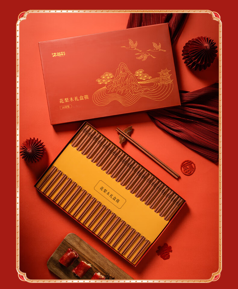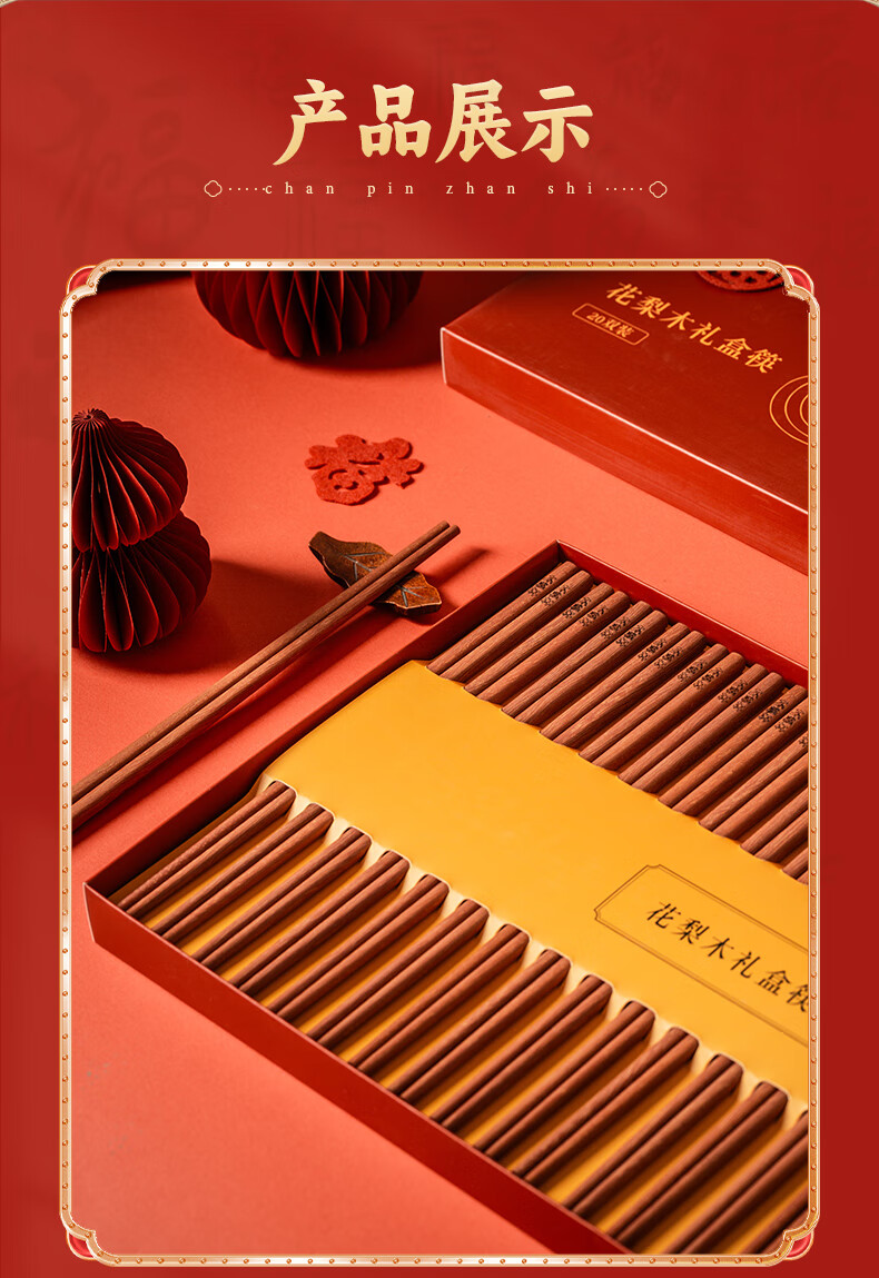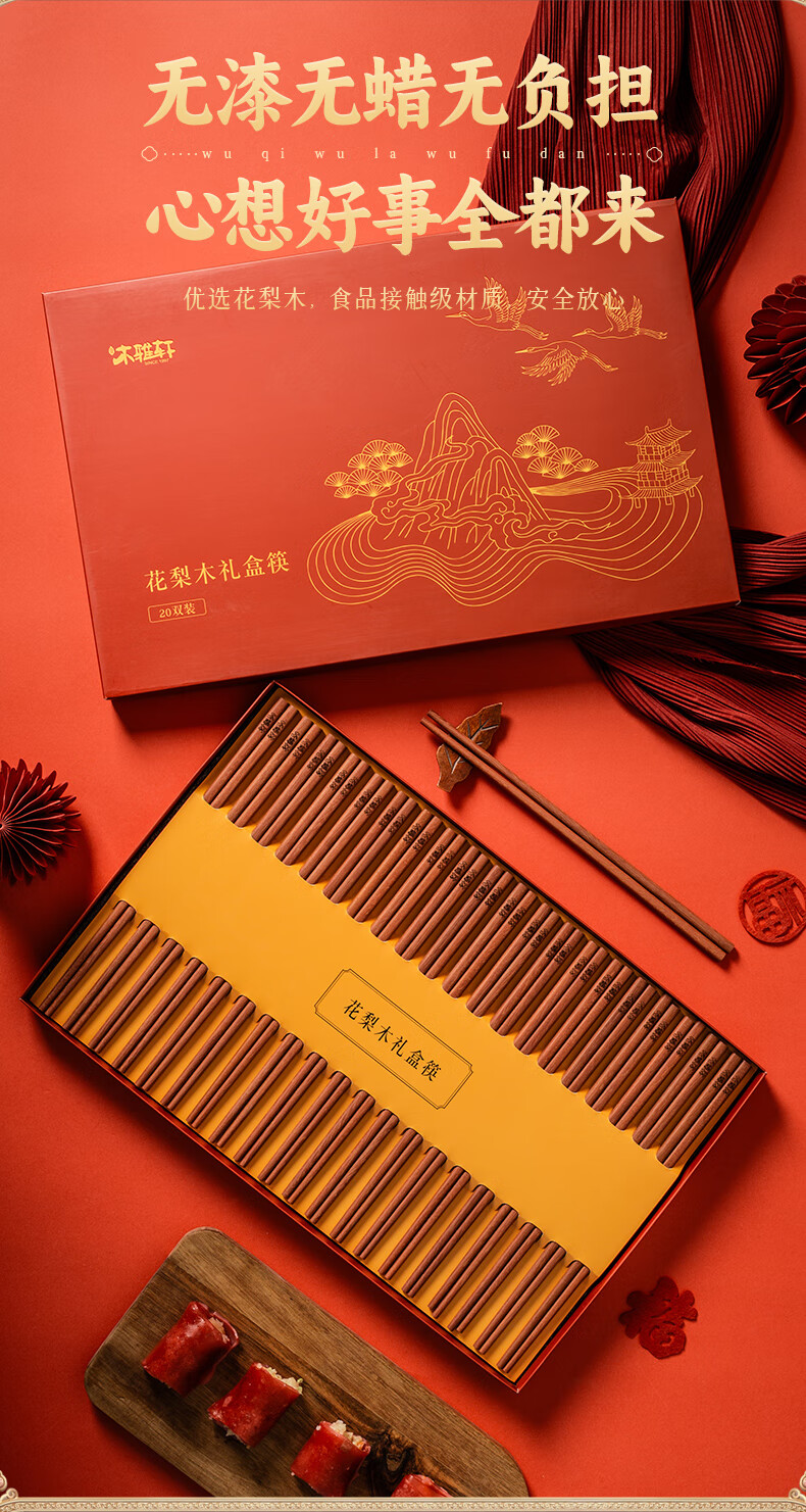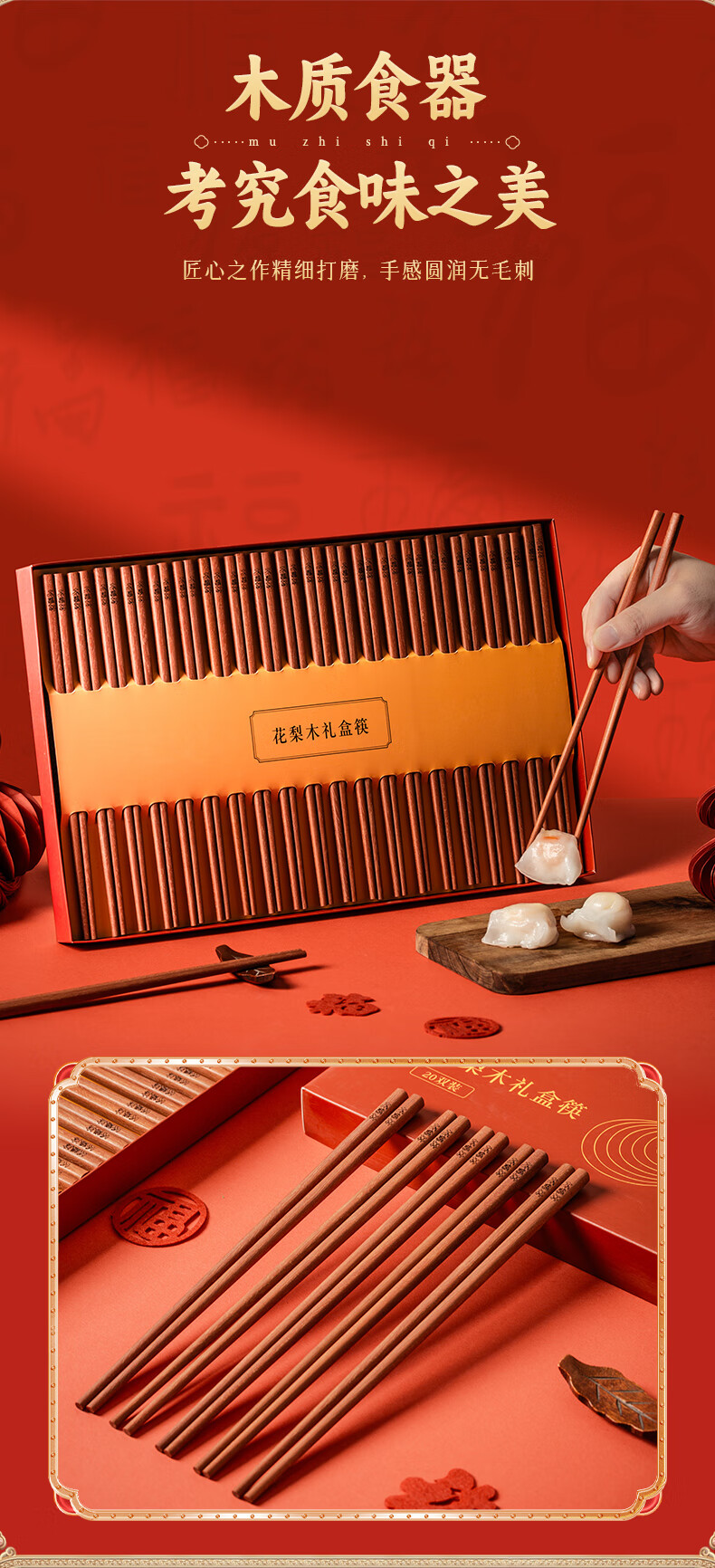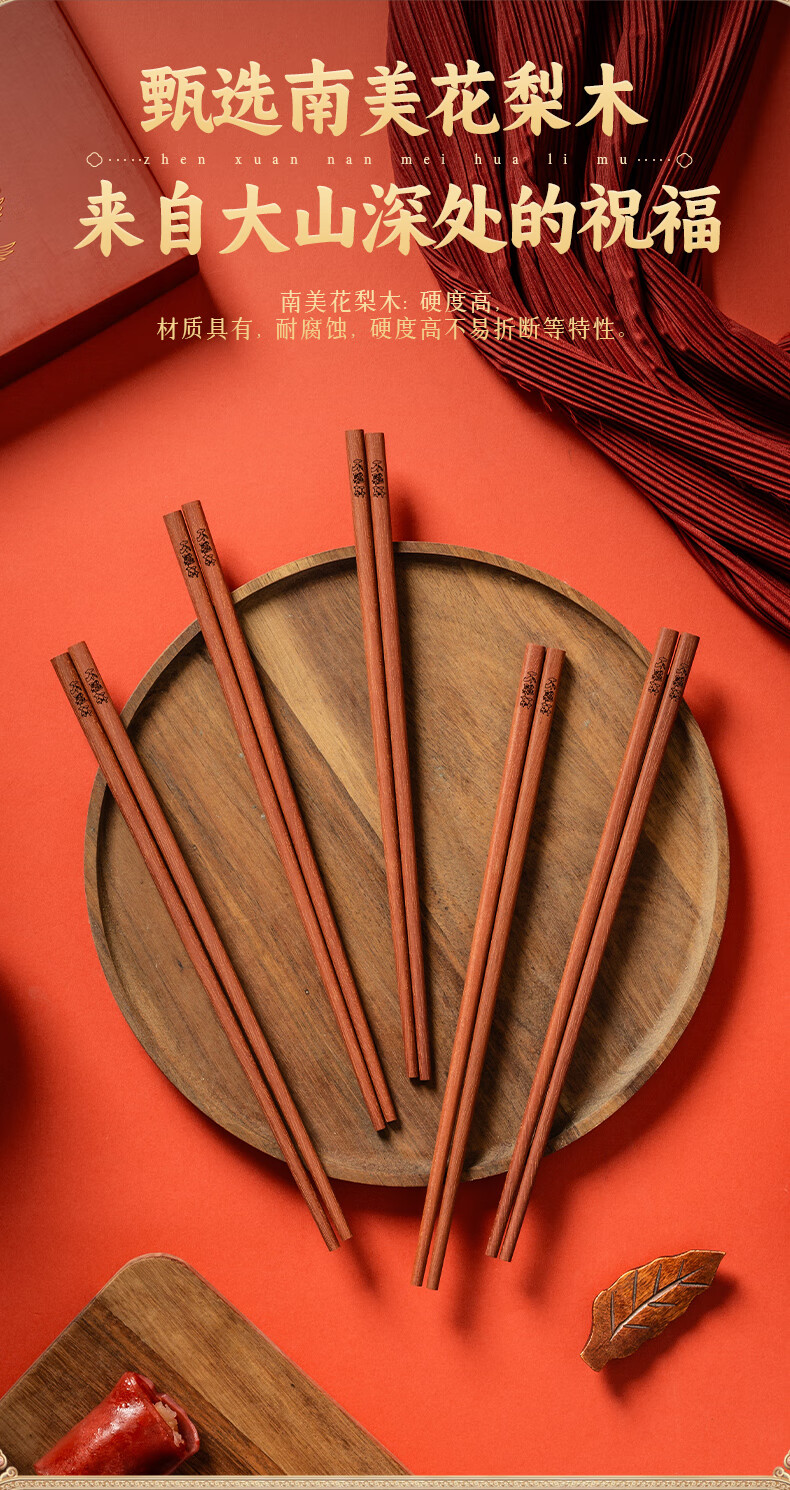 木雅轩高档花梨木筷子食品接触用实木筷家用无漆无蜡原木筷 20双礼盒套装