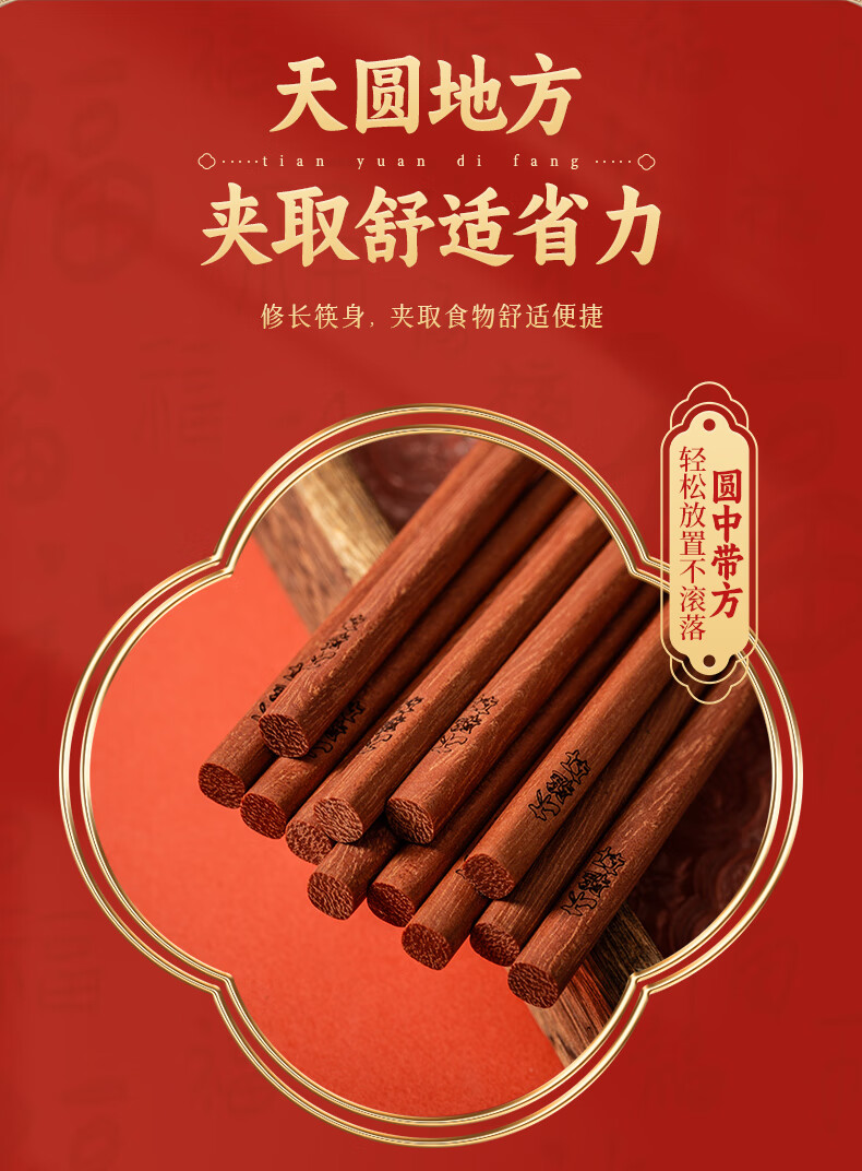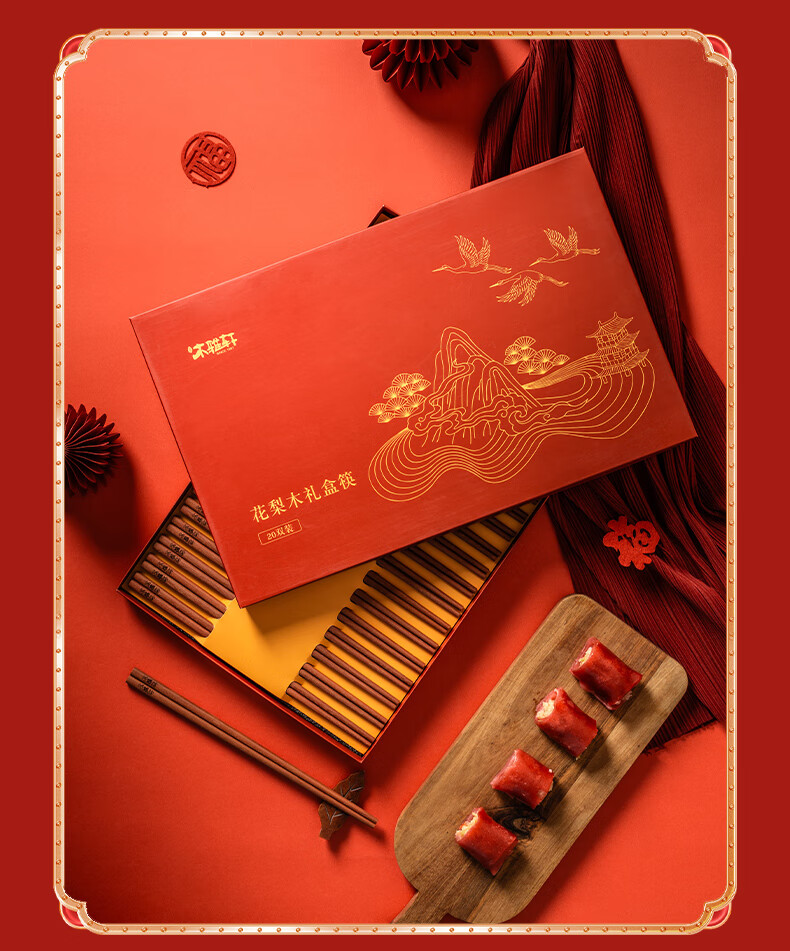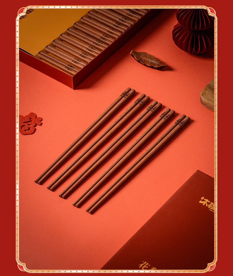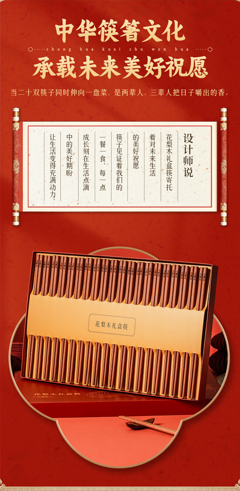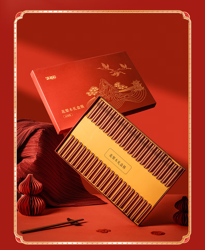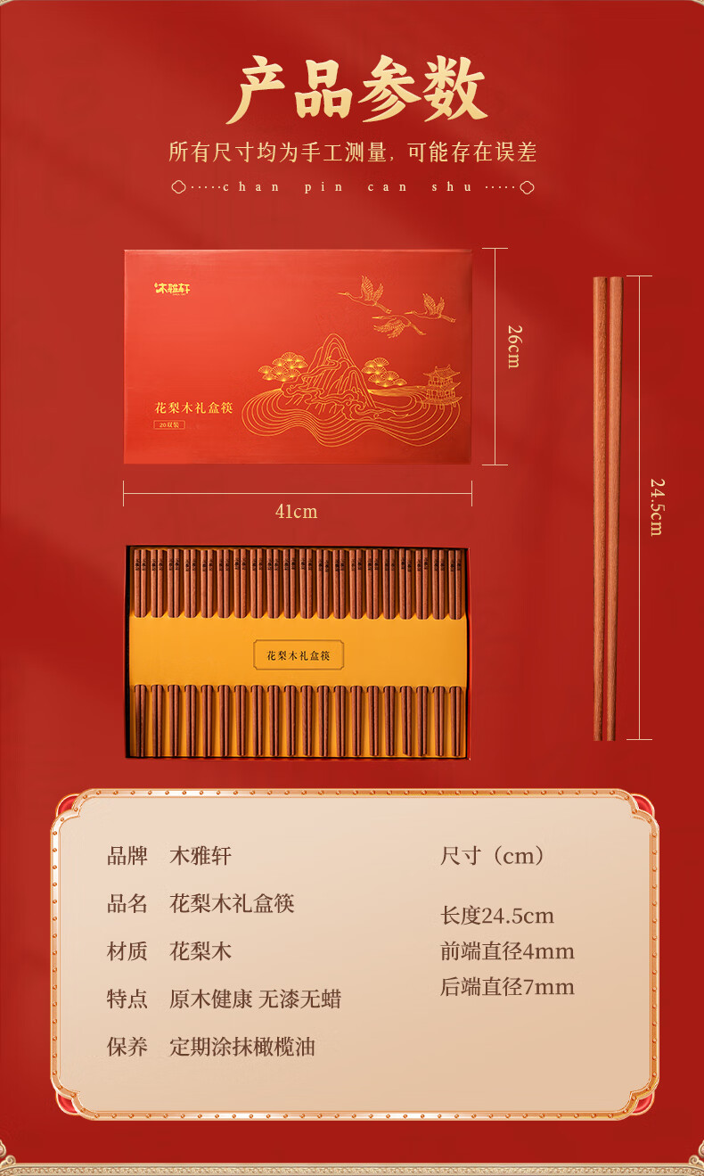 木雅轩高档花梨木筷子食品接触用实木筷家用无漆无蜡原木筷 20双礼盒套装