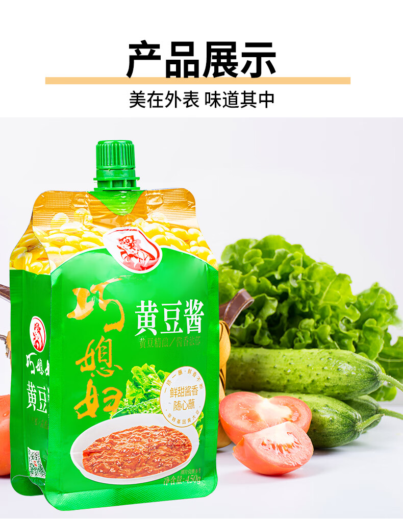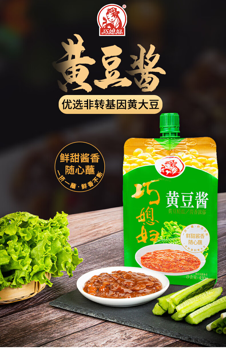 巧媳妇 黄豆酱450g袋装蘸食酱焖红烧拌饭拌面酱豆瓣酱调料便携厨房炒菜 【零添加】450g豆瓣酱*2包