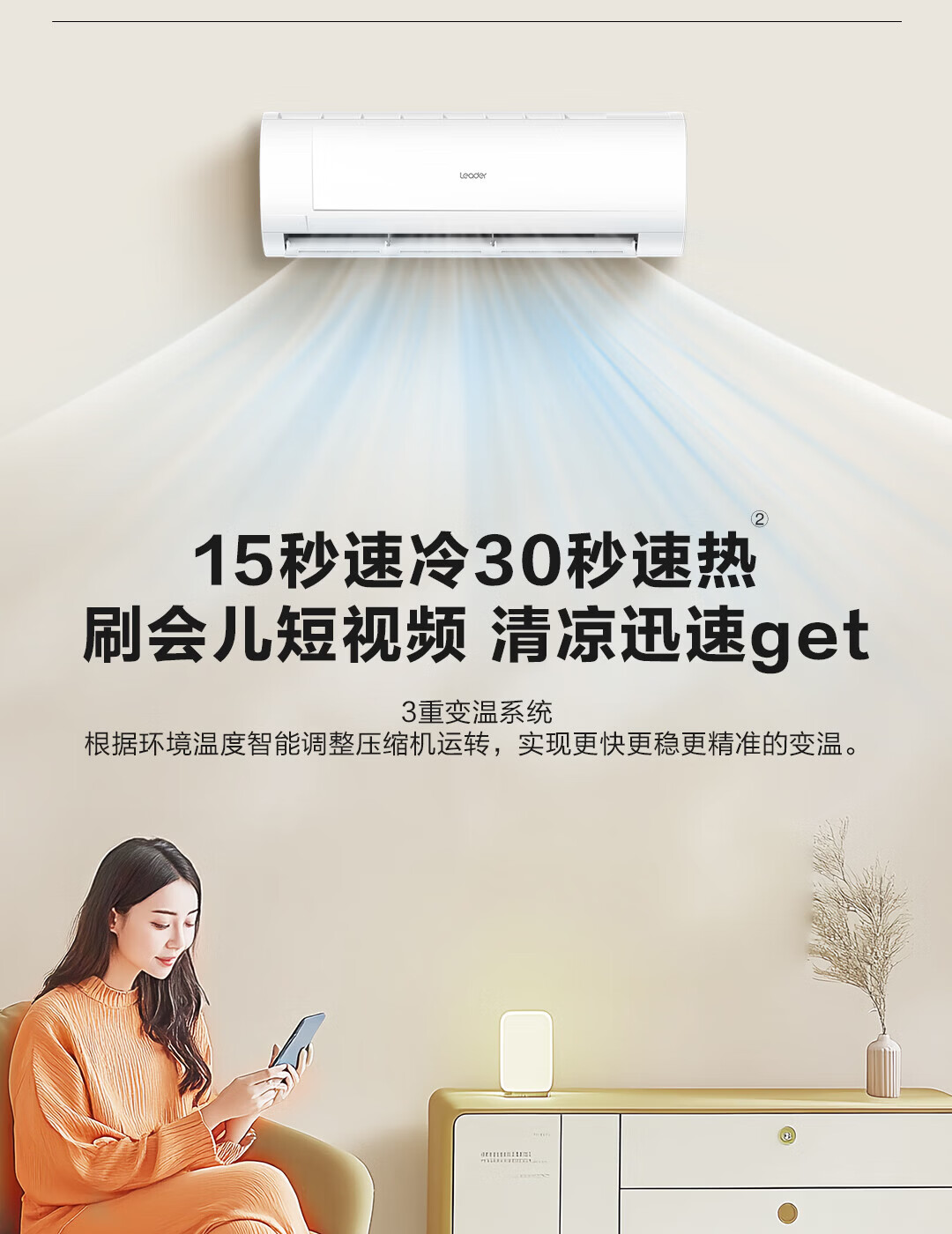 海尔(Haier)统帅空调3匹挂机巨凉快 强劲大风量 新一级能效冷暖两用自清洁卧室客厅壁挂式KFR-72GW/19MDA81TU1 巨凉快 十级直流电机 3匹 72MDA