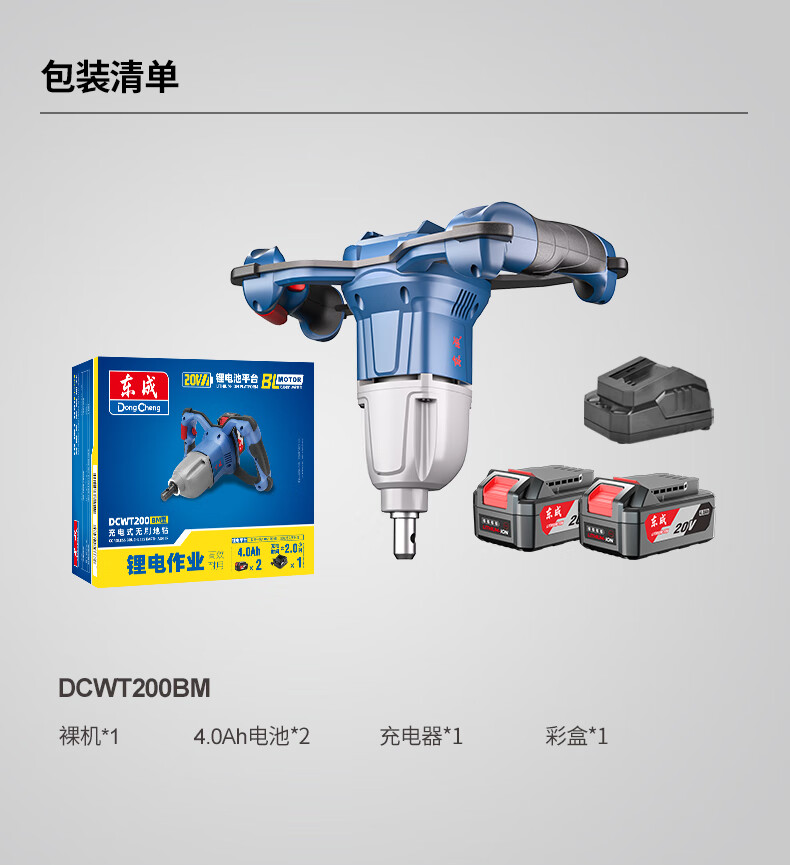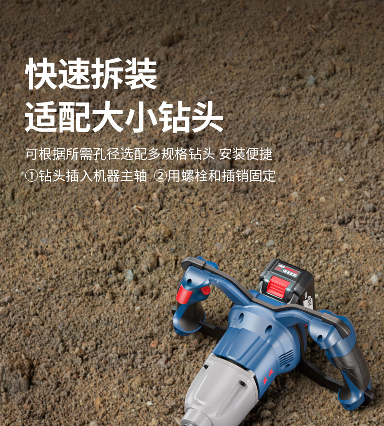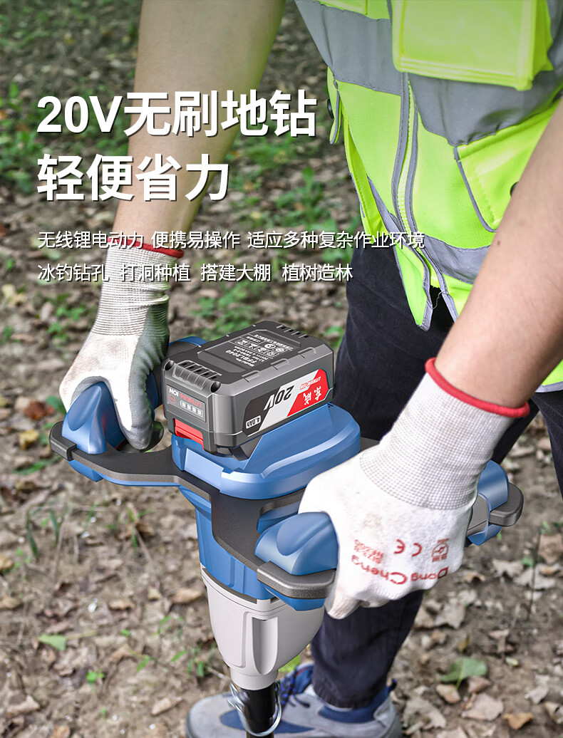 东成 锂电充电无刷地钻大功率地钻挖坑机钻地果园植树施肥打桩打洞机 DCWT200BM 无刷双电20V4.0ah 40N 500W