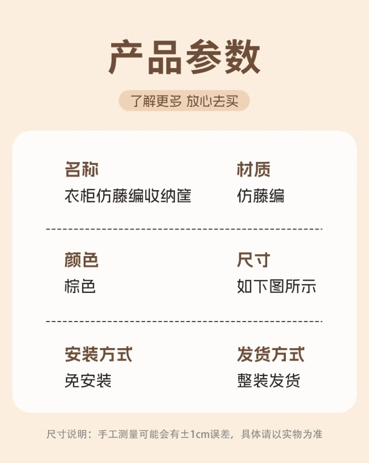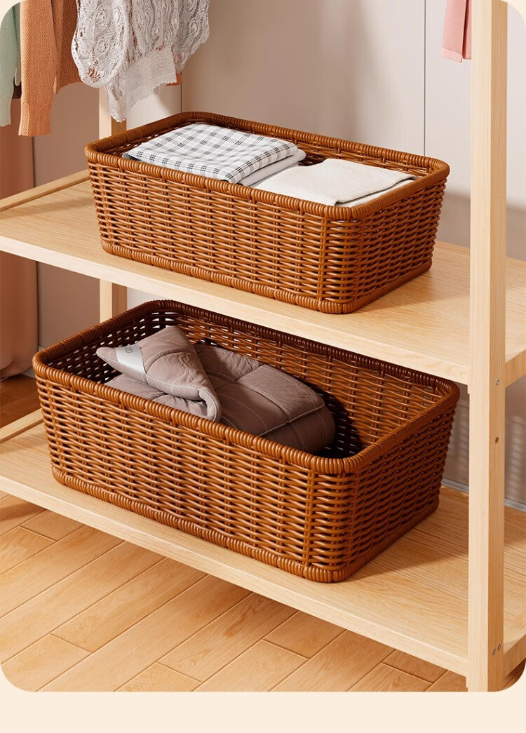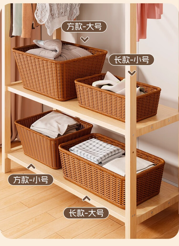 尔思家衣物收纳箱衣柜分层神器放衣柜学生宿舍用衣服整理盒方形脏衣服篓 棕色长款-小号