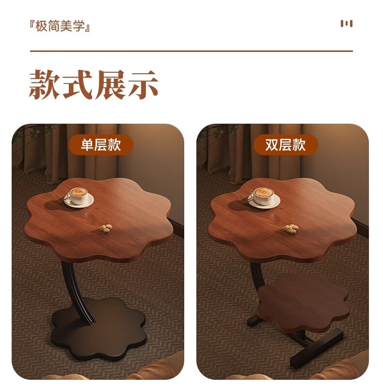 馨婺家床边桌边几高级感卧室床头柜小户型现代简约高级感客厅沙发小茶几 胡桃色+黑架-小号【单层】稳固升级