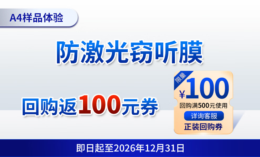 SANYOUA4体验样返100元回购券中国航天SANYOU山由防激光红外阻断窃听膜 A4样品:防激光窃听膜 210x297mm