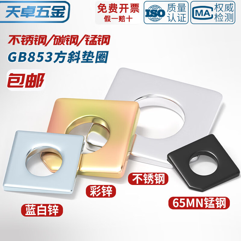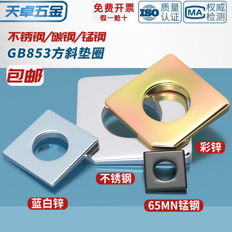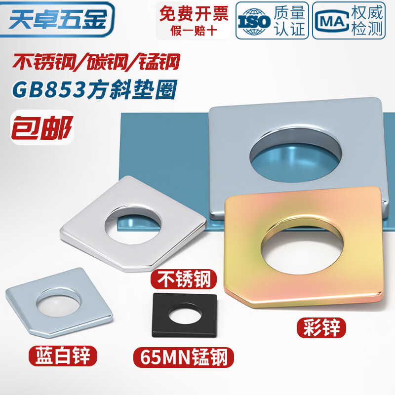 天卓五金GB852工字钢用方斜垫片垫圈 发黑方斜平垫四方斜垫M6M8M20M24M30 ---以下为GB852 工字钢用 碳钢材质---