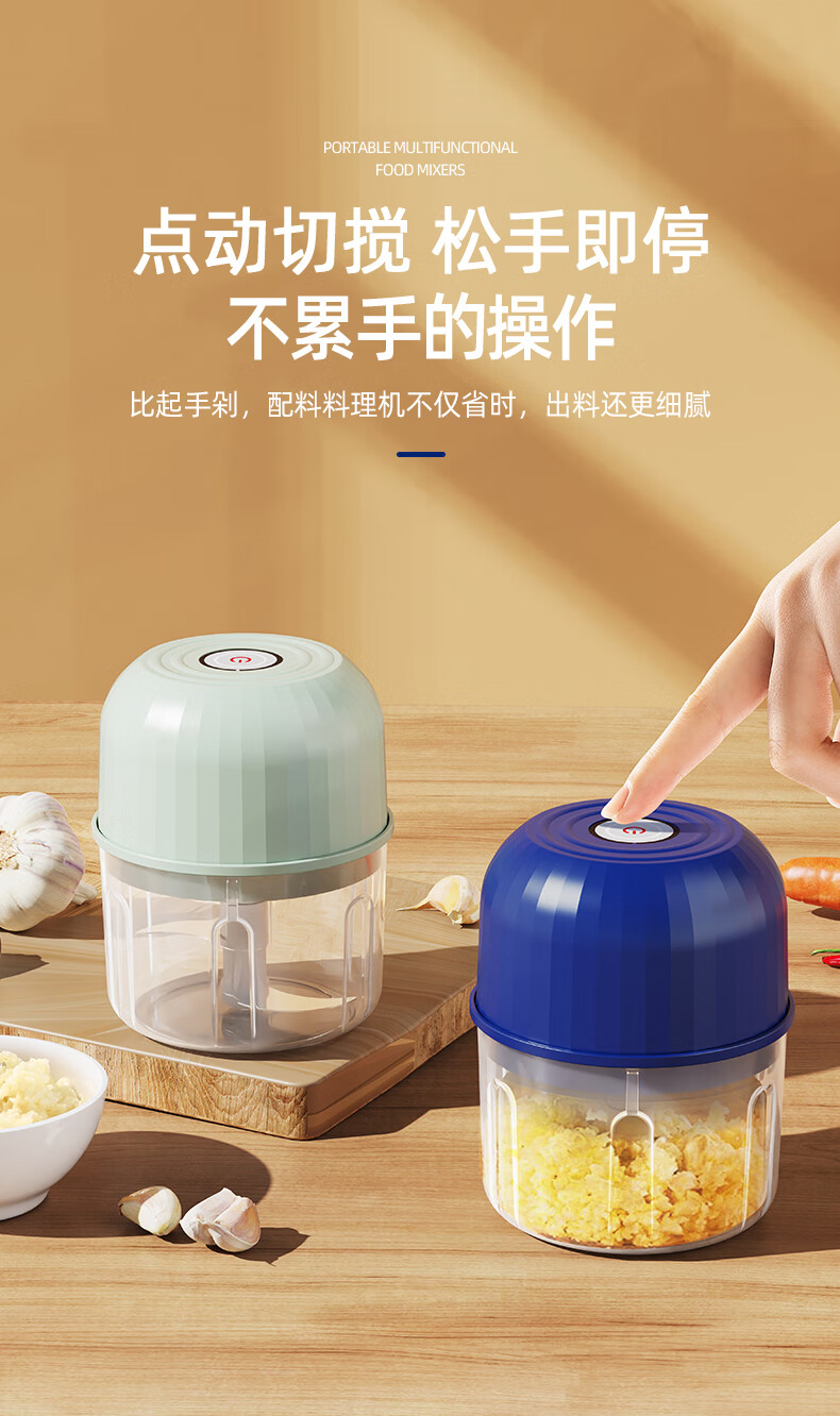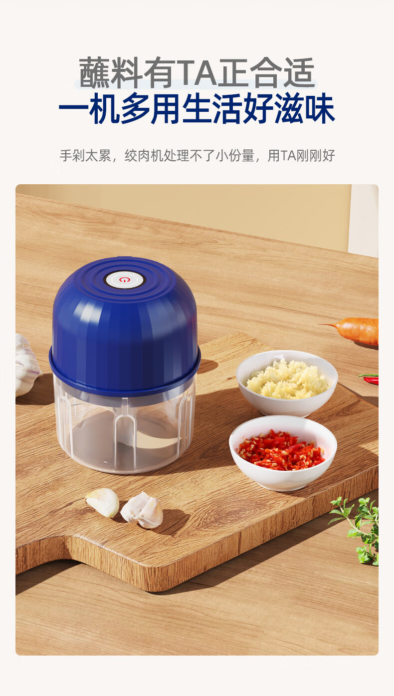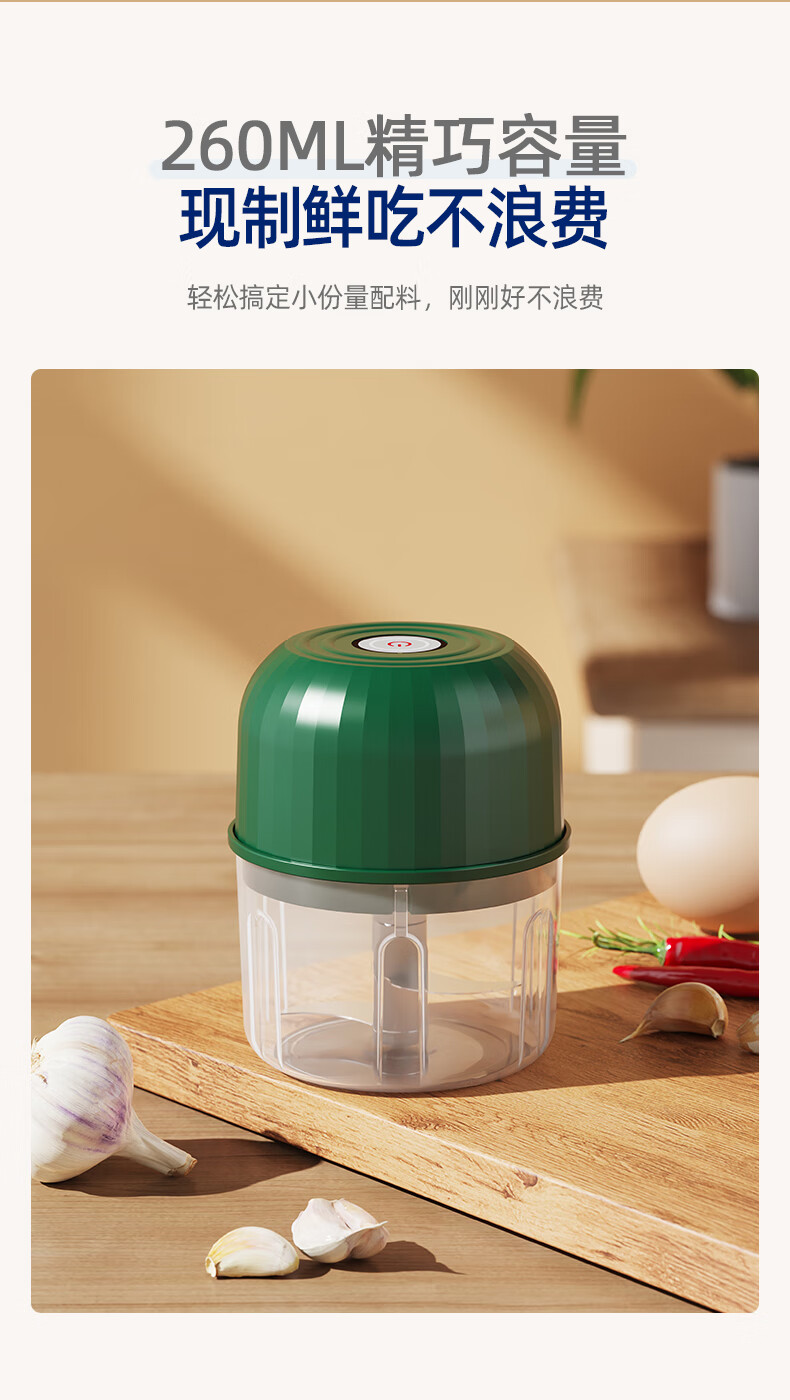 绞肉机小型打蒜器厨房家用绞蒜切蒜器多功能辅食料理机无线电动蒜泥神器 浅绿色 0.26L 2叶刀