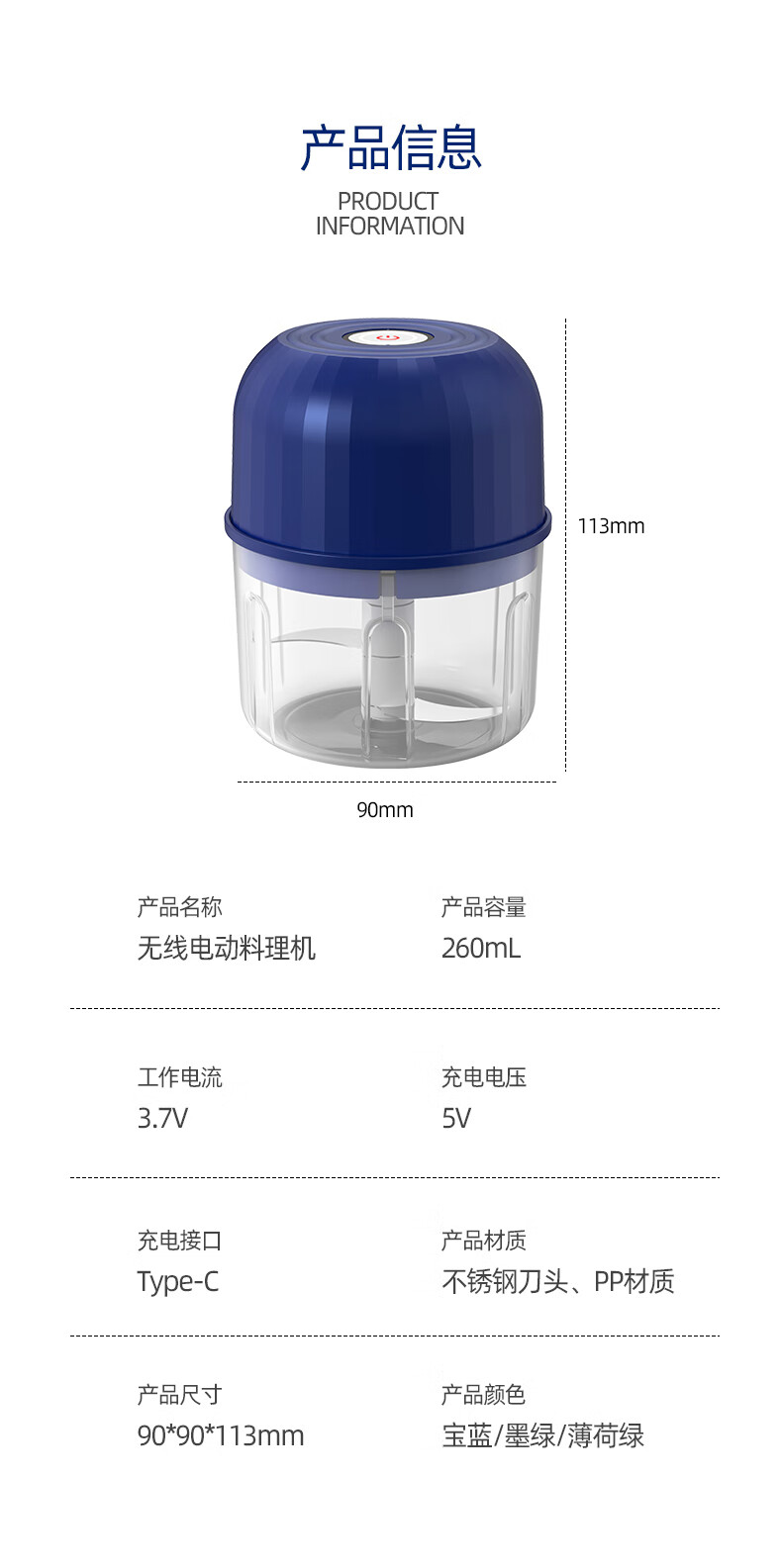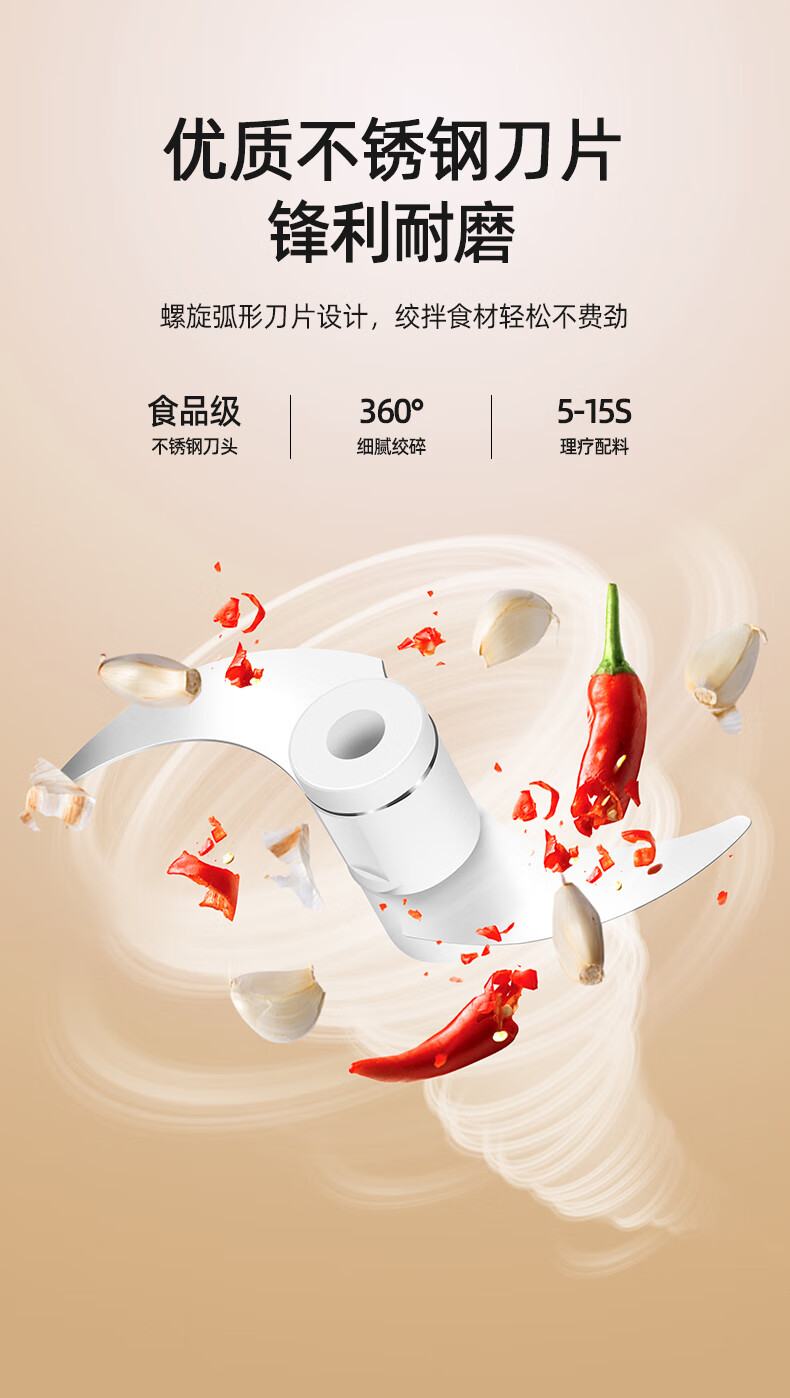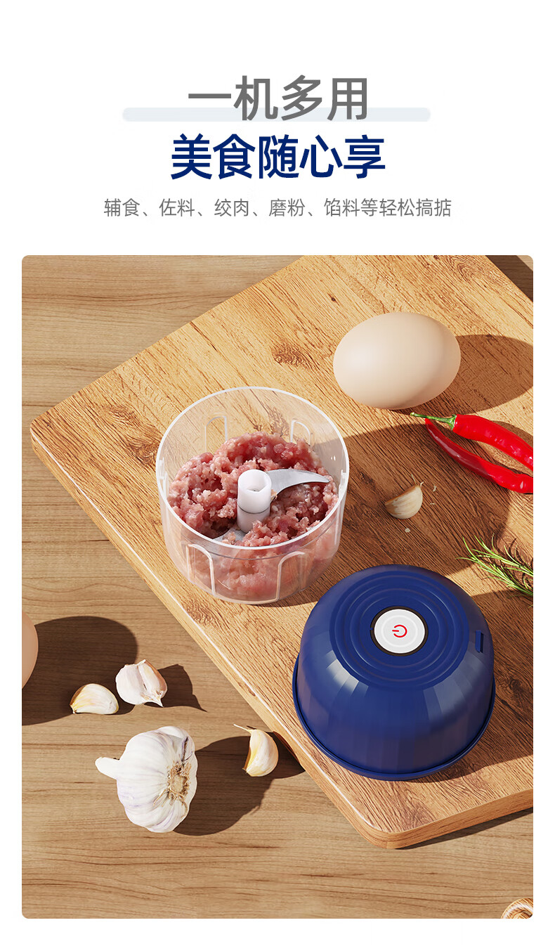绞肉机小型打蒜器厨房家用绞蒜切蒜器多功能辅食料理机无线电动蒜泥神器 浅绿色 0.26L 2叶刀