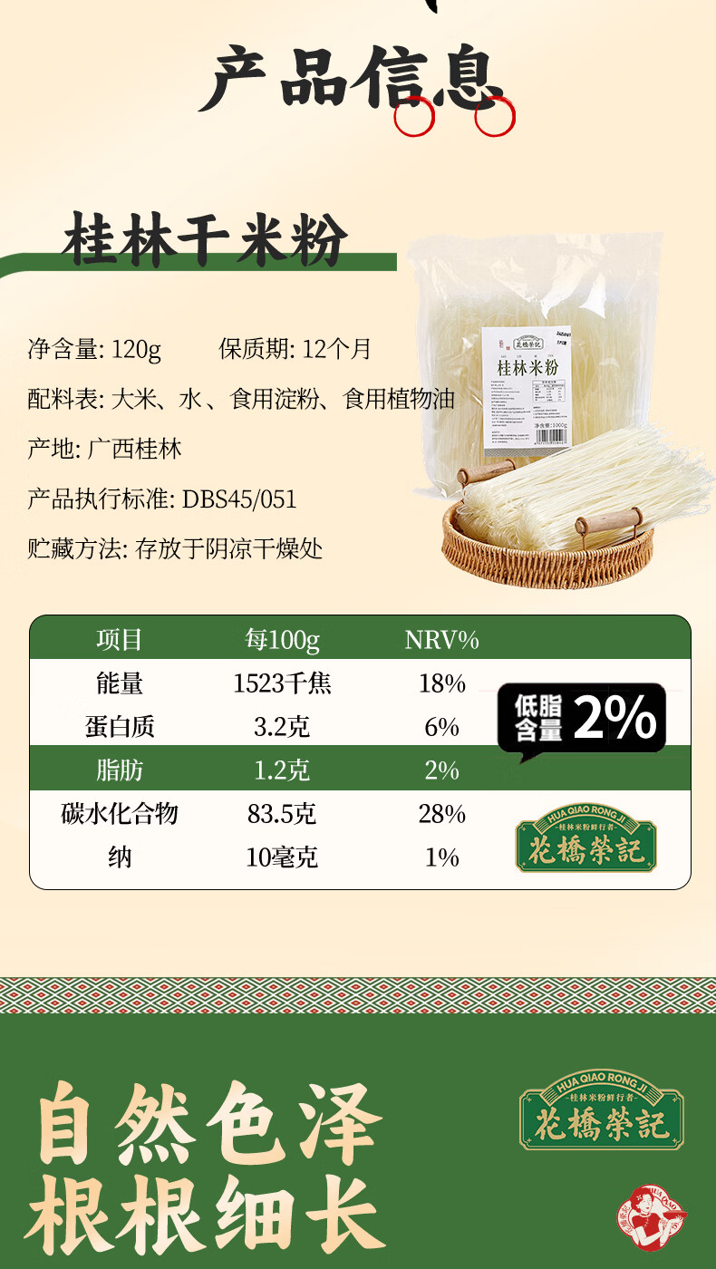 花桥荣记桂林米粉干米粉广西正宗粉丝米线江西新疆螺蛳粉专用粉条 桂林干米粉120g*6包