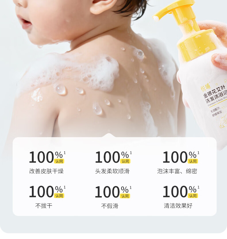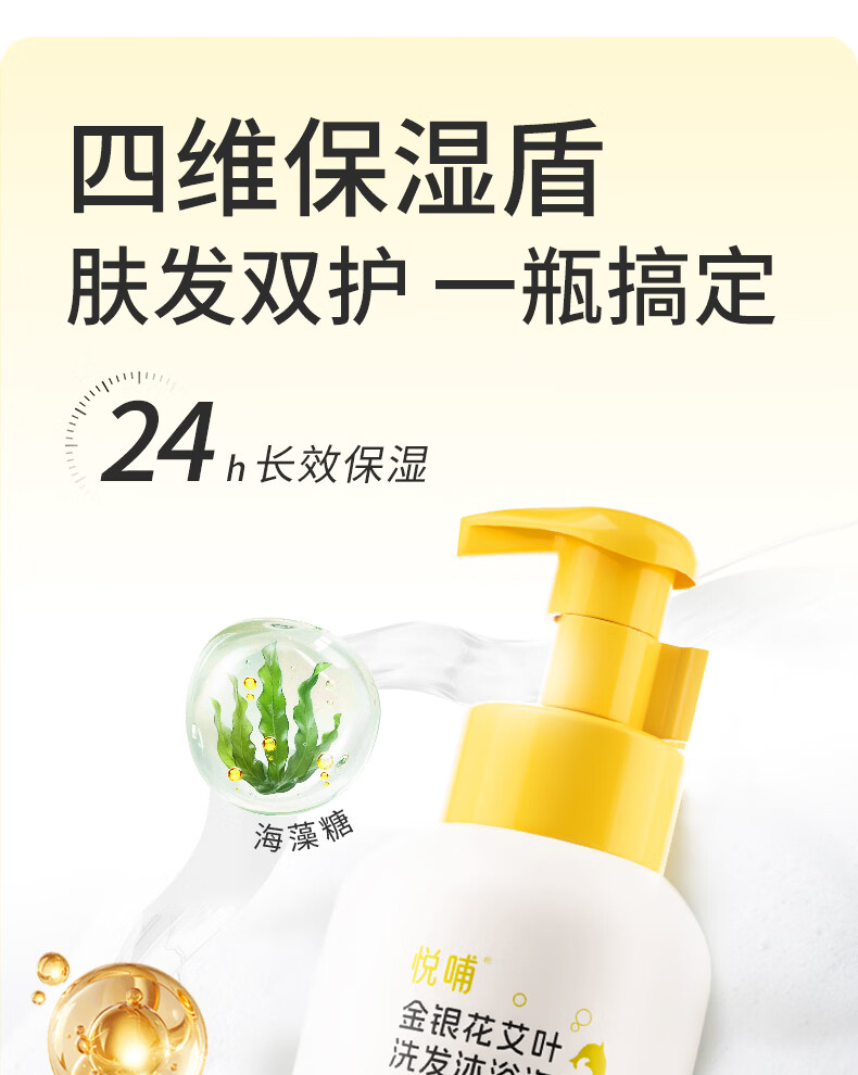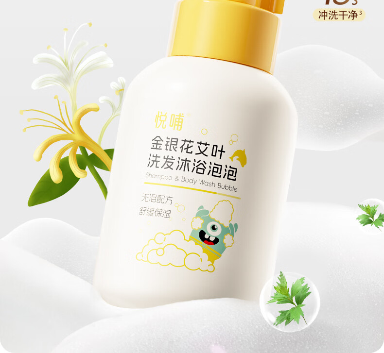 悦哺婴儿洗发水沐浴露二合一 宝宝金银花沐浴露 新生幼儿泡泡沐浴乳 【低泡易洗】洗沐二合一300ml