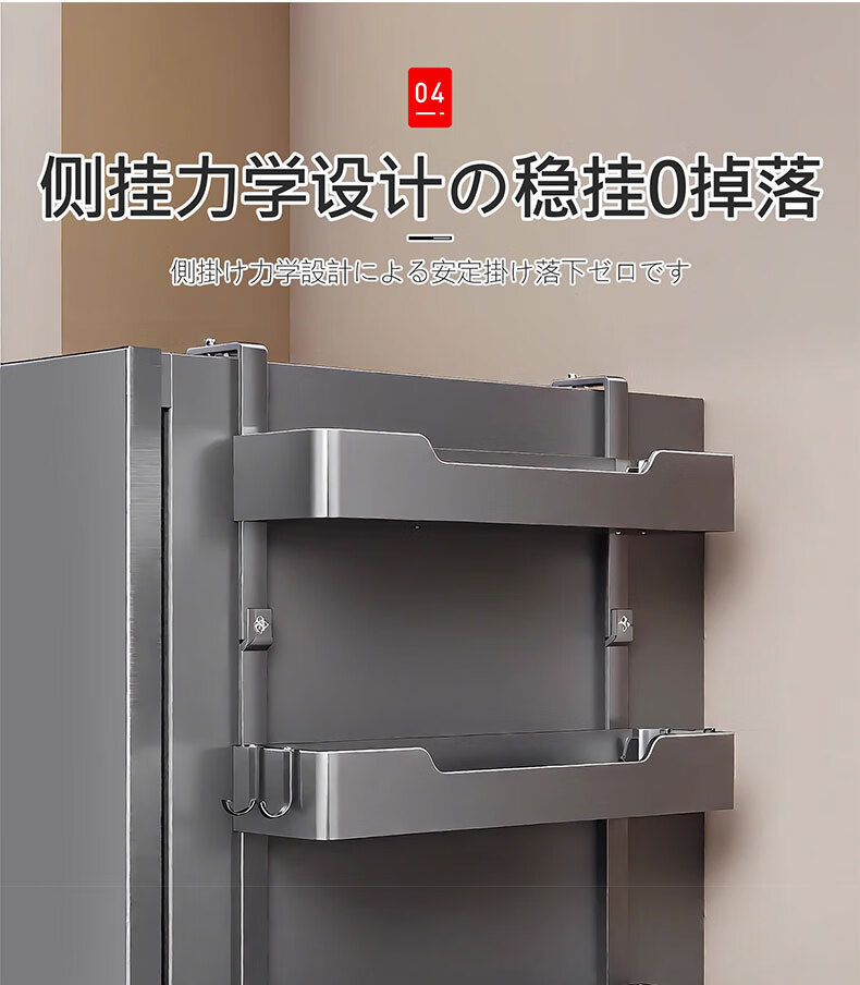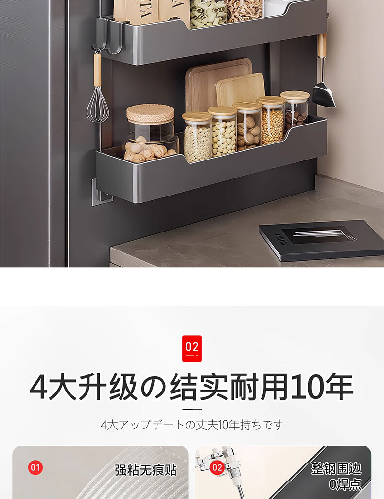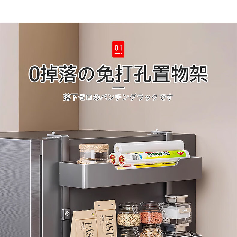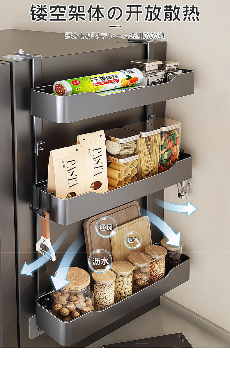 吱凡日本冰箱侧收纳置物架厨房多层调味料保鲜膜收纳架多功能储物神器 【枪灰色】 3层碳钢框【进口高粘纳米胶 掉落包赔】