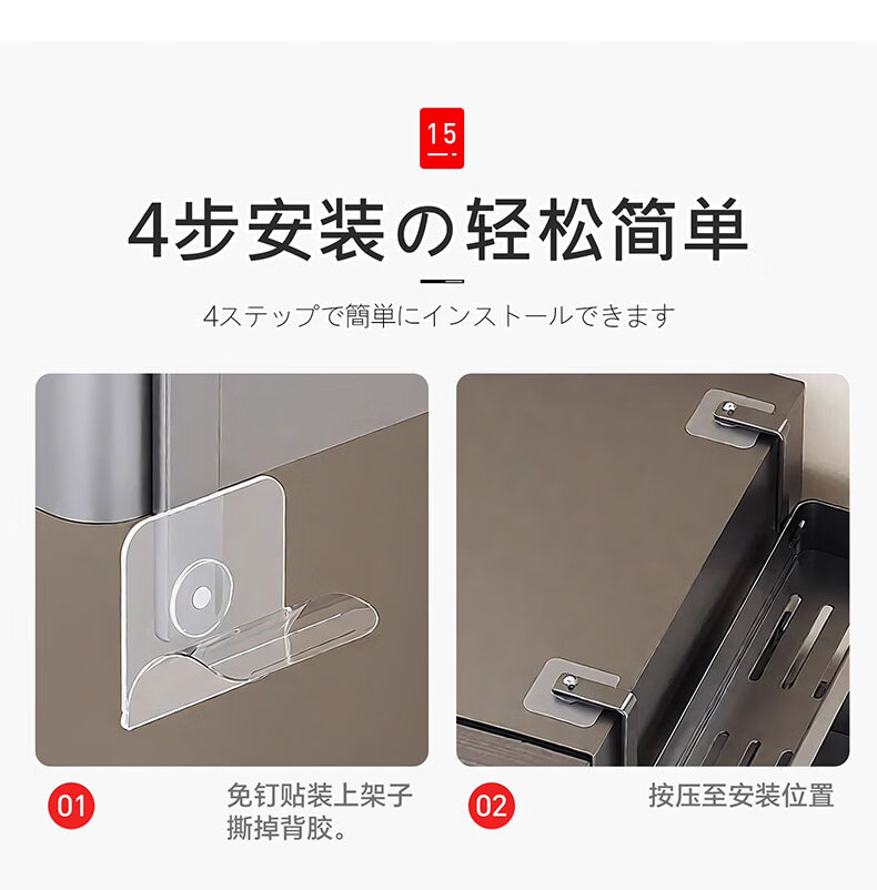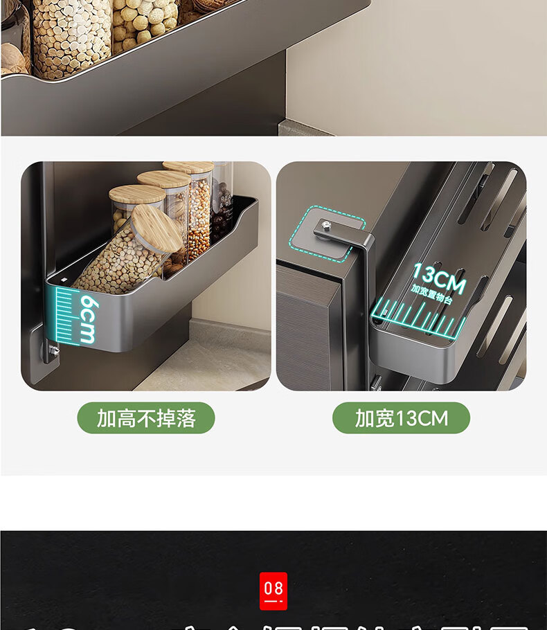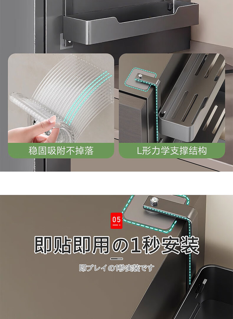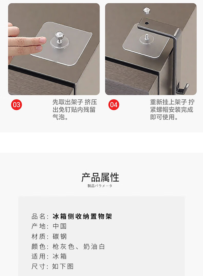 吱凡日本冰箱侧收纳置物架厨房多层调味料保鲜膜收纳架多功能储物神器 【枪灰色】 3层碳钢框【进口高粘纳米胶 掉落包赔】