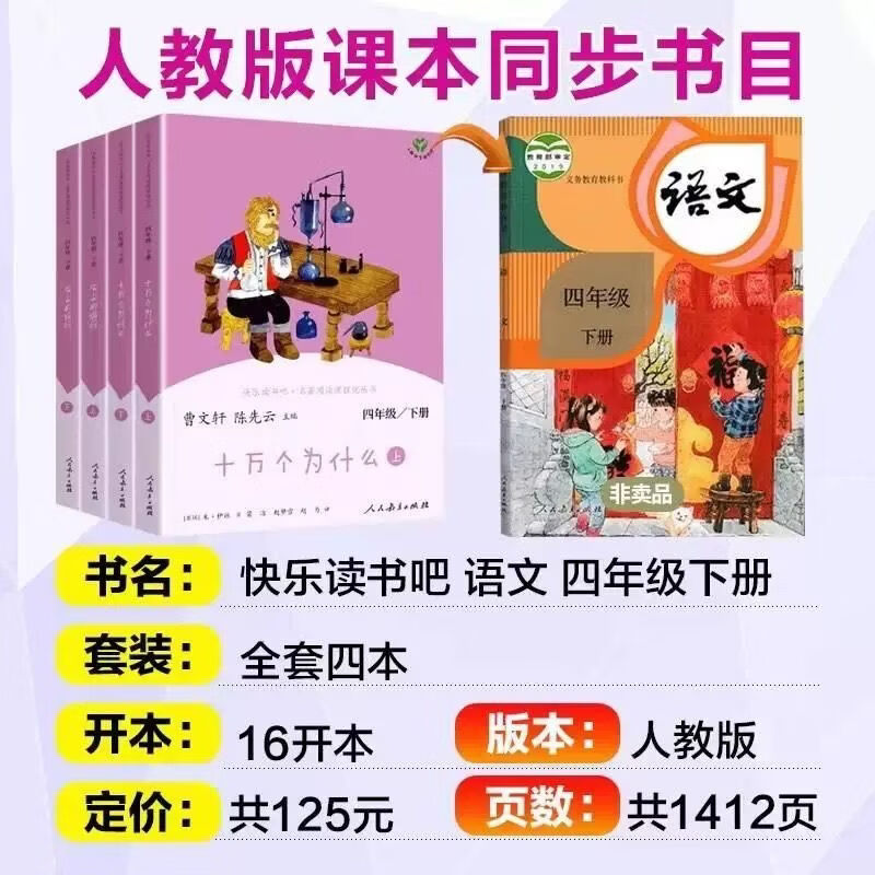 快乐读书吧人教版四年级下册必读课外书 十万个为什么 灰尘的旅行 四年级下册(4册)赠考册 快乐读书吧