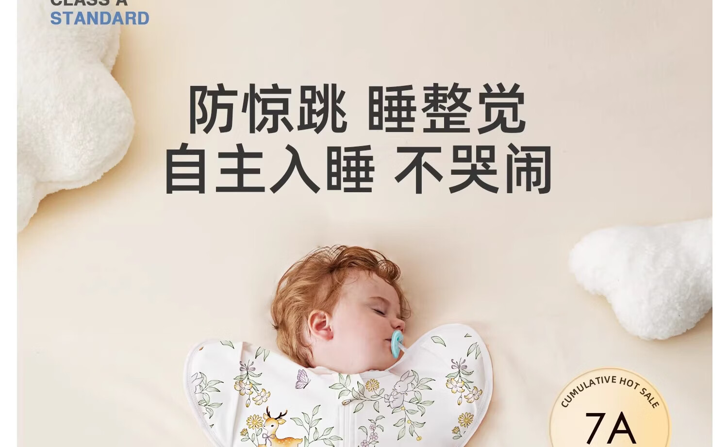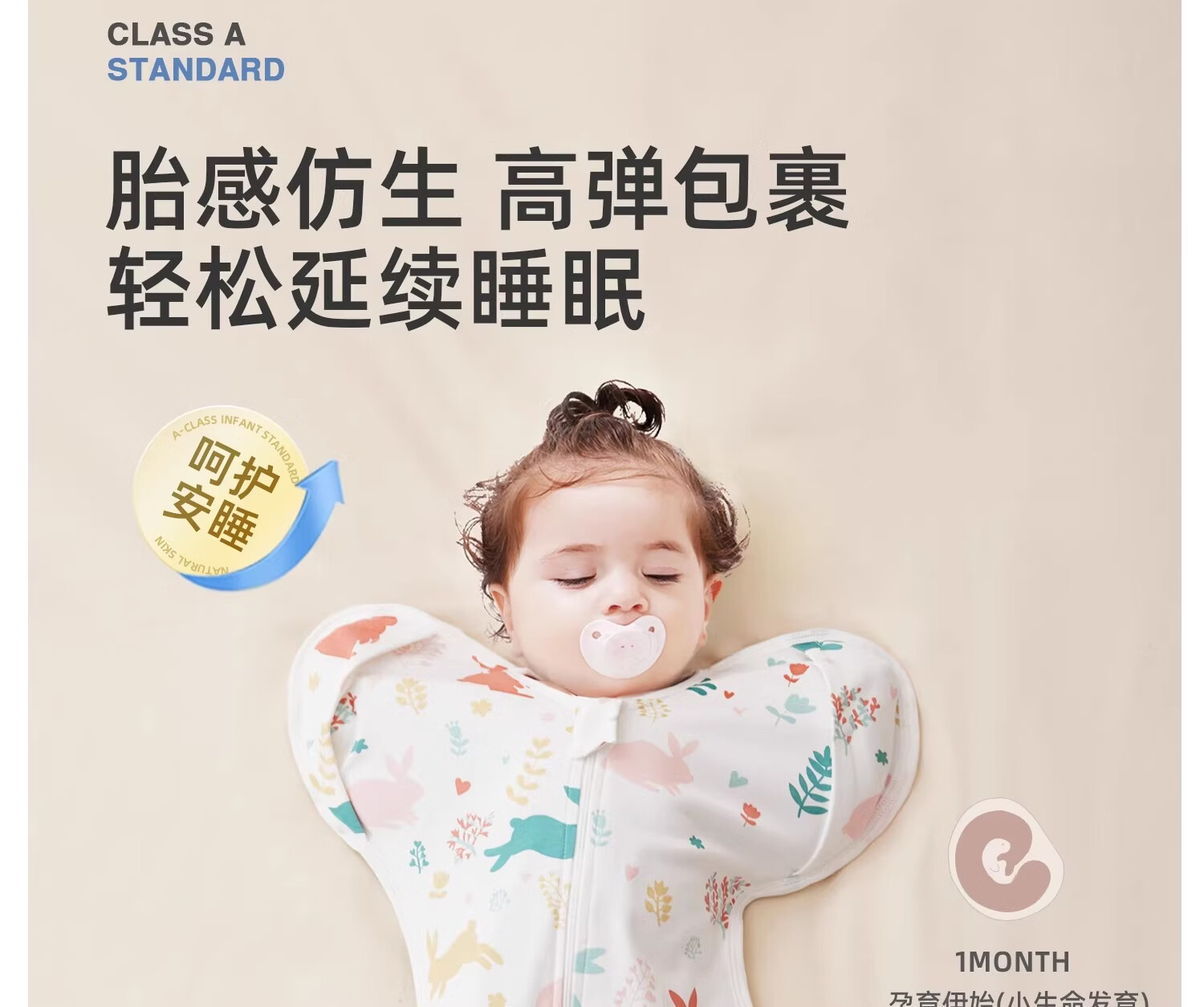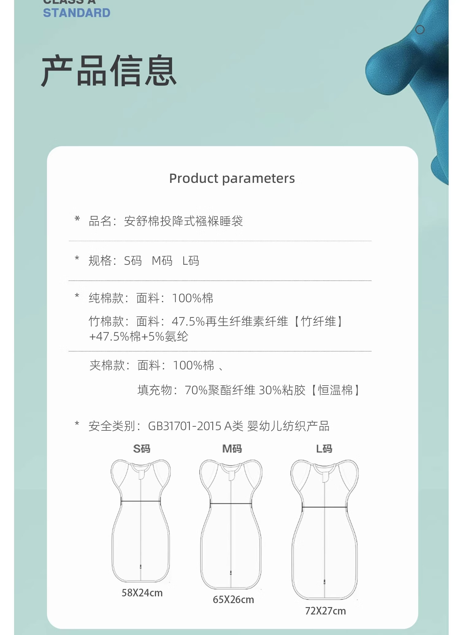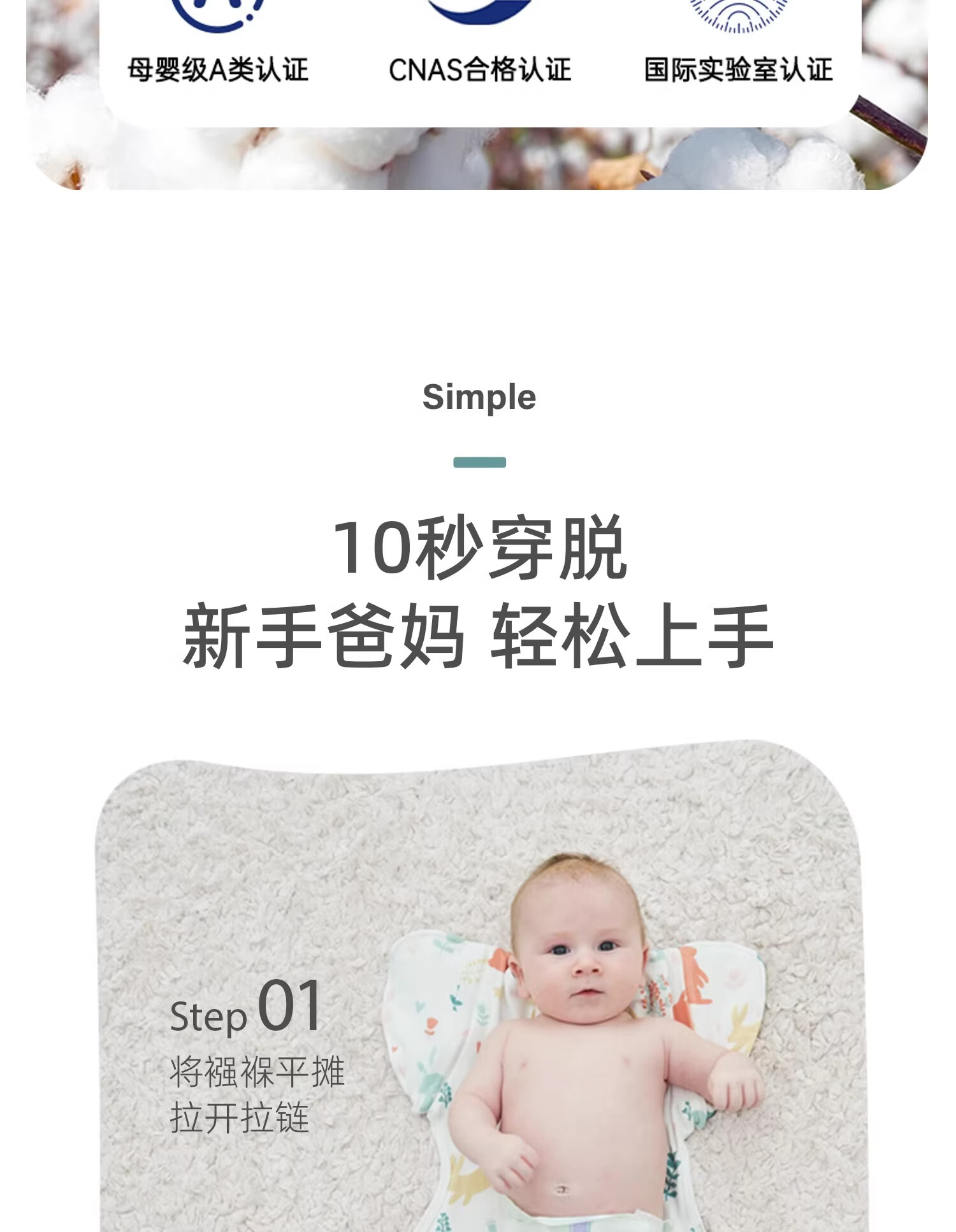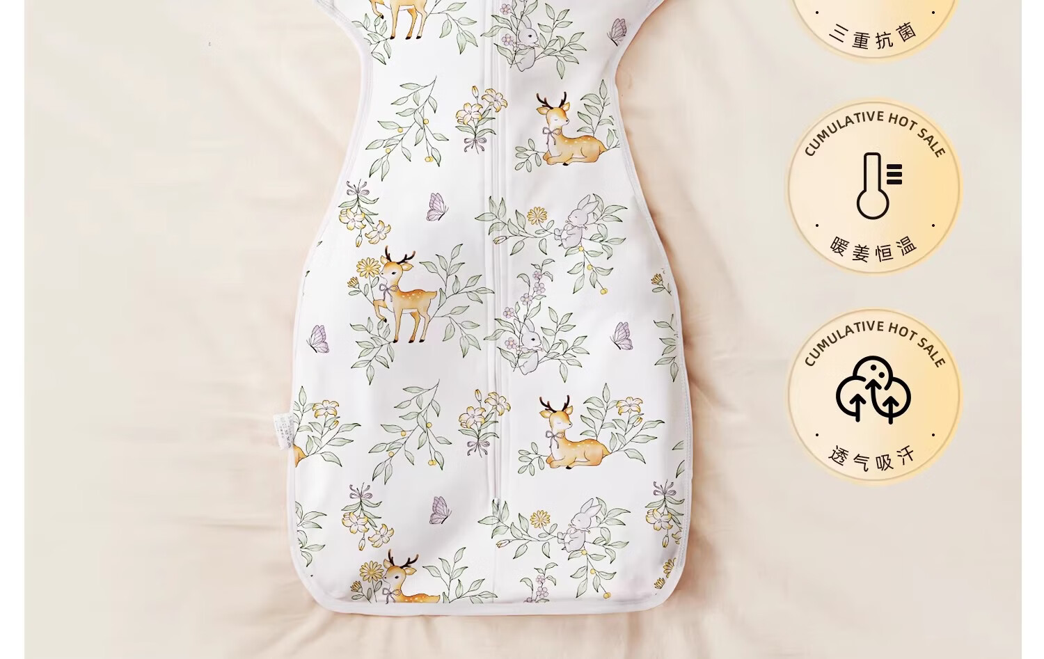 安舒棉防惊跳睡袋新生儿婴儿四季通用襁褓式睡袋儿童投降式防踢被 云栖鹿(四季双层)室温15-25°C L【适合体重13-20斤】