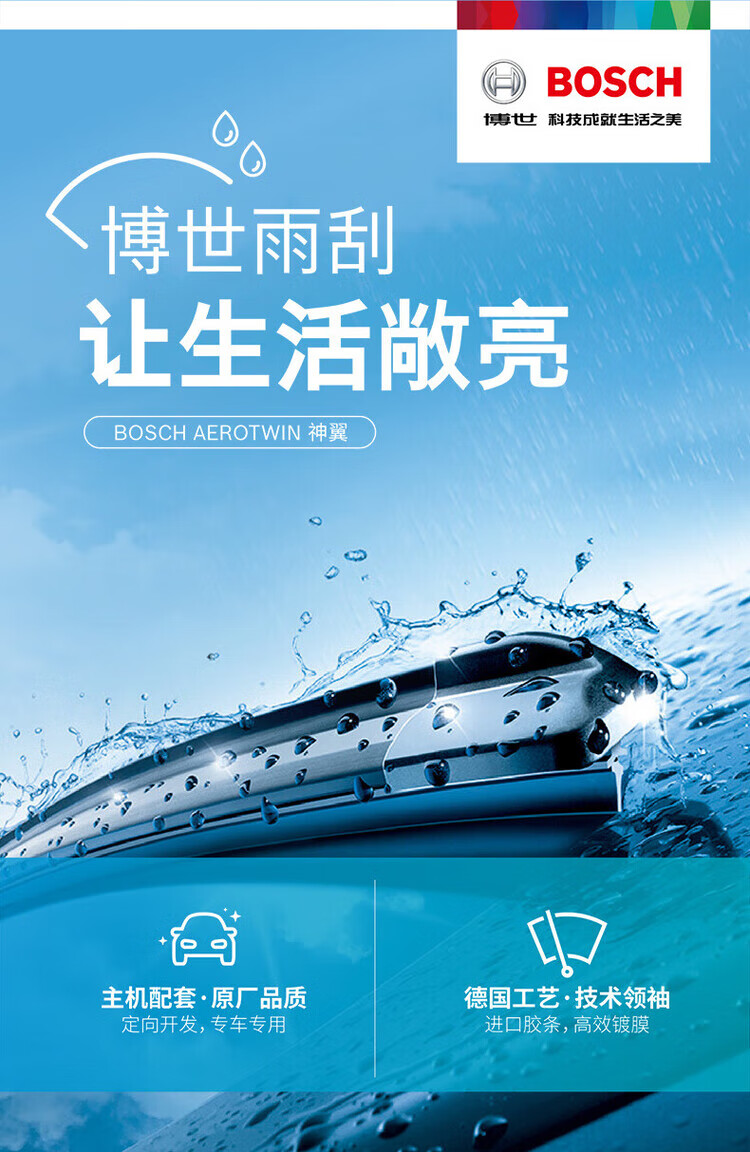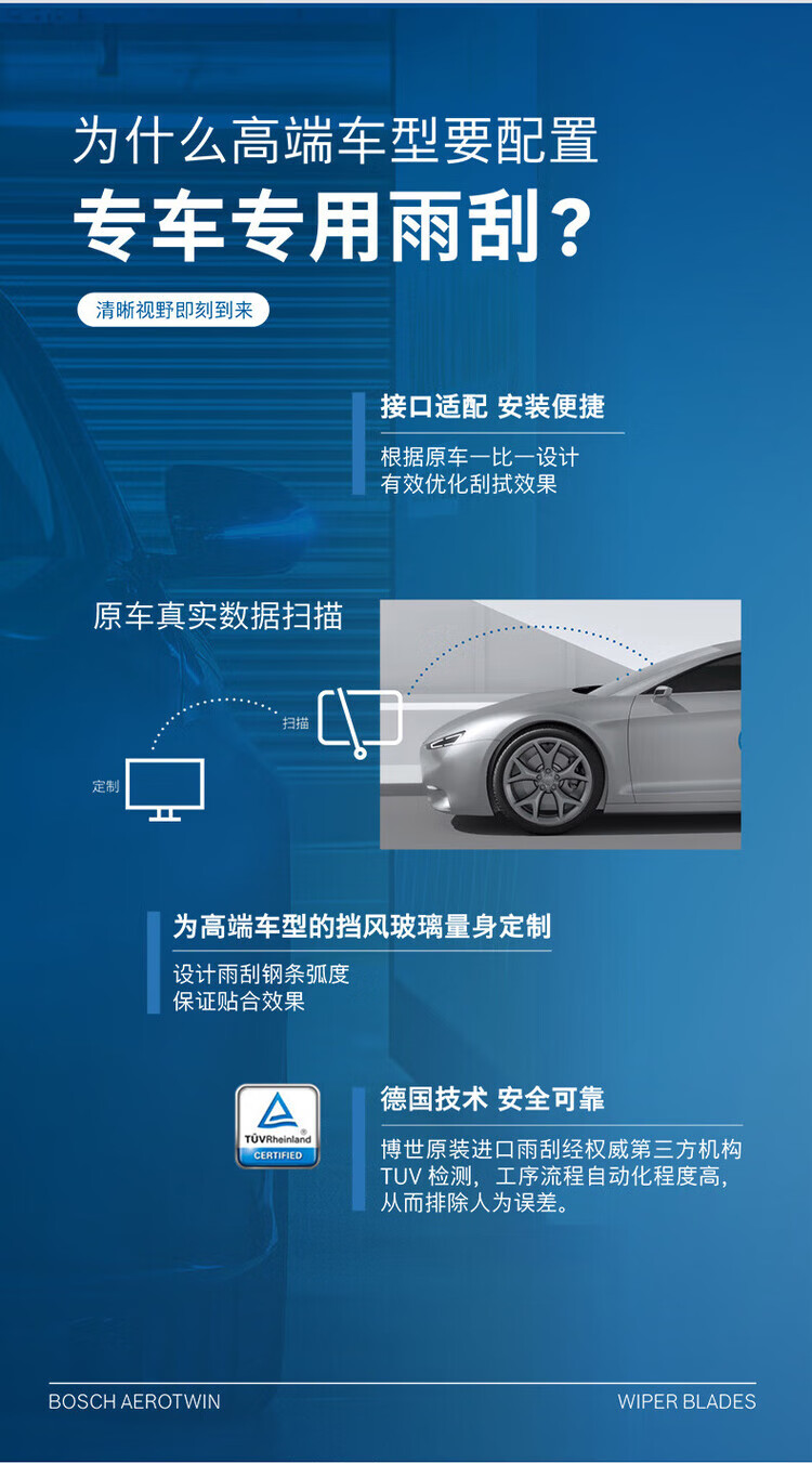 博世(BOSCH)原装神翼无骨雨刷/雨刷片/雨刷器/雨刮/雨刮器胶条 特斯拉适配 多功能一对装 Model Y (2021款至今) 26/20寸