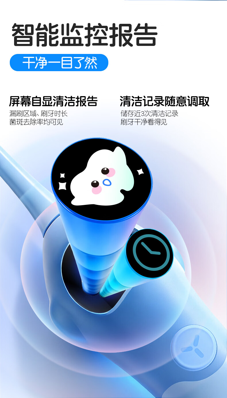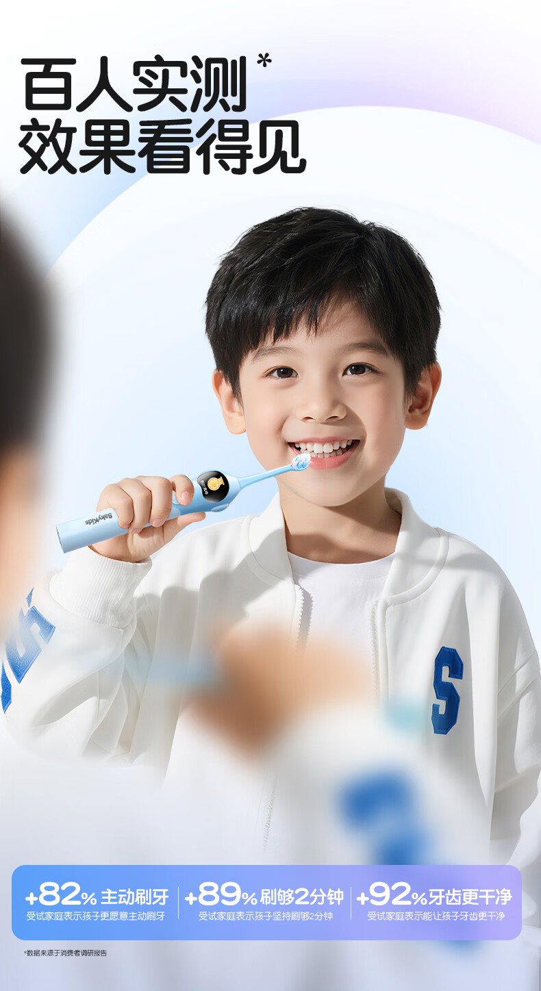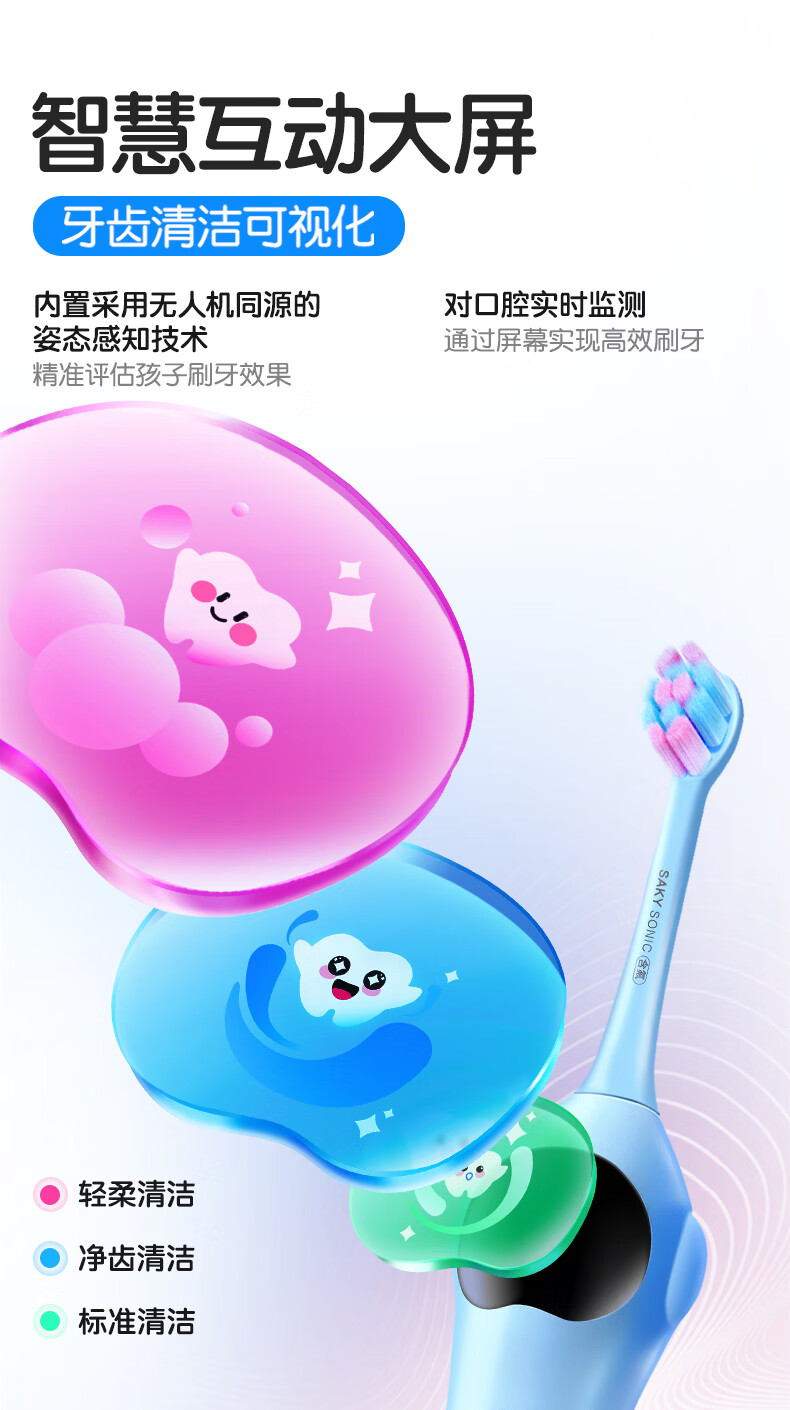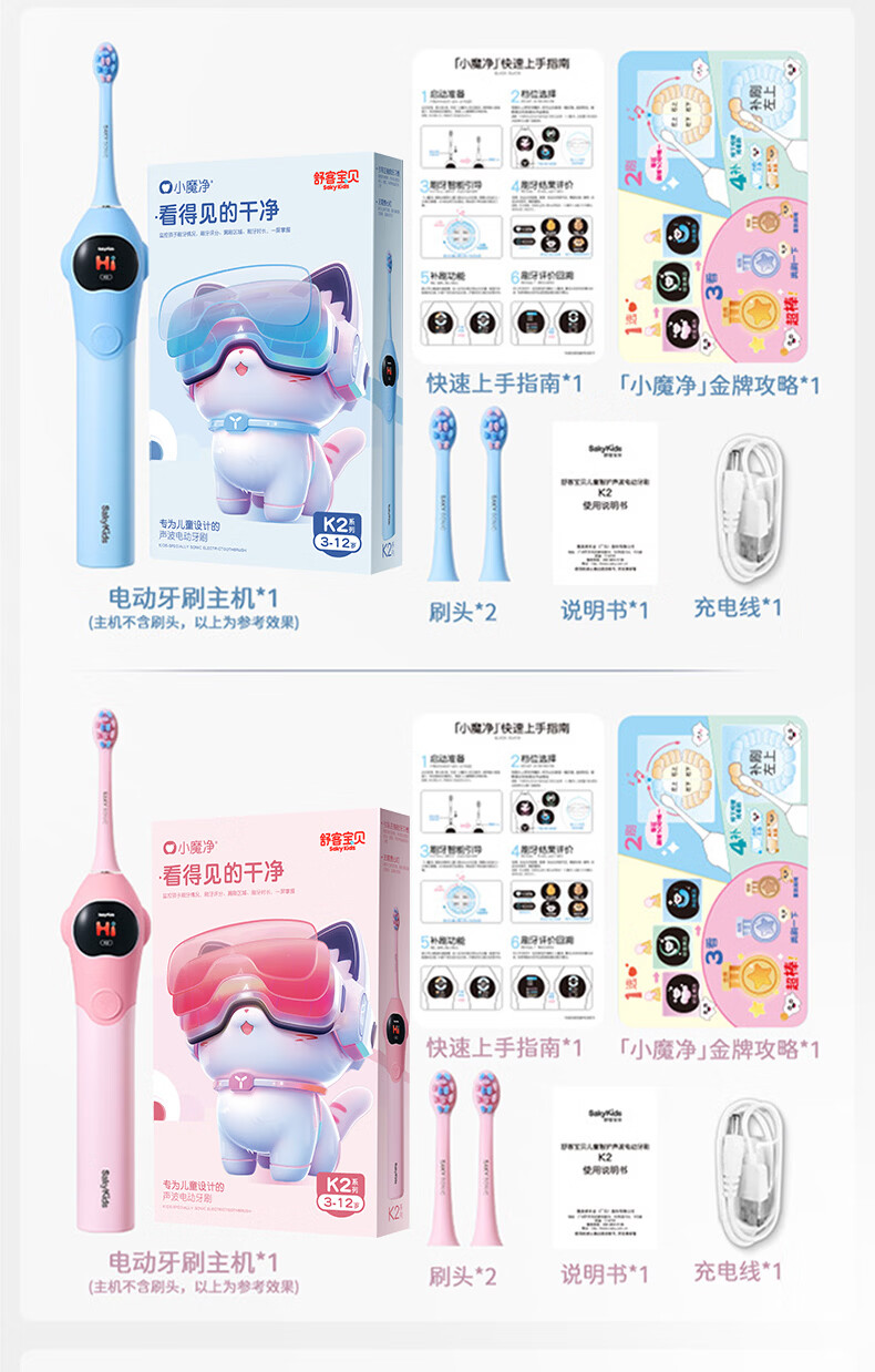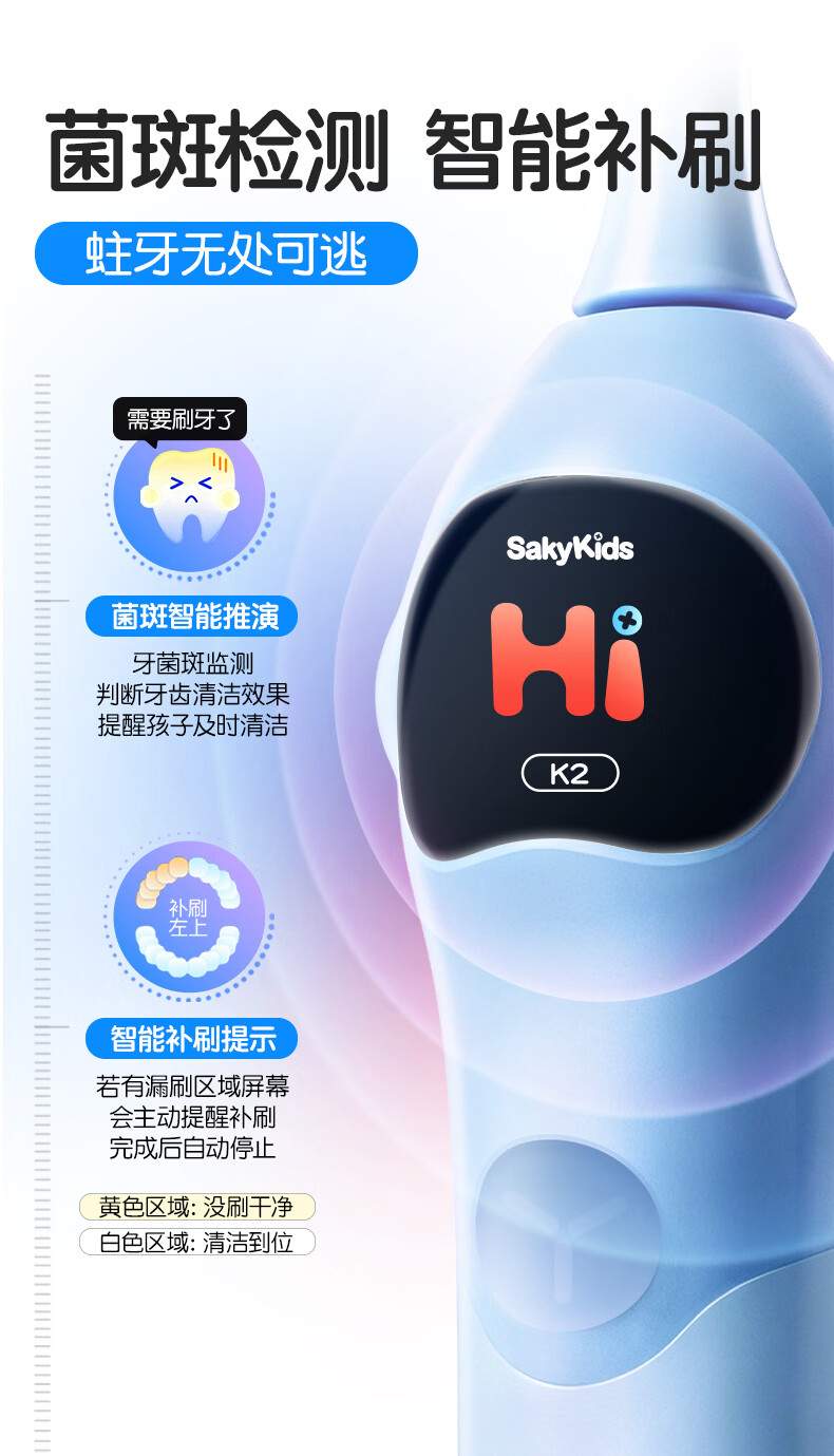 舒客宝贝儿童电动牙刷3-6-12岁软毛声波震动含氟刷丝智能防蛀K2儿童礼物 【智慧大屏】K2蓝色1支