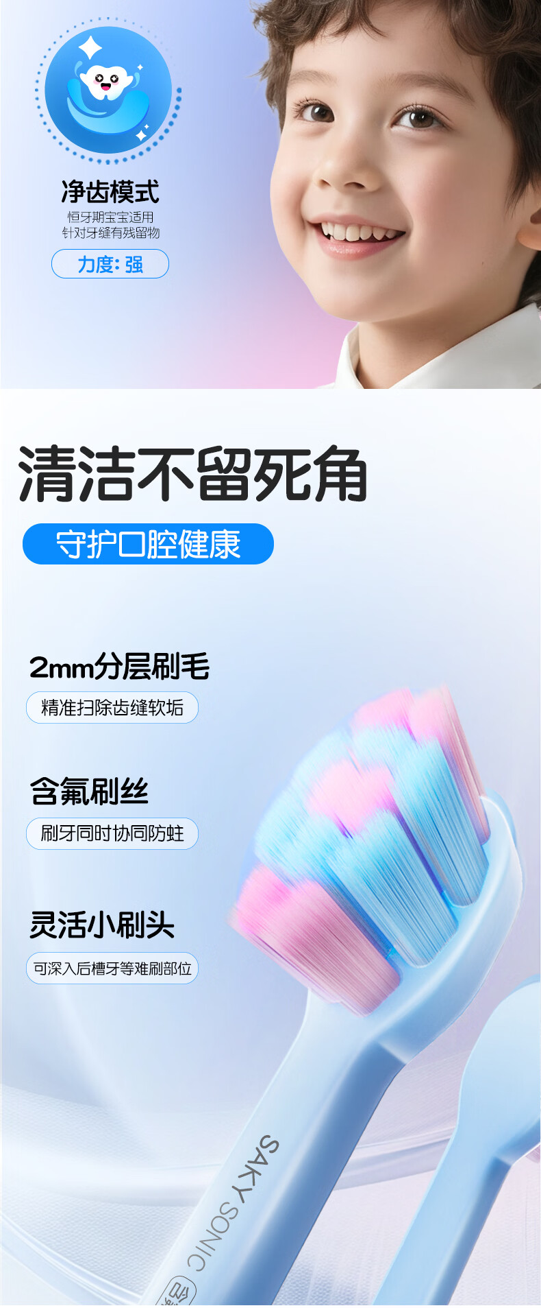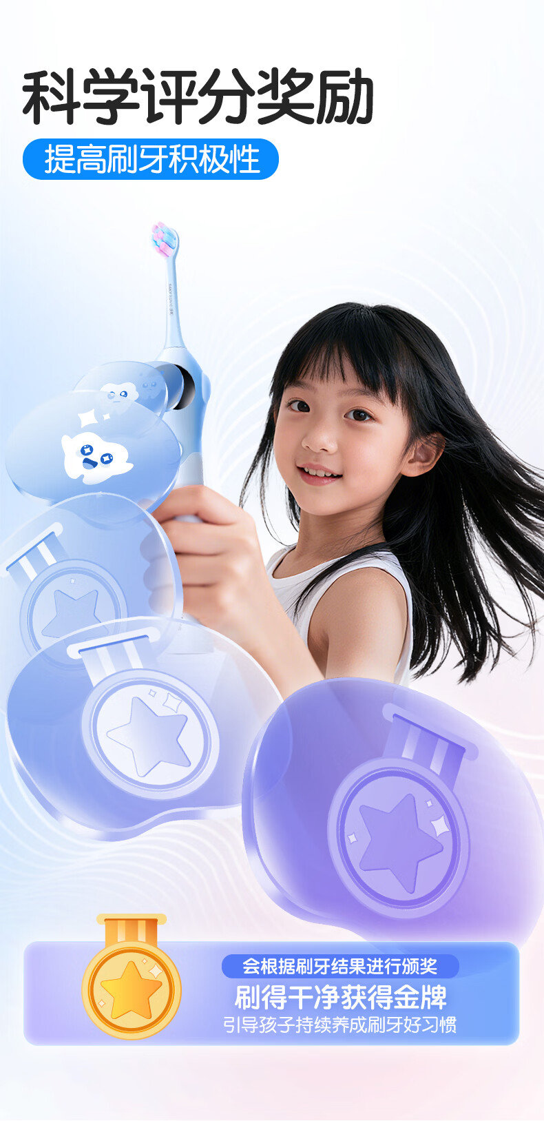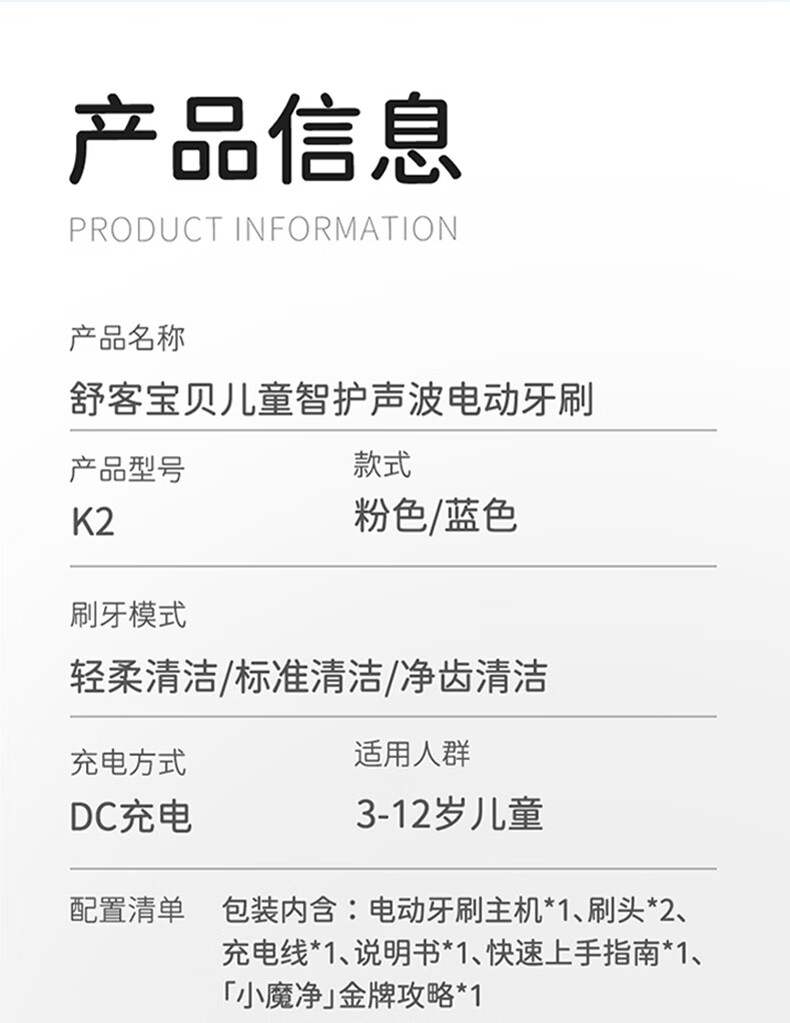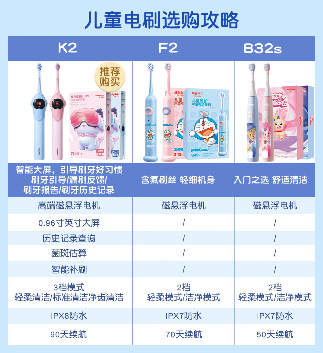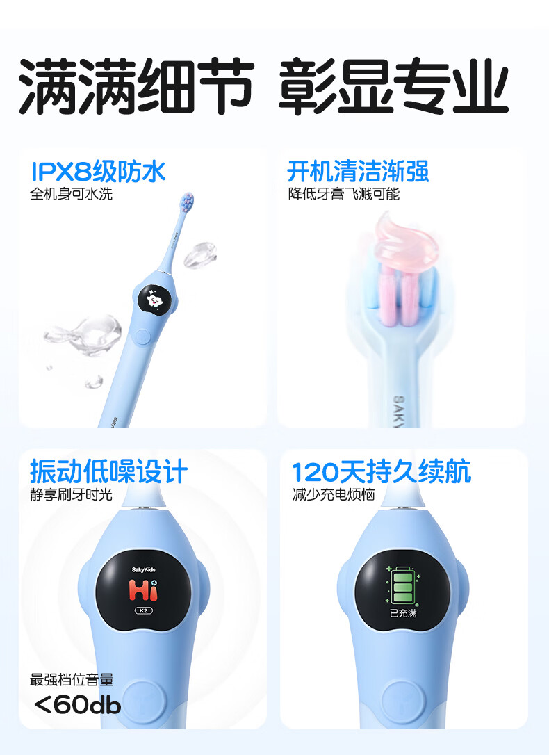 舒客宝贝儿童电动牙刷3-6-12岁软毛声波震动含氟刷丝智能防蛀K2儿童礼物 【智慧大屏】K2蓝色1支