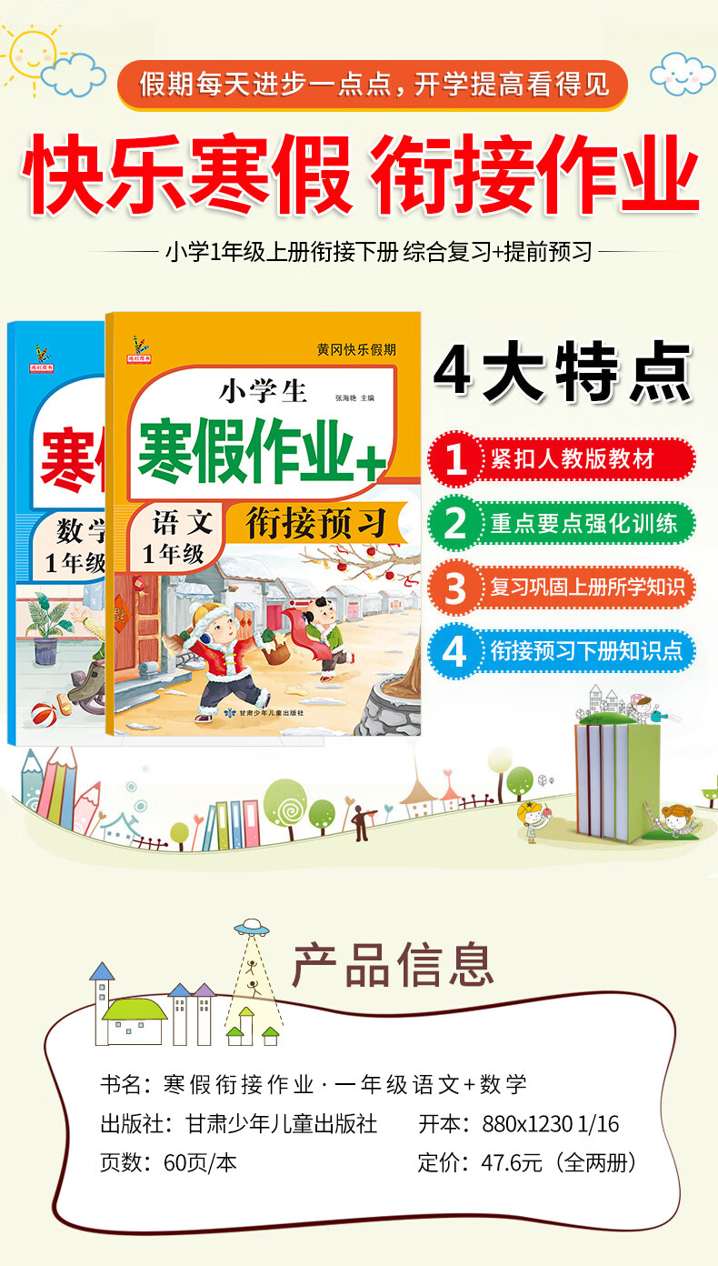2026版一年级上册寒假作业人教版全套语文数学小学一年级寒假衔接作业专项训练口算应用题阅读理解练字帖预复习试卷练习册教材作业本教辅 2本寒假作业:语文+数学 一年级寒假衔接作业【人教版】