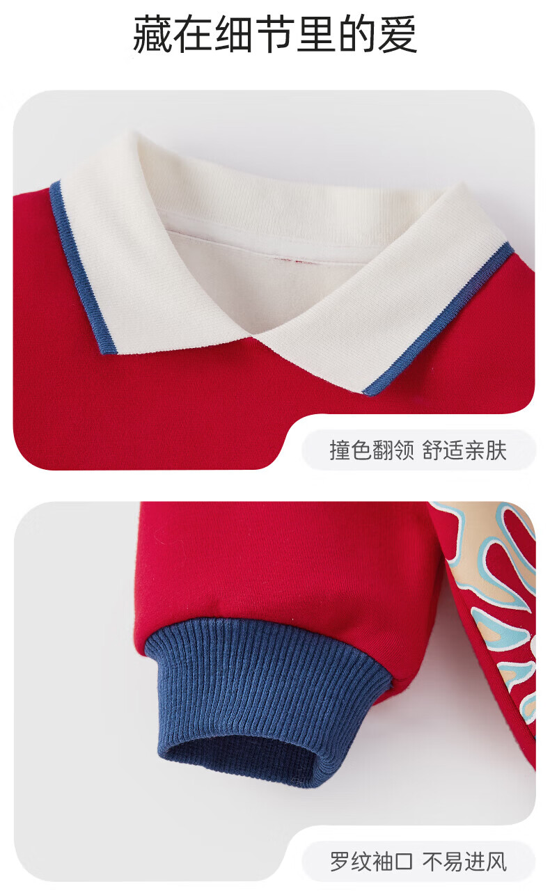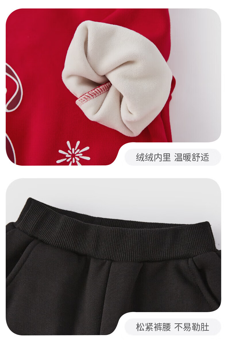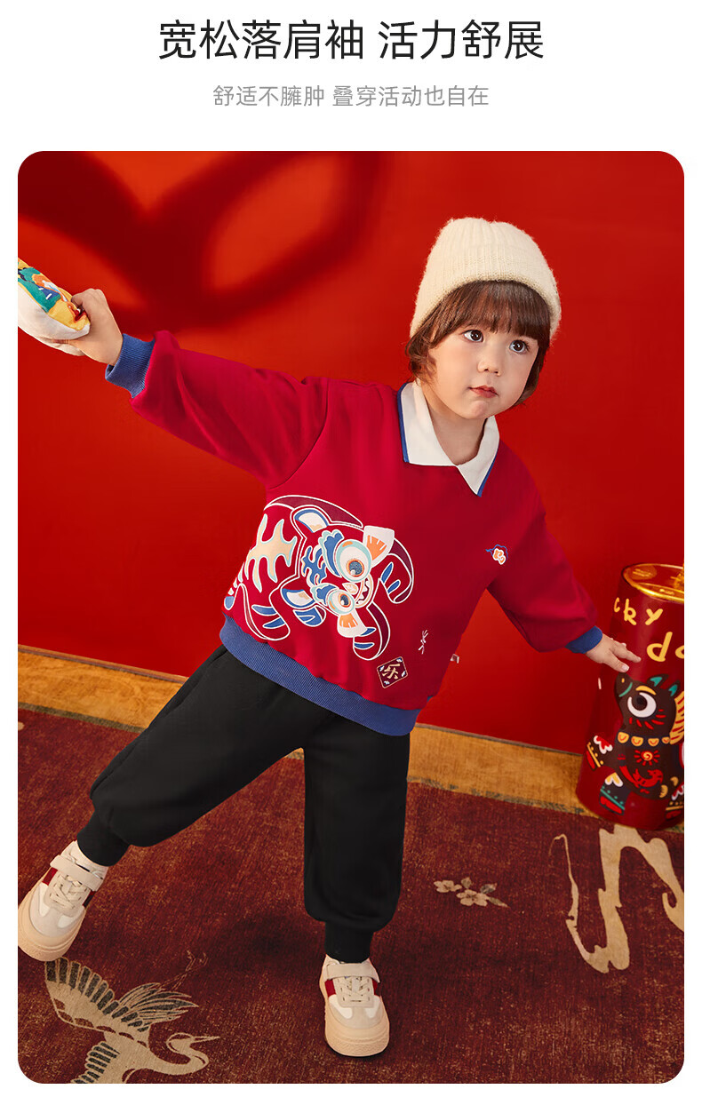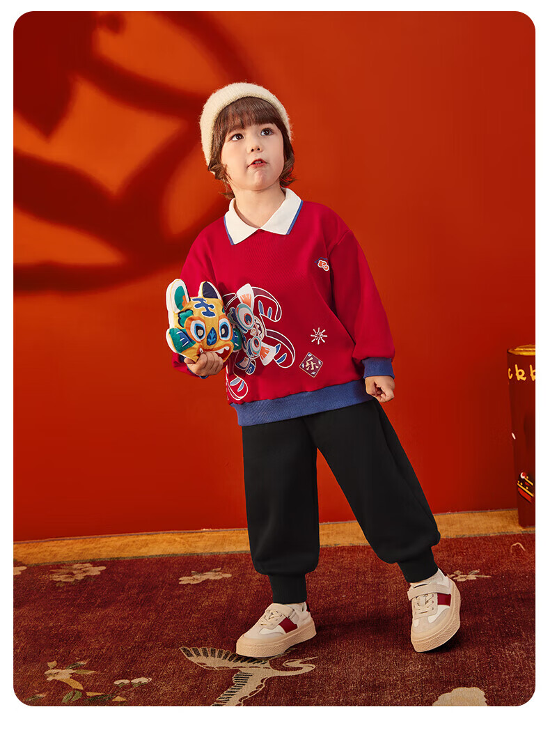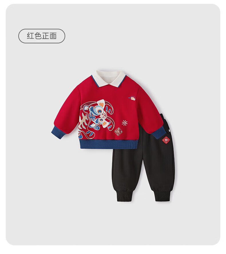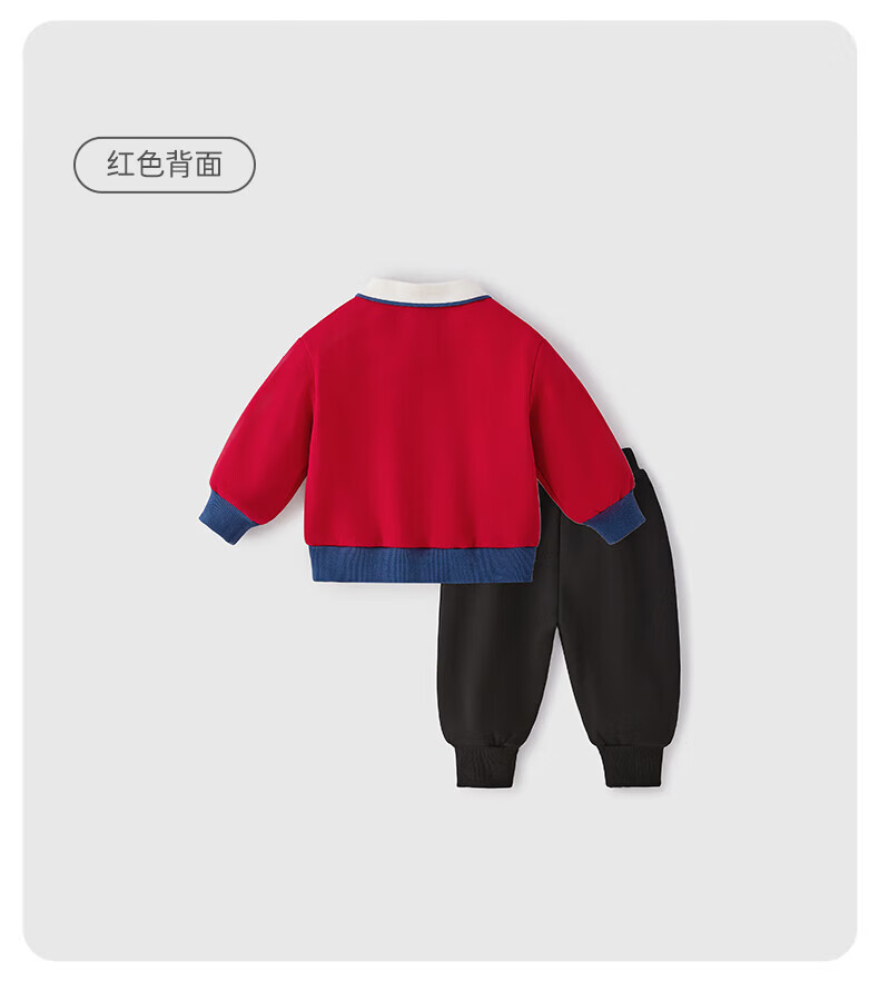 JELLYBABY【帅气绣花加绒翻领两件套】25新品冬款男童卫衣+裤子中童 红色 110