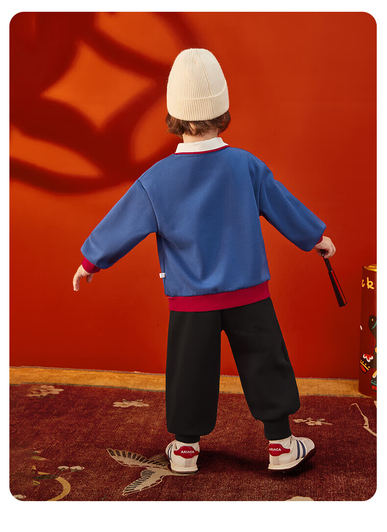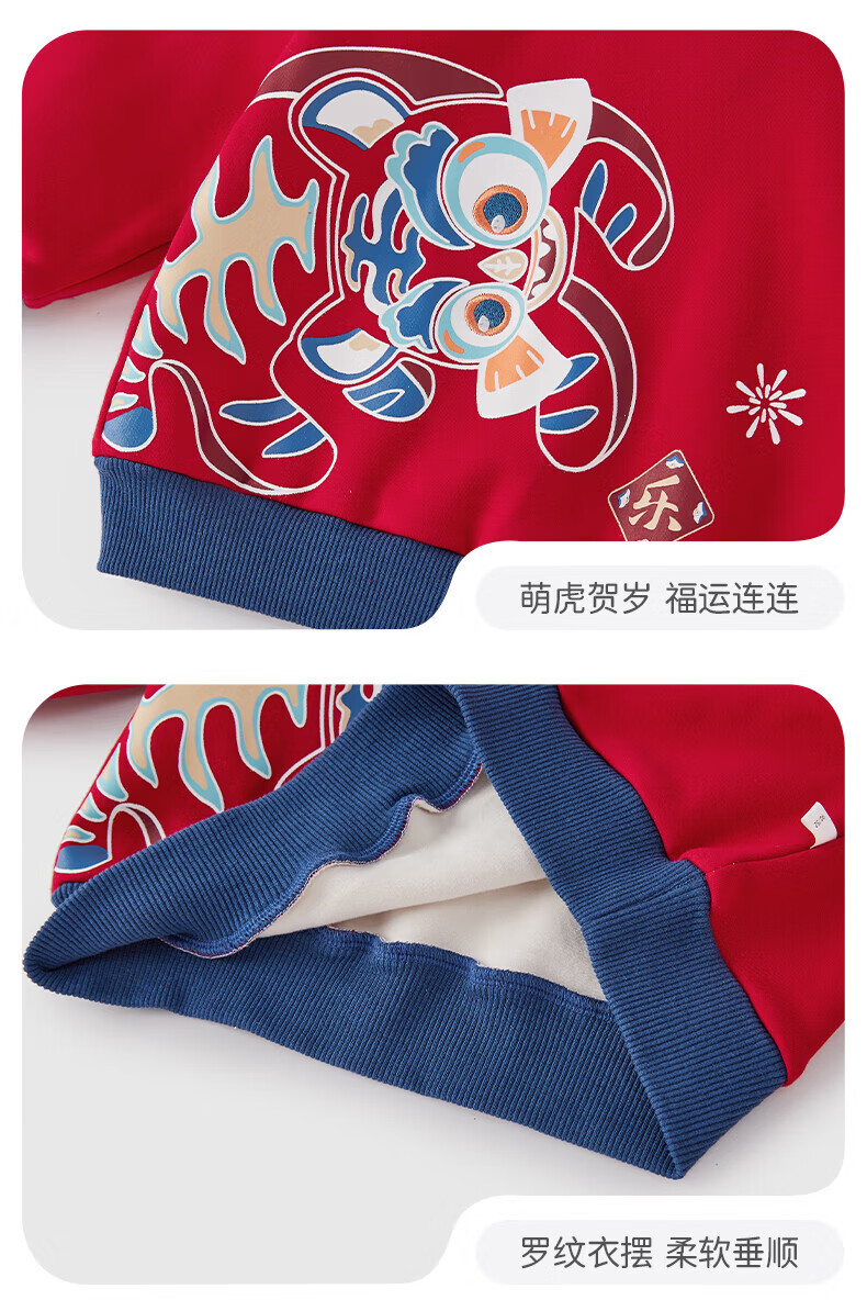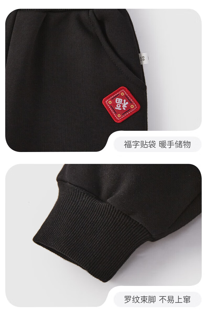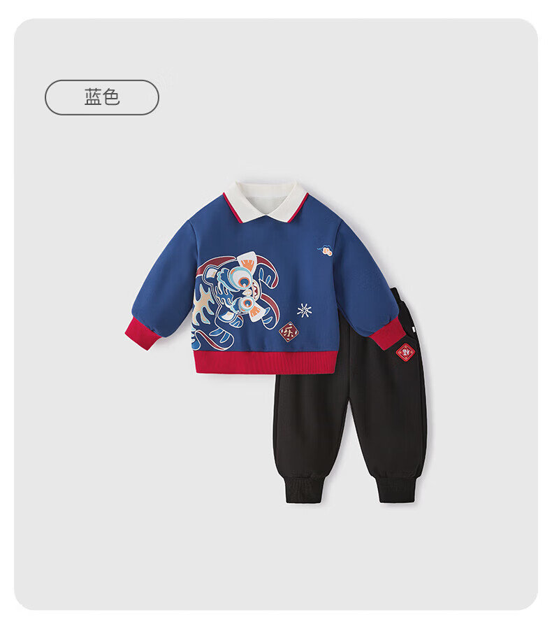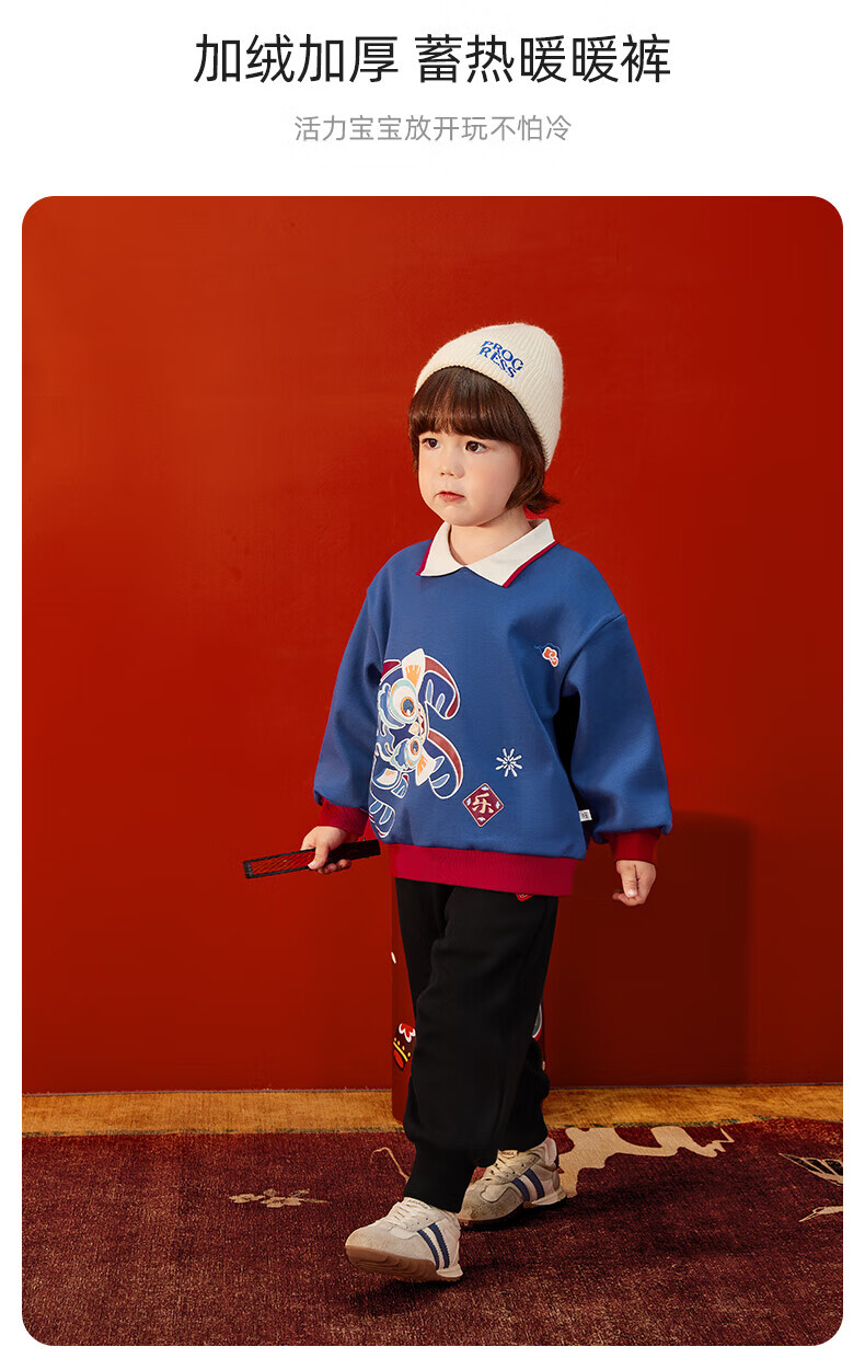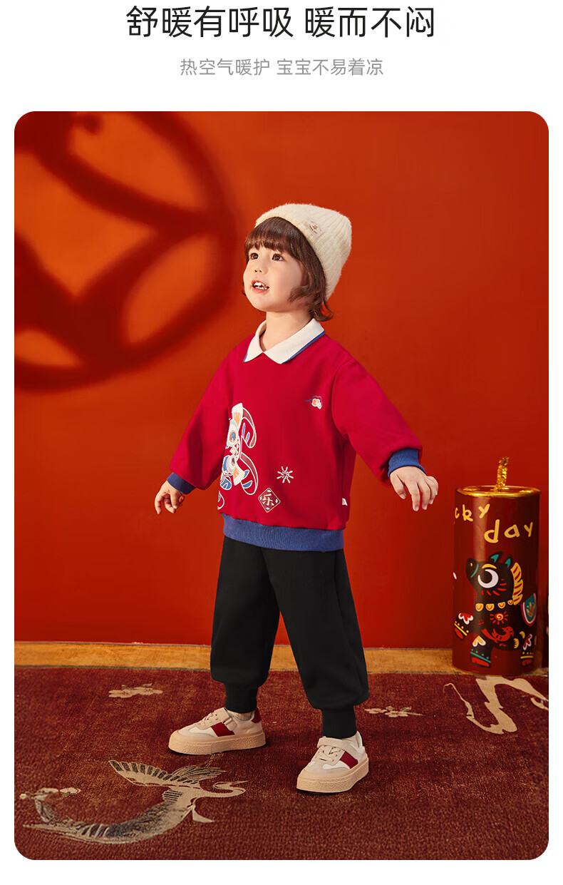 JELLYBABY【帅气绣花加绒翻领两件套】25新品冬款男童卫衣+裤子中童 红色 110