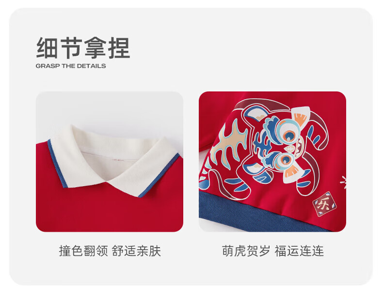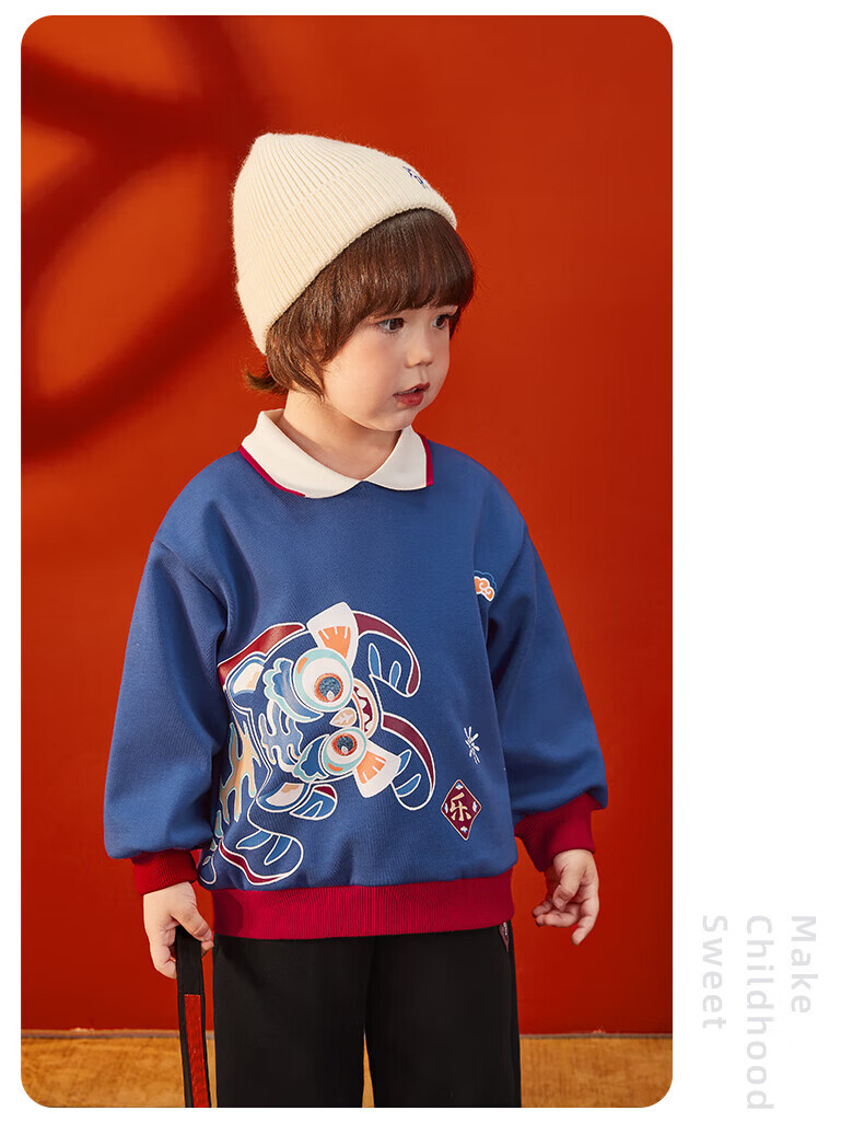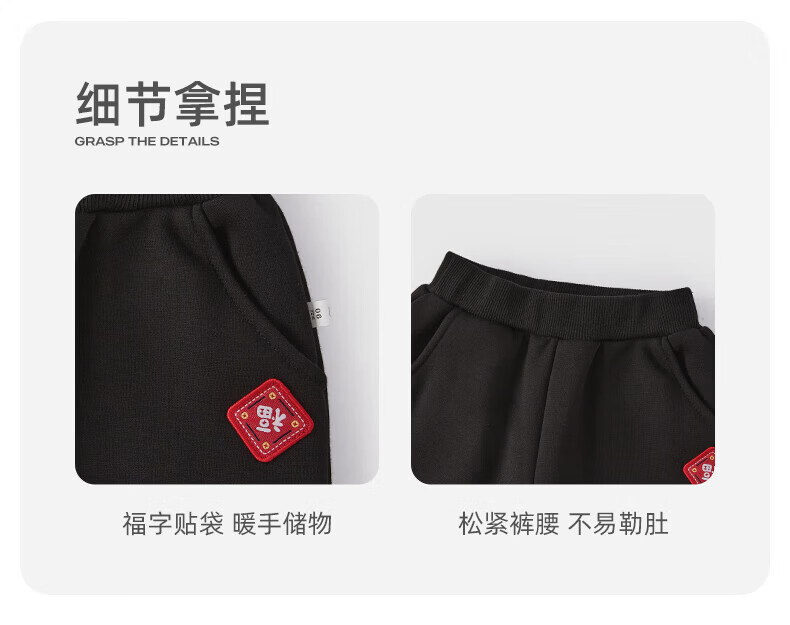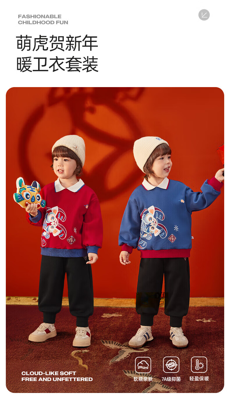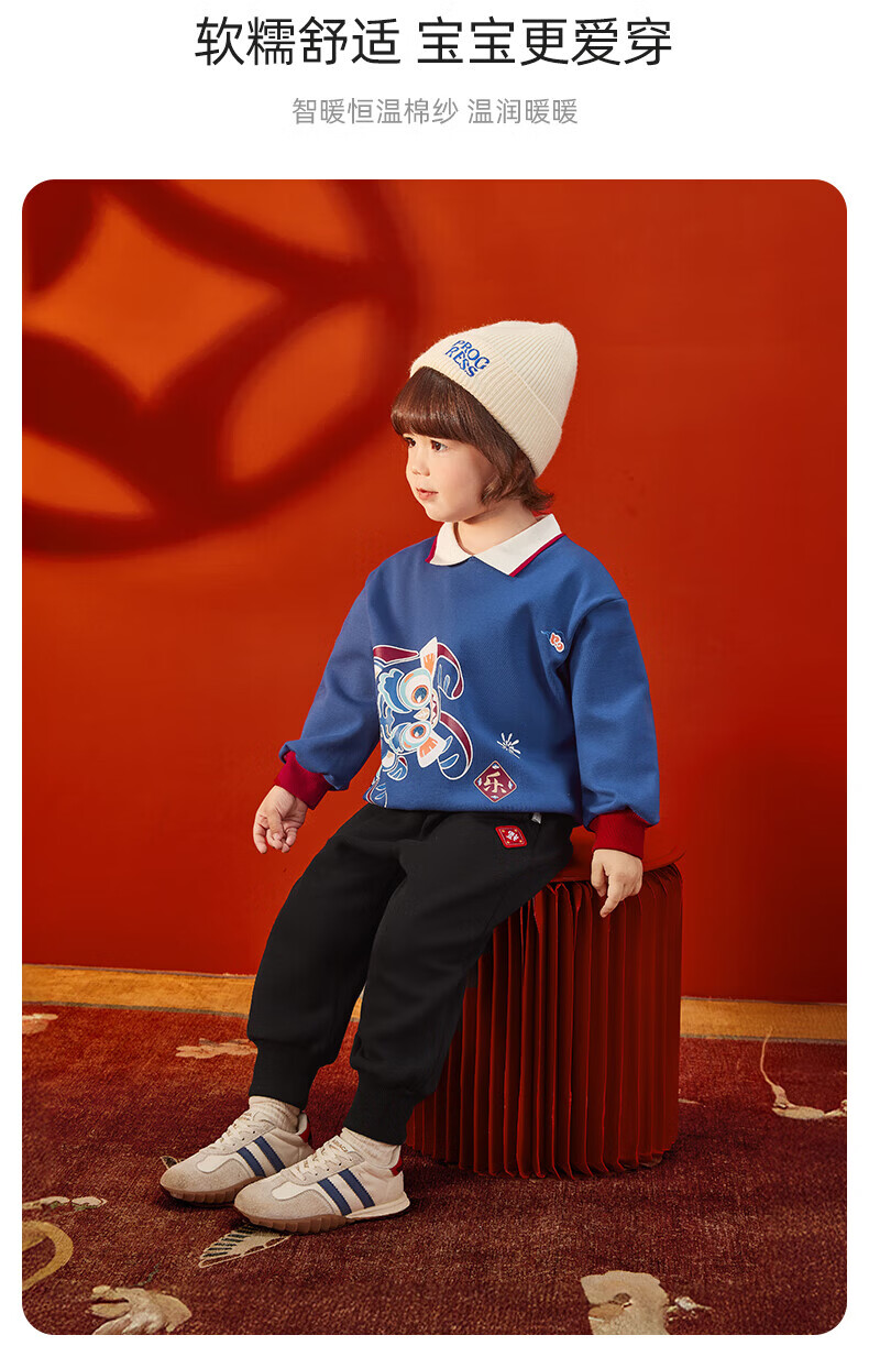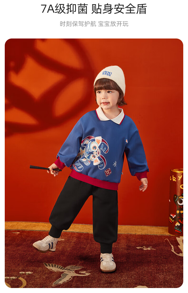 JELLYBABY【帅气绣花加绒翻领两件套】25新品冬款男童卫衣+裤子中童 红色 110