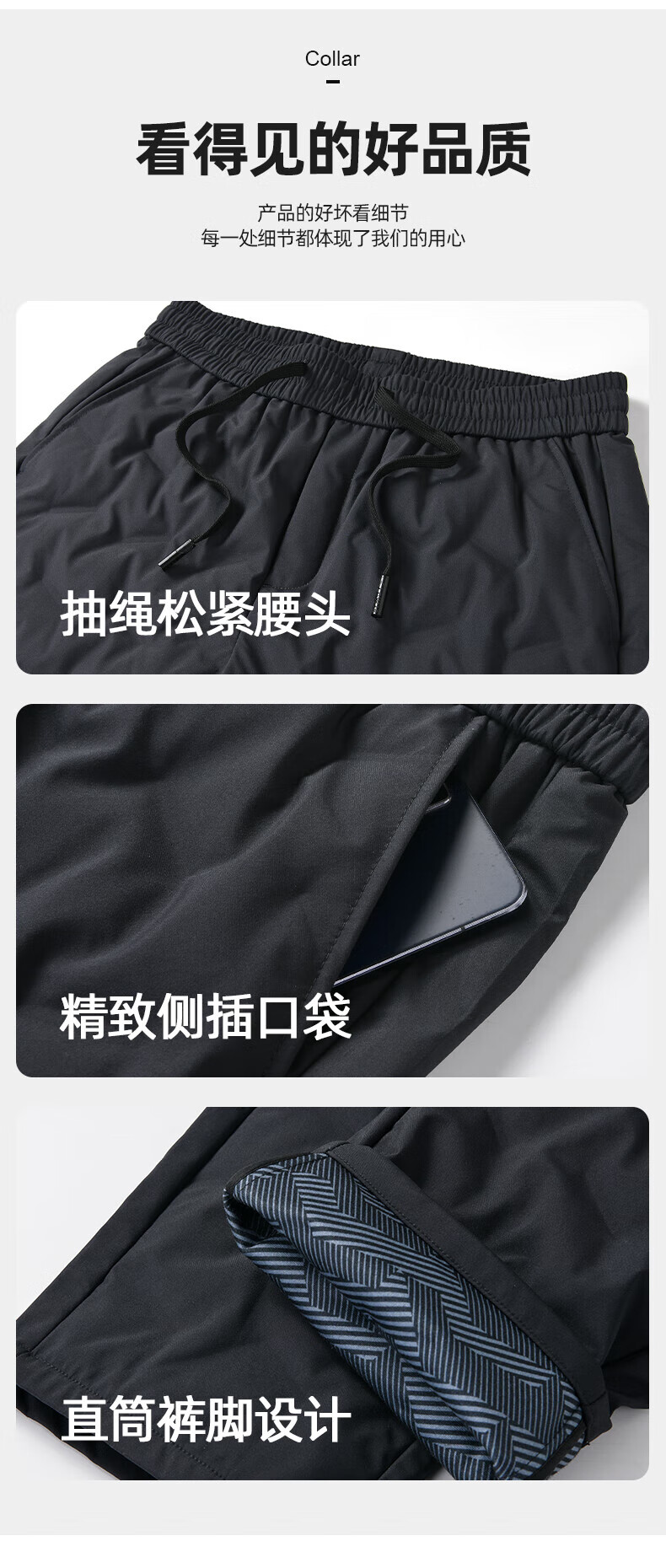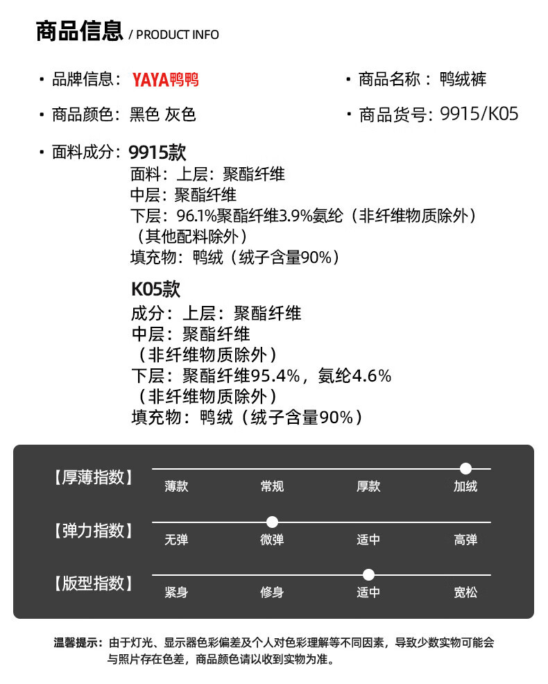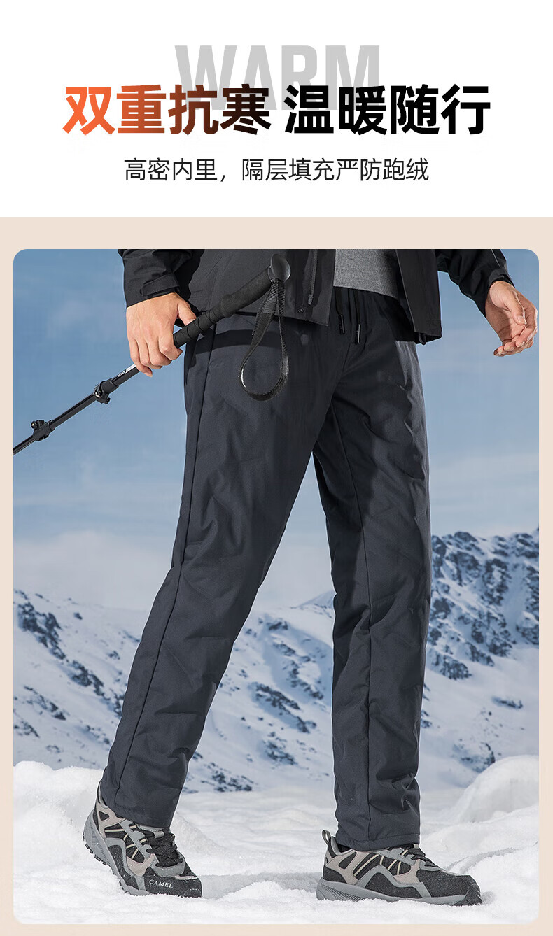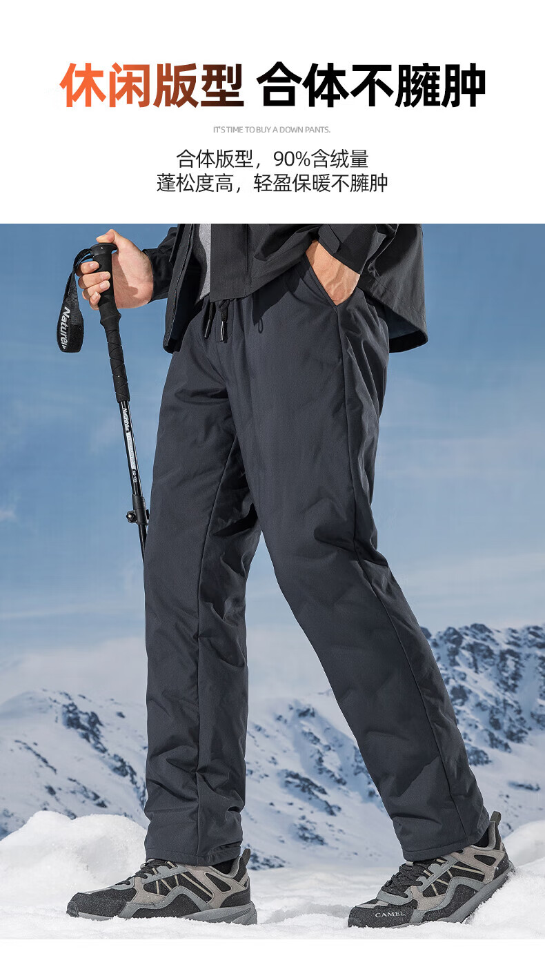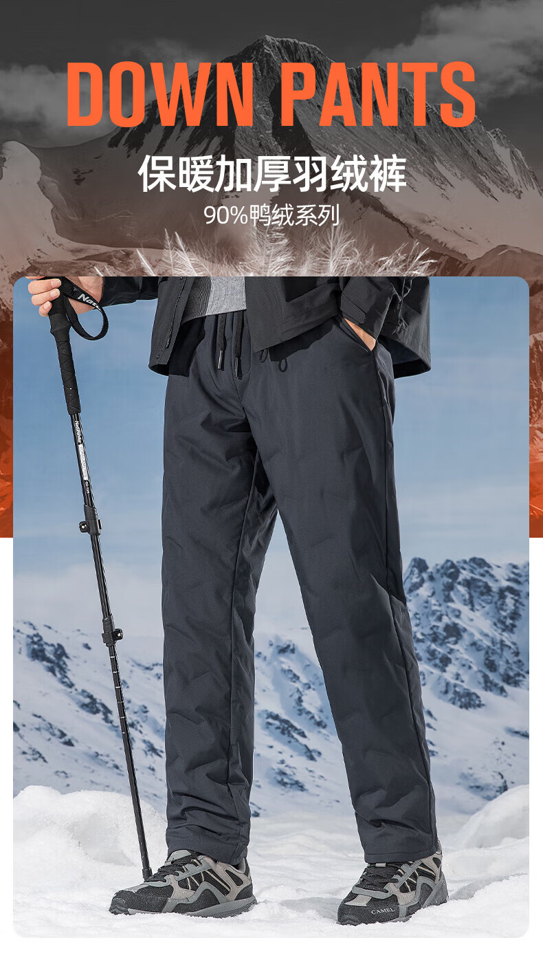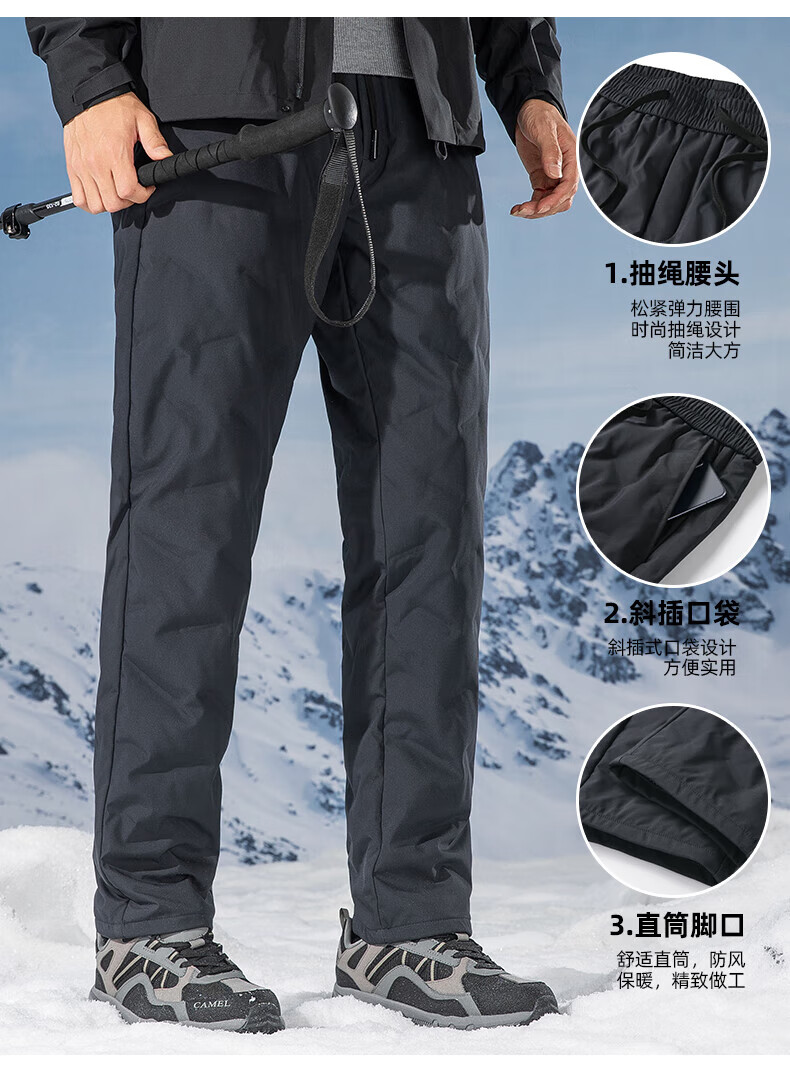 鸭鸭(YAYA)男士羽绒裤直筒加厚松紧腰弹力保暖中青年冬季新年防寒休闲裤子 黑色 XL 180(建议130-150斤)