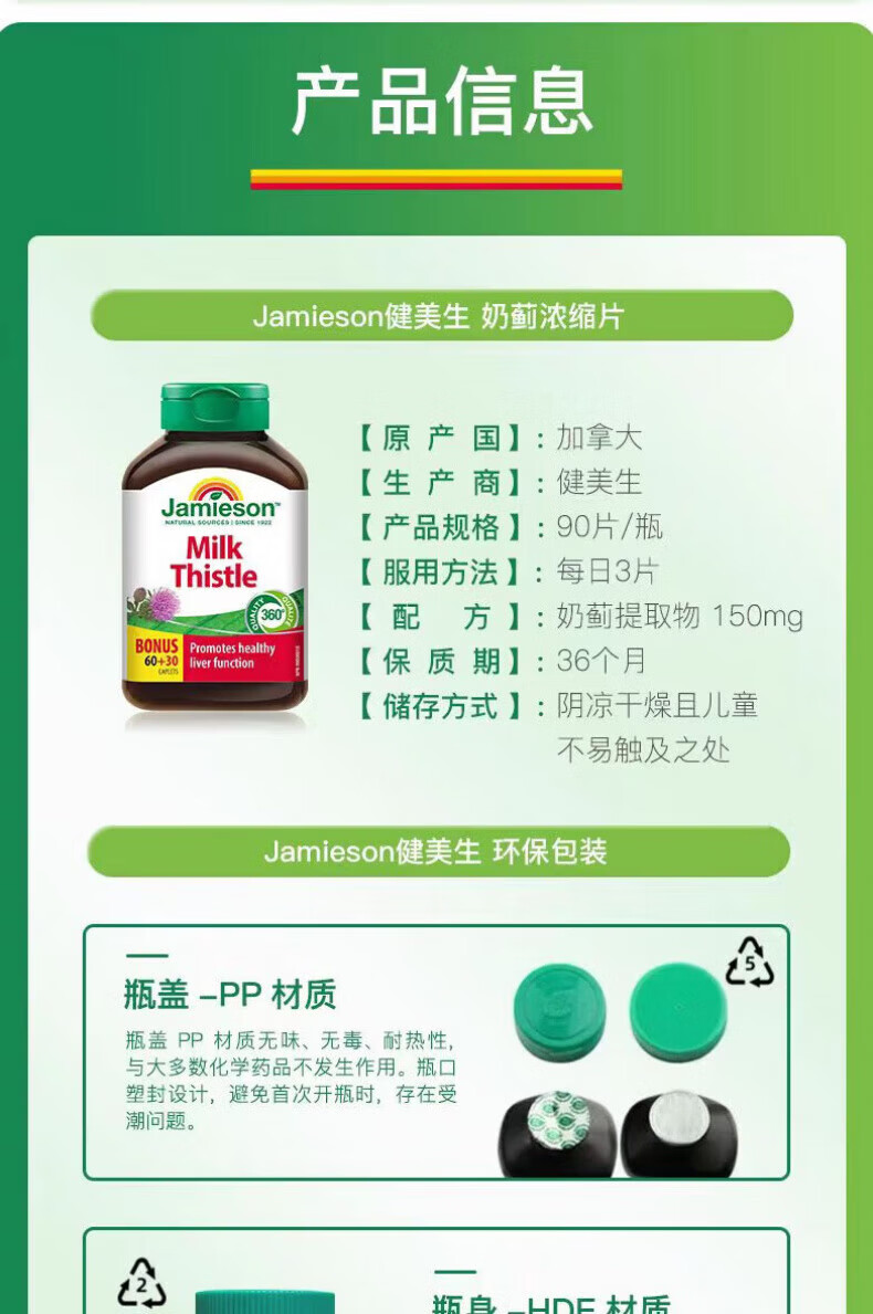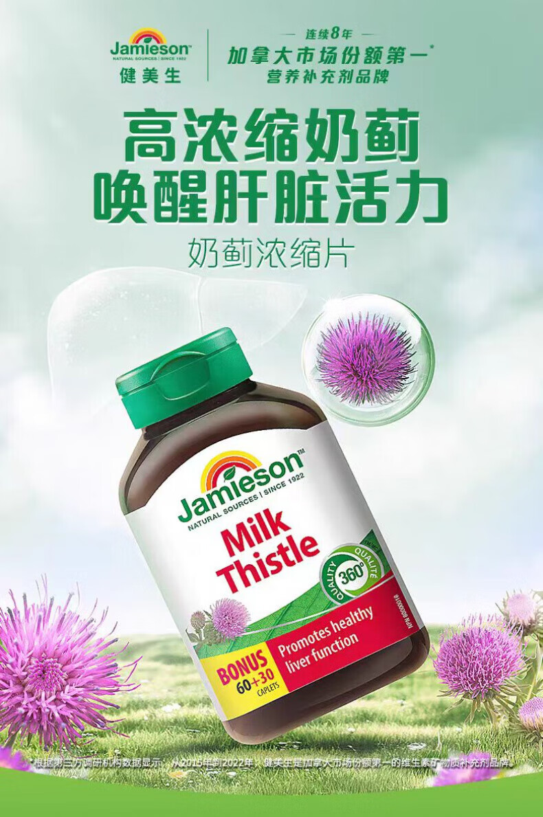 健美生(Jamieson)加拿大原装进口奶蓟草浓缩片熬夜应酬养肝90片 1瓶*90粒(保质期到 1瓶