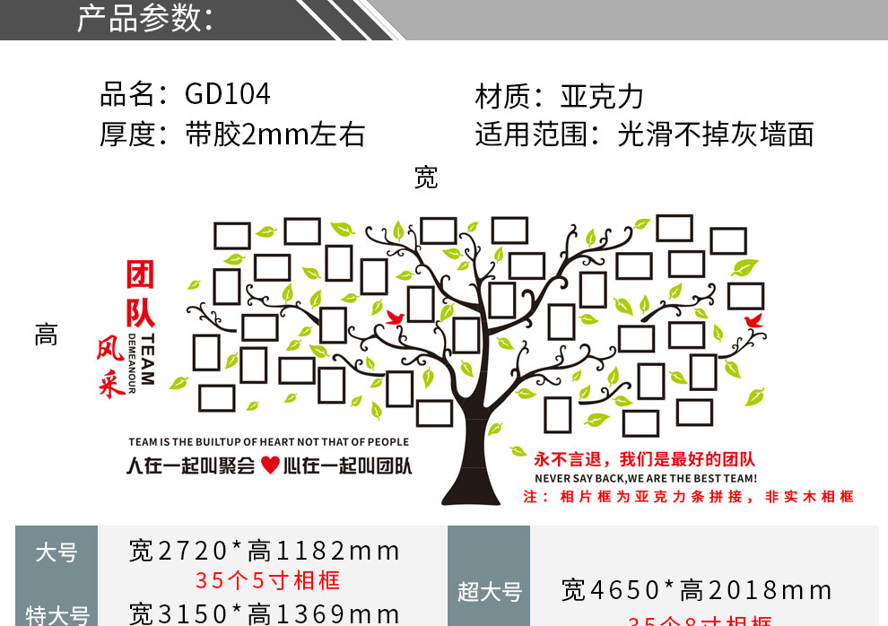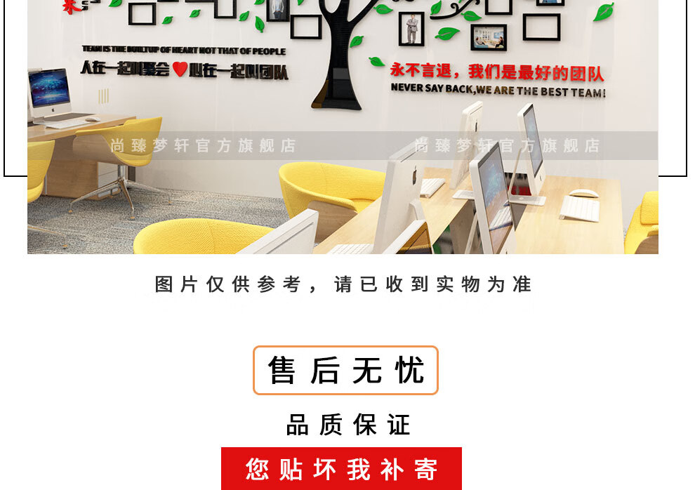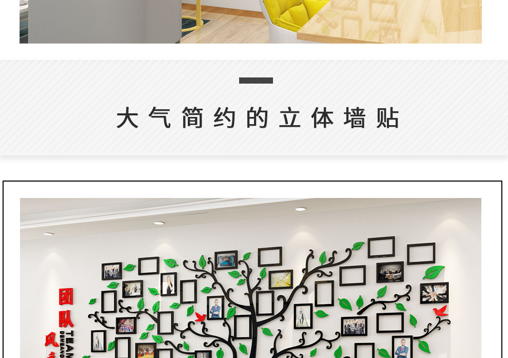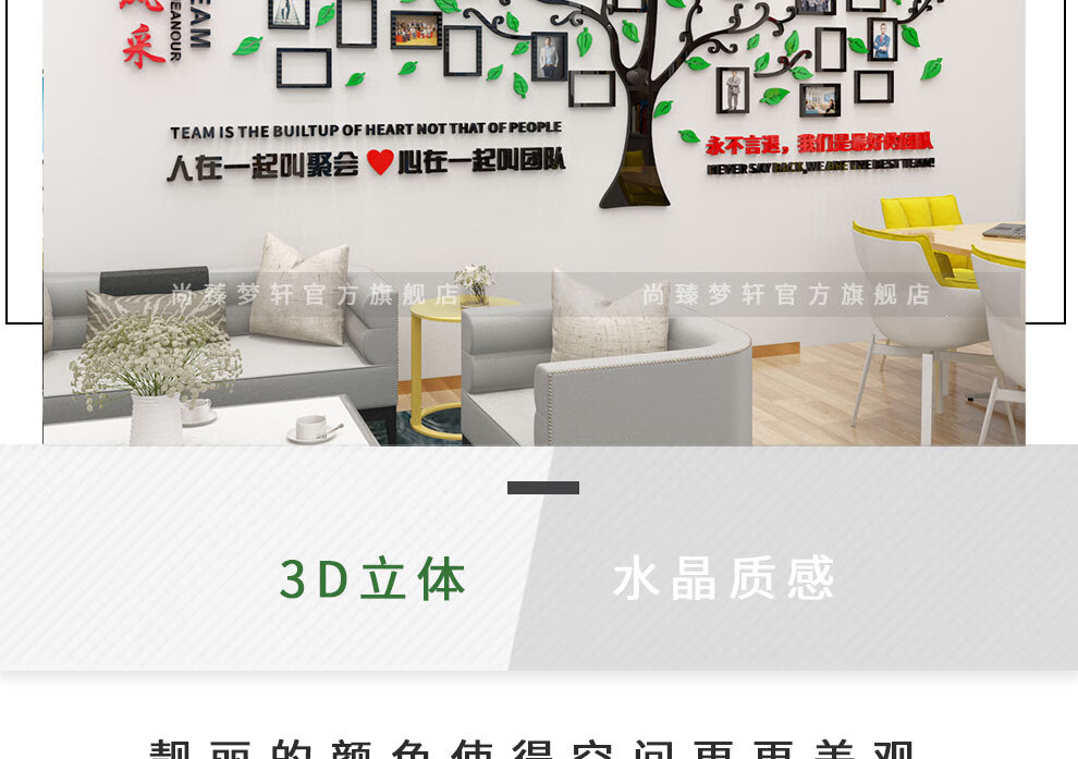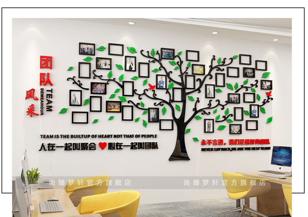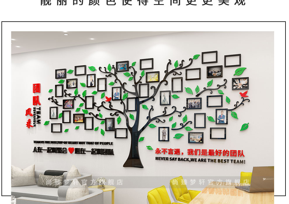 尚臻梦轩 3d立体亚克力墙贴公司企业文化背景墙贴办公室装饰团队风采照片树墙贴 大号:宽2.72米,高1.18米