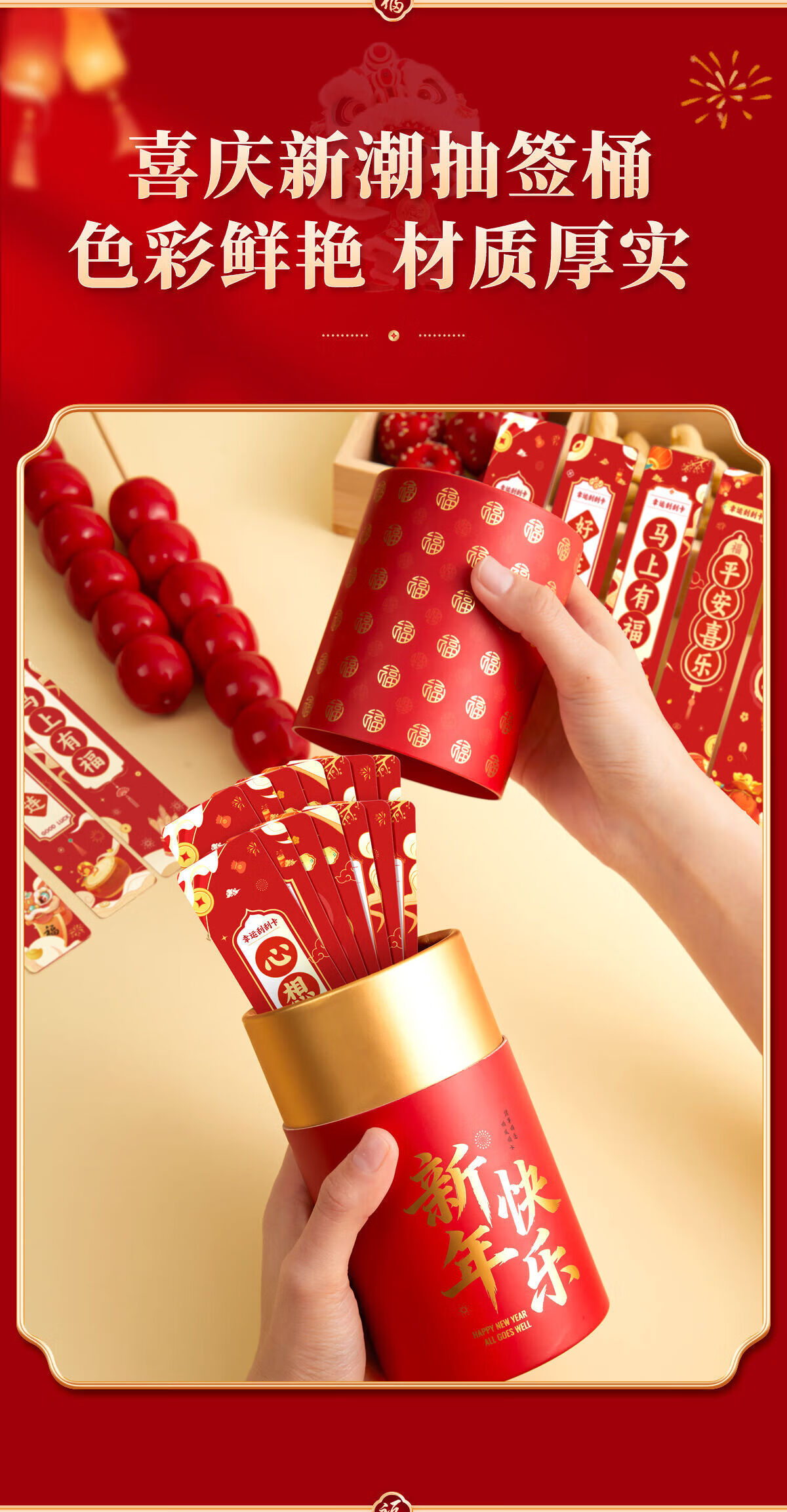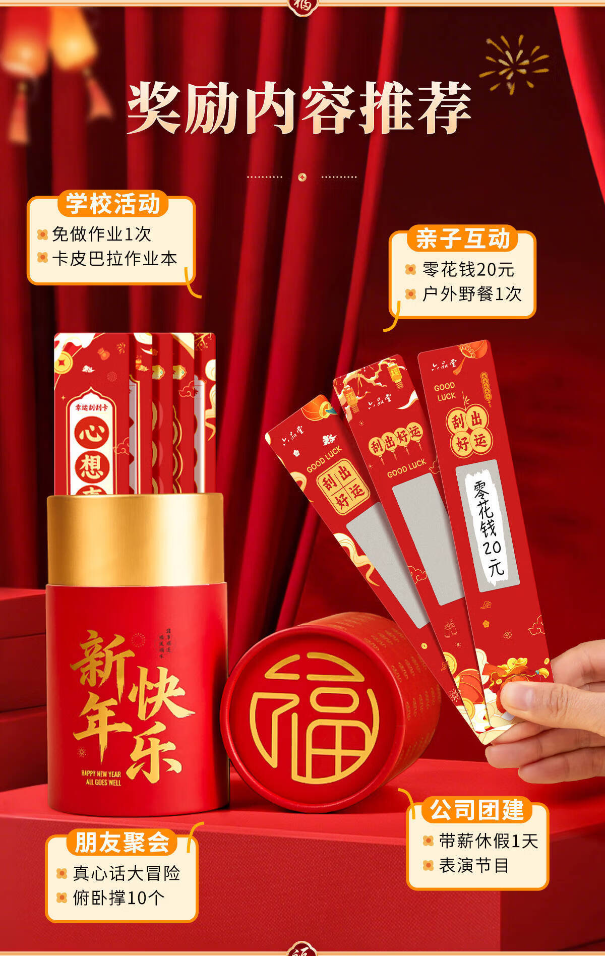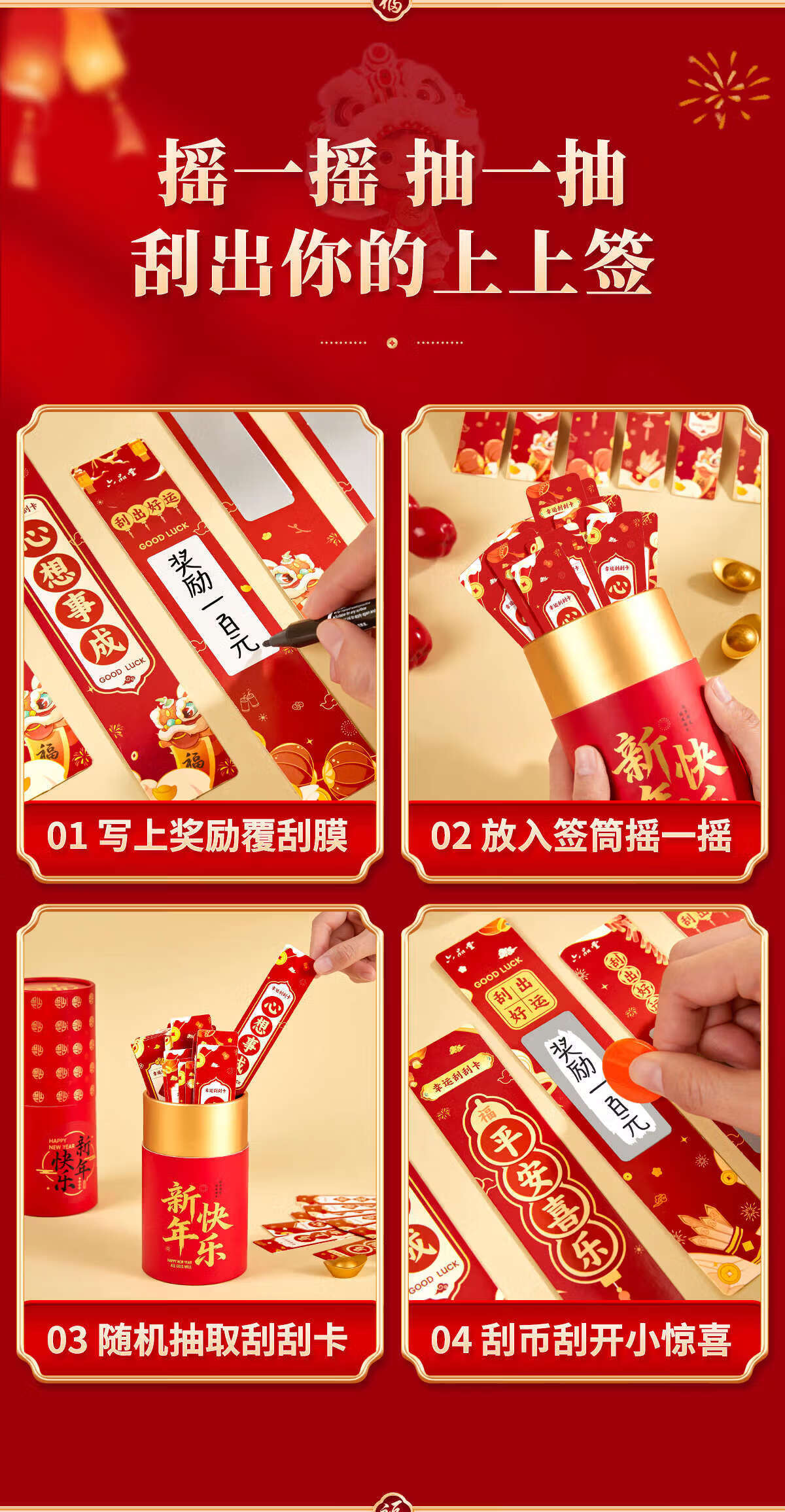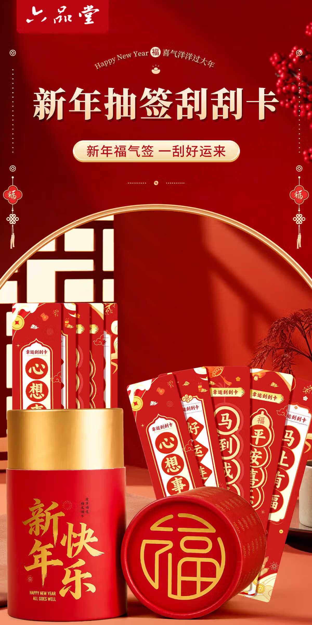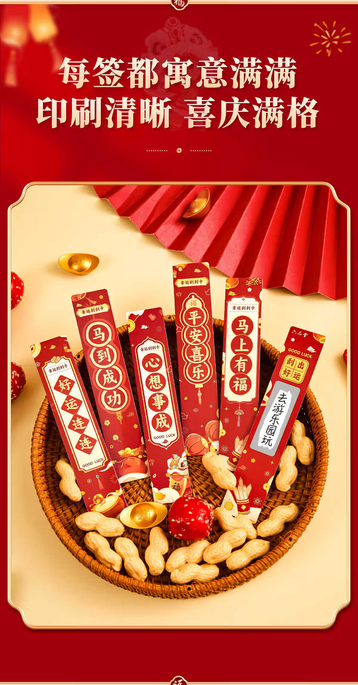 六品堂2026年抽签桶刮刮卡奖励新年手写祝福语卡片班级公司趣味抽签桶 50张【礼桶装】马年抽签版