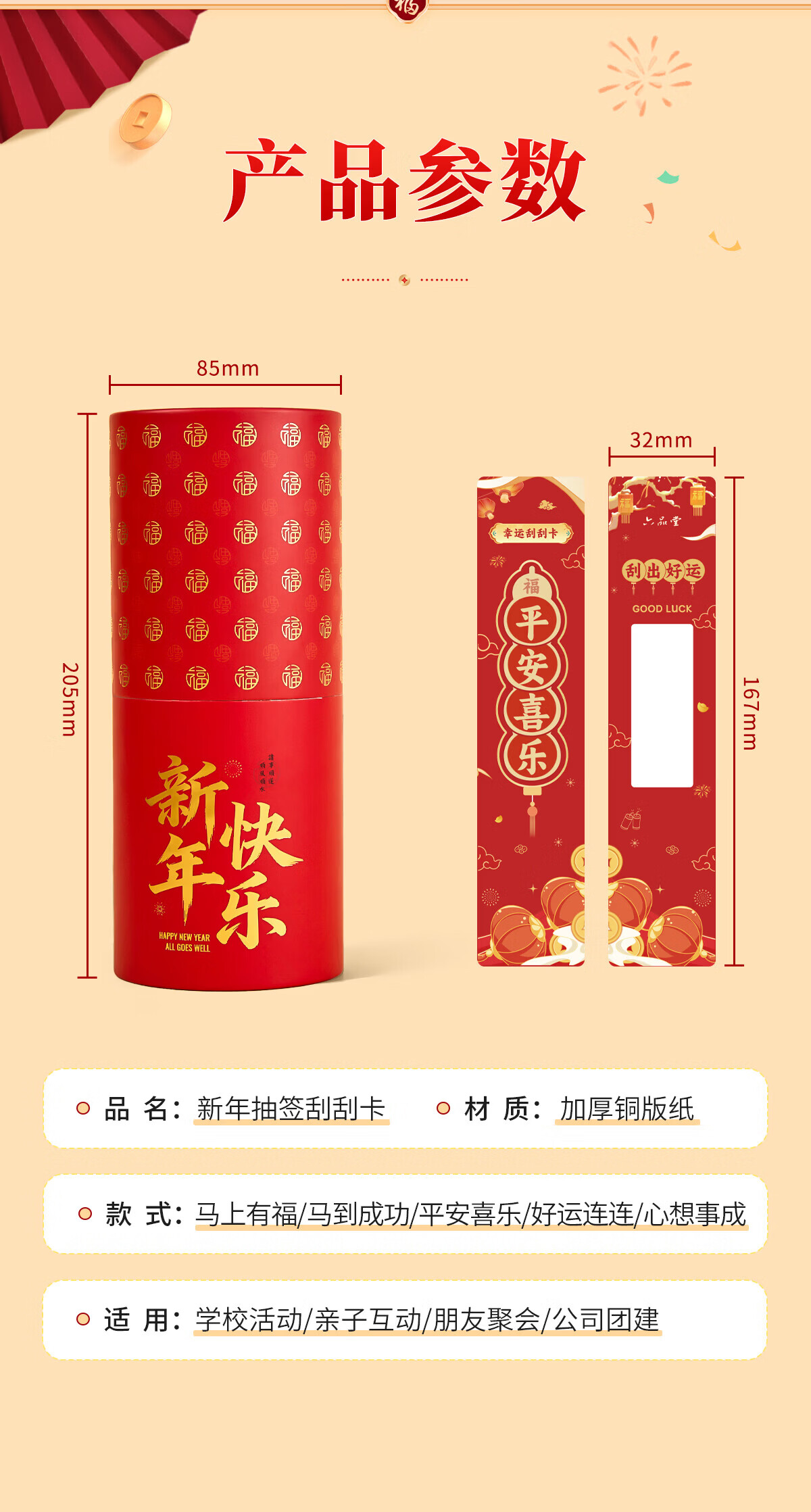 六品堂2026年抽签桶刮刮卡奖励新年手写祝福语卡片班级公司趣味抽签桶 80张【礼桶装】马年抽签版