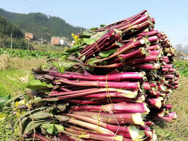 现摘红菜苔湖北红菜苔蔬菜红菜苔菜心紫菜苔油菜苔菜心芸菜苔便宜 净重1斤 露天种植 脆嫩红菜苔 泡沫箱+保鲜膜锁鲜发货