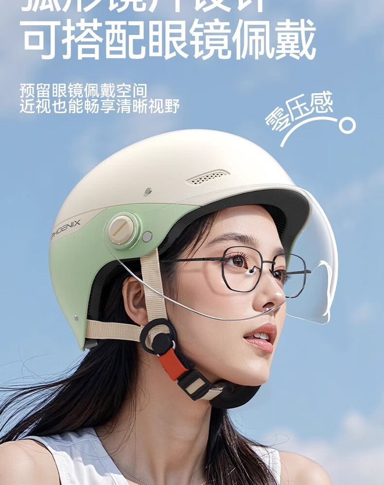 凤凰3C认证电动车头盔女夏季不压头发四季通用男士2025新款防晒安全帽 双拼浅灰【长茶】
