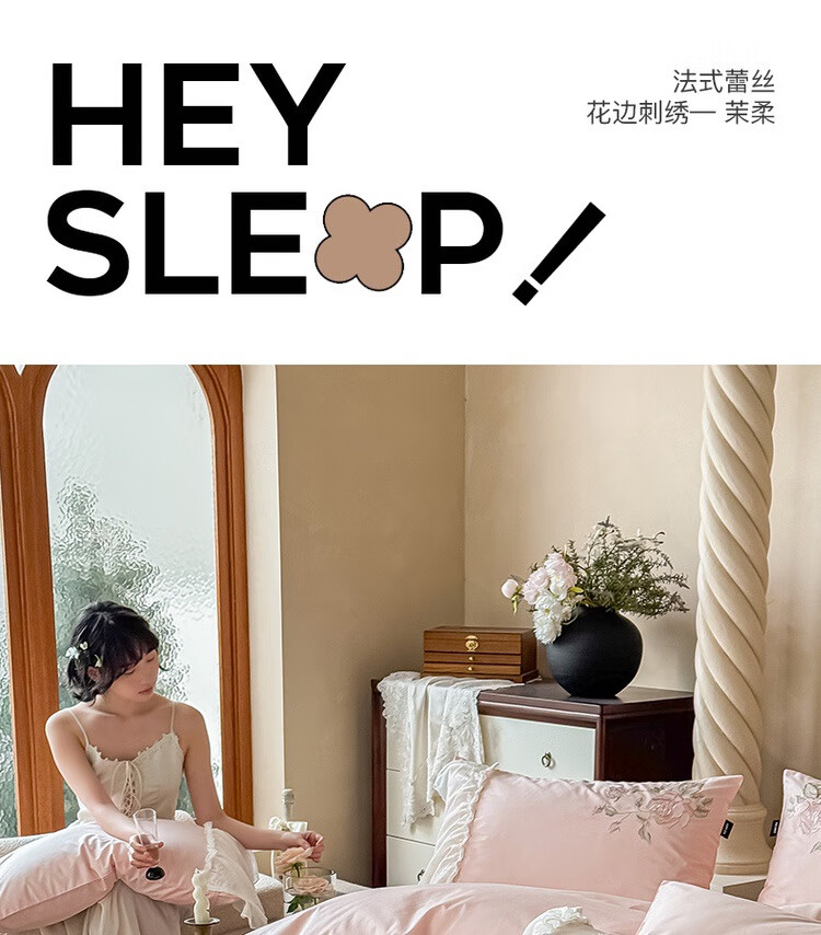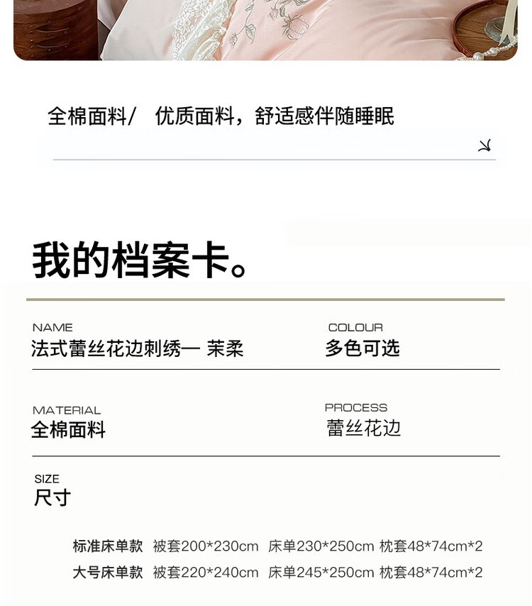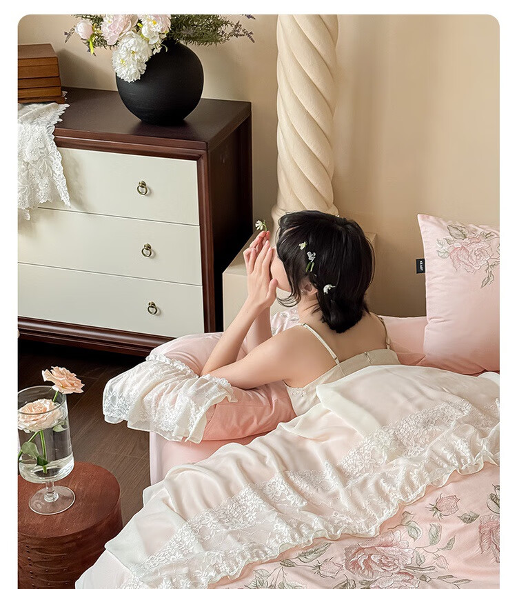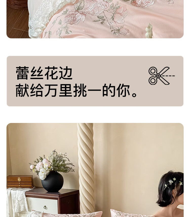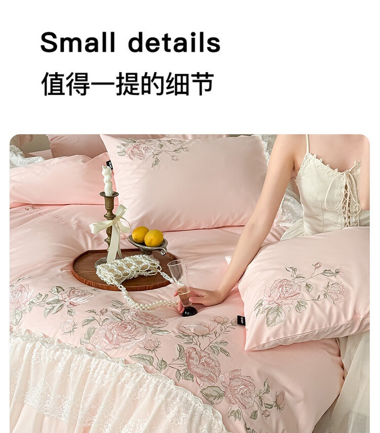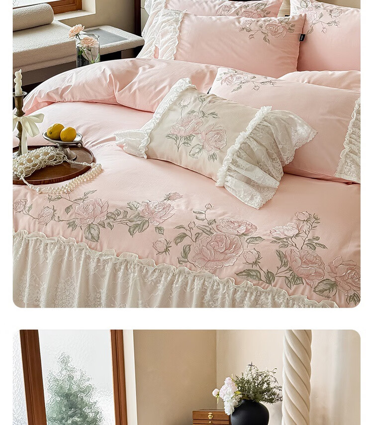 水星系列家纺高级蕾丝少女120S长绒棉轻奢全棉四件套纯棉花边被套床单床上用品 茉柔-紫 120支 全棉刺绣 1.8米床 床笠款 (被套200*230cm)