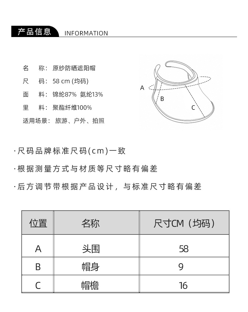 人生故事空顶帽户外遮阳防晒帽子女士遮脸太阳帽韩版沙滩旅游 儿童款黑色 可调节