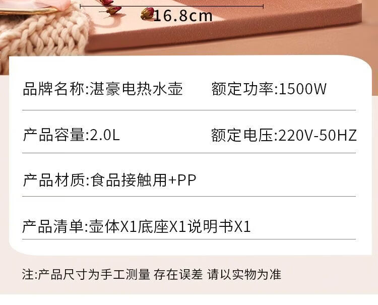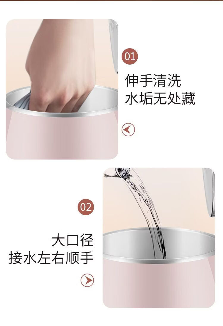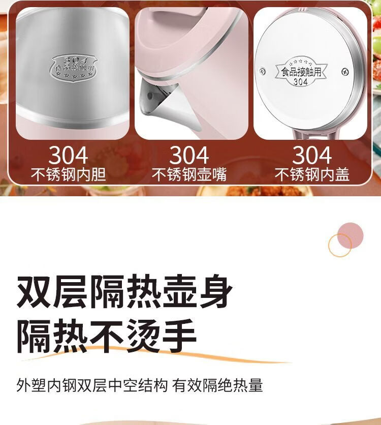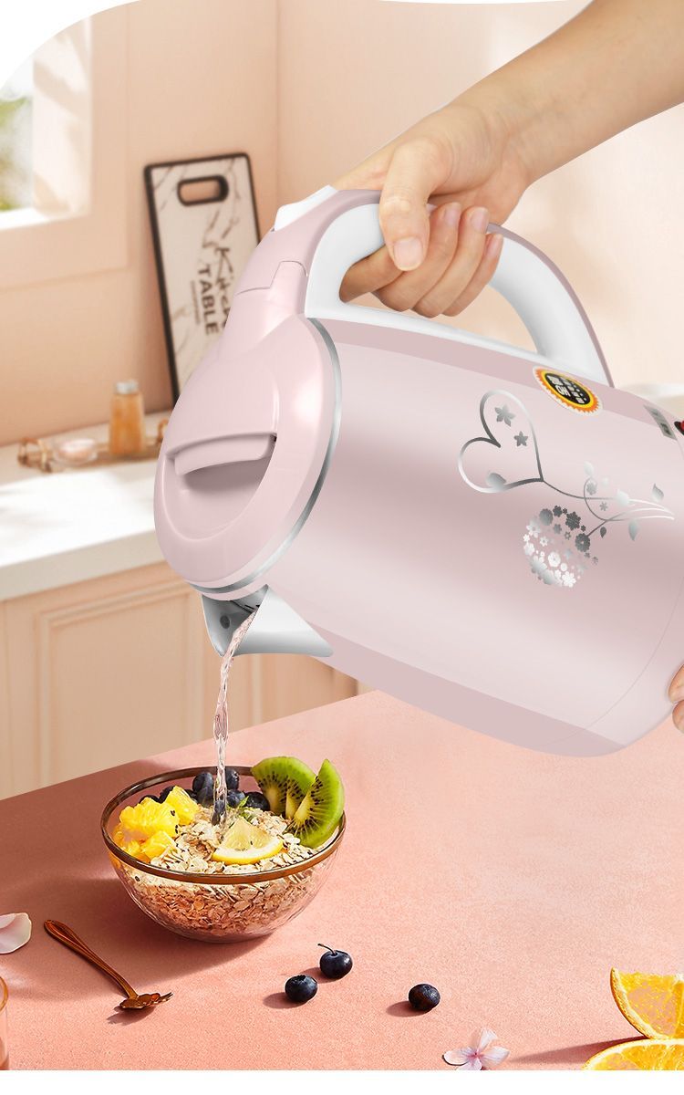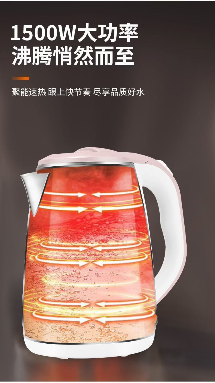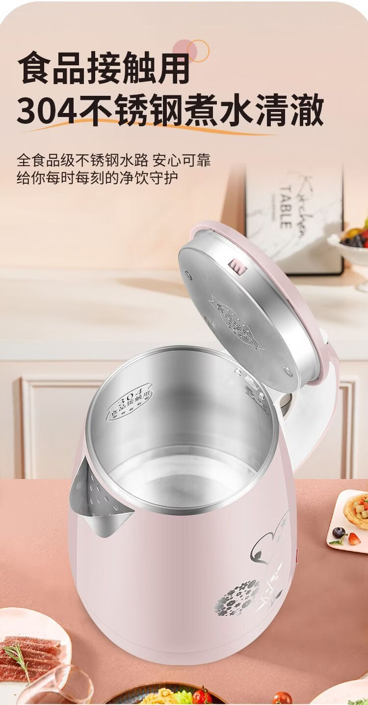 湛豪电热水壶家用保温烧水壶304不锈钢防烫大容量自动断电开水壶 2L 印花-粉色-304不锈钢-2.0L-不保温