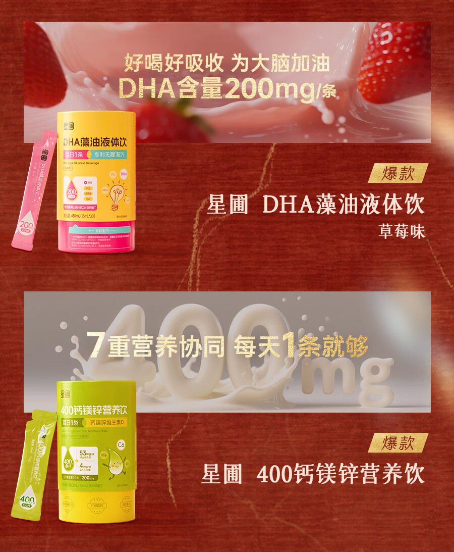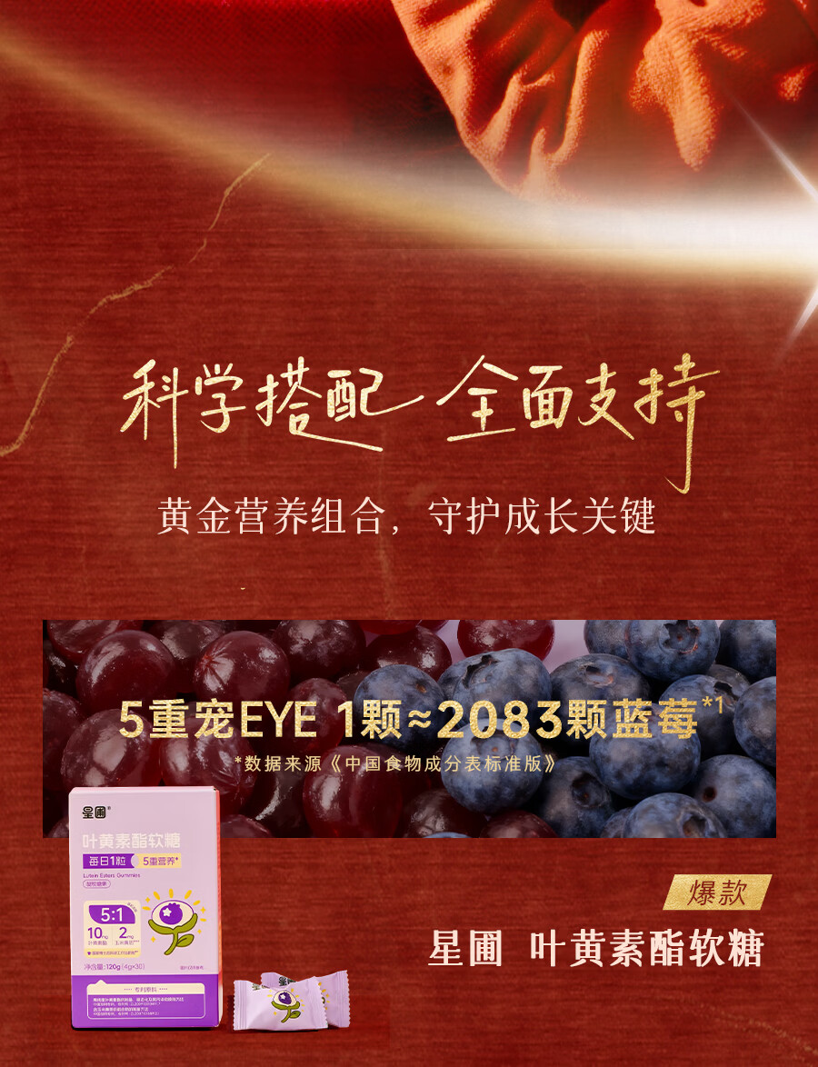 星圃新年零食礼盒儿童健康零食大礼包过年送礼马年限定营养品年货礼盒 儿童营养品礼盒(钙DHA叶黄素组合)