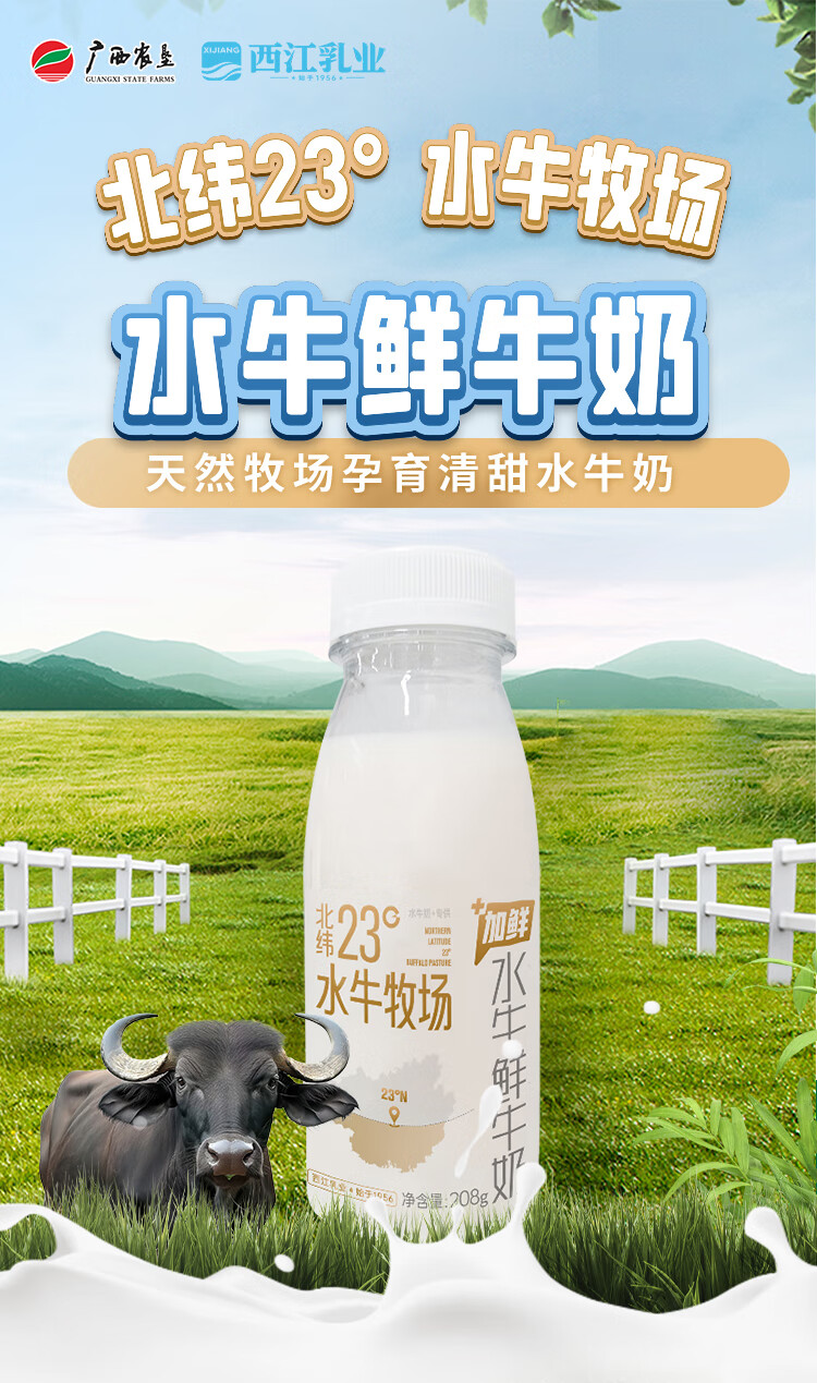 西江乳业水牛奶鲜牛奶208g学生营养早餐奶广西水牛奶【新鲜日期冷链发货】 208g*12瓶【加赠2瓶】