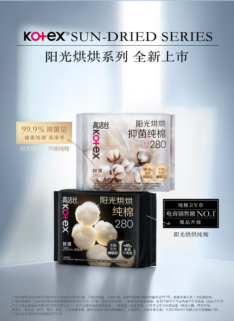 高洁丝【抑菌纯棉+】阳光烘烘卫生巾280mm33片日用姨妈巾京东自营