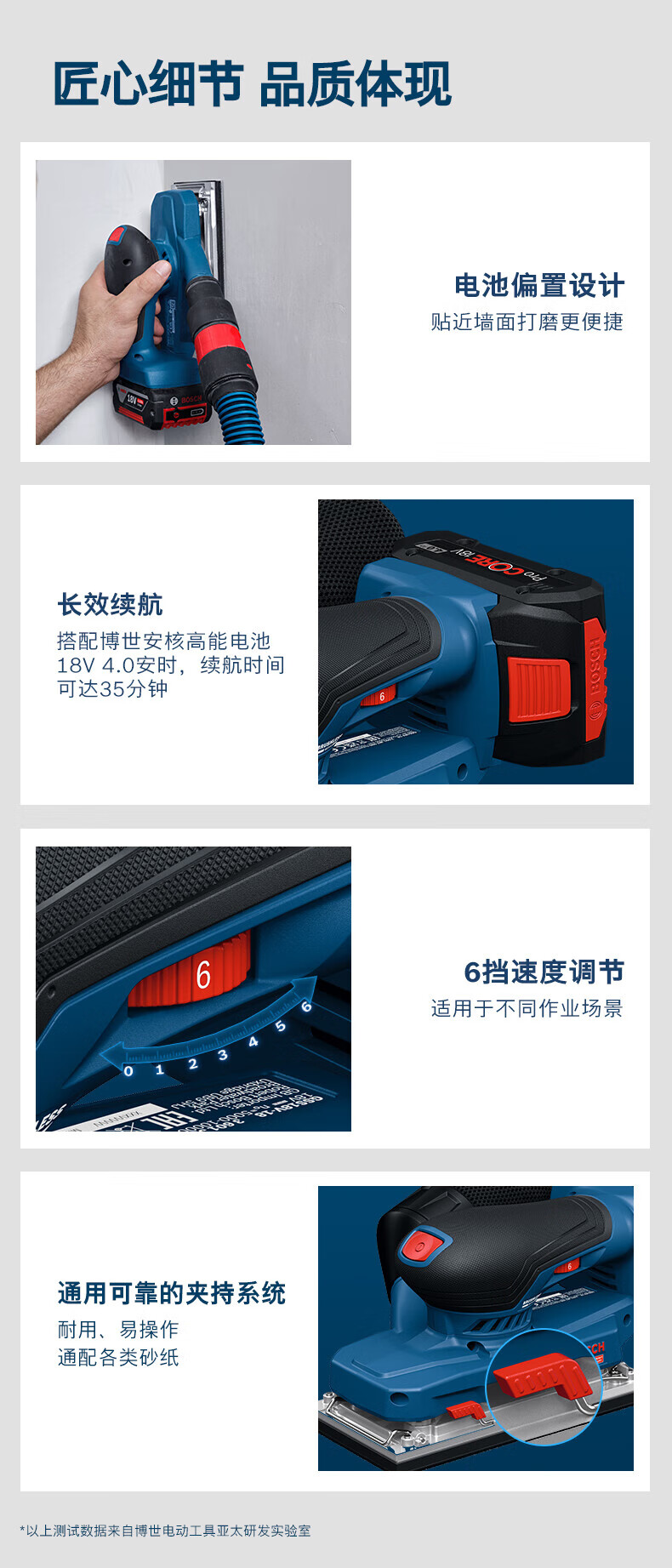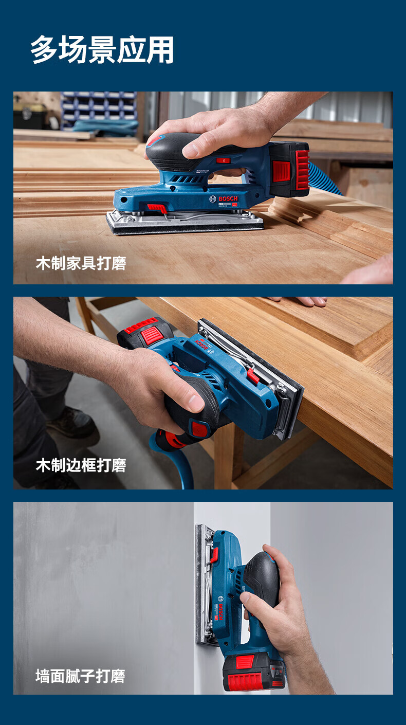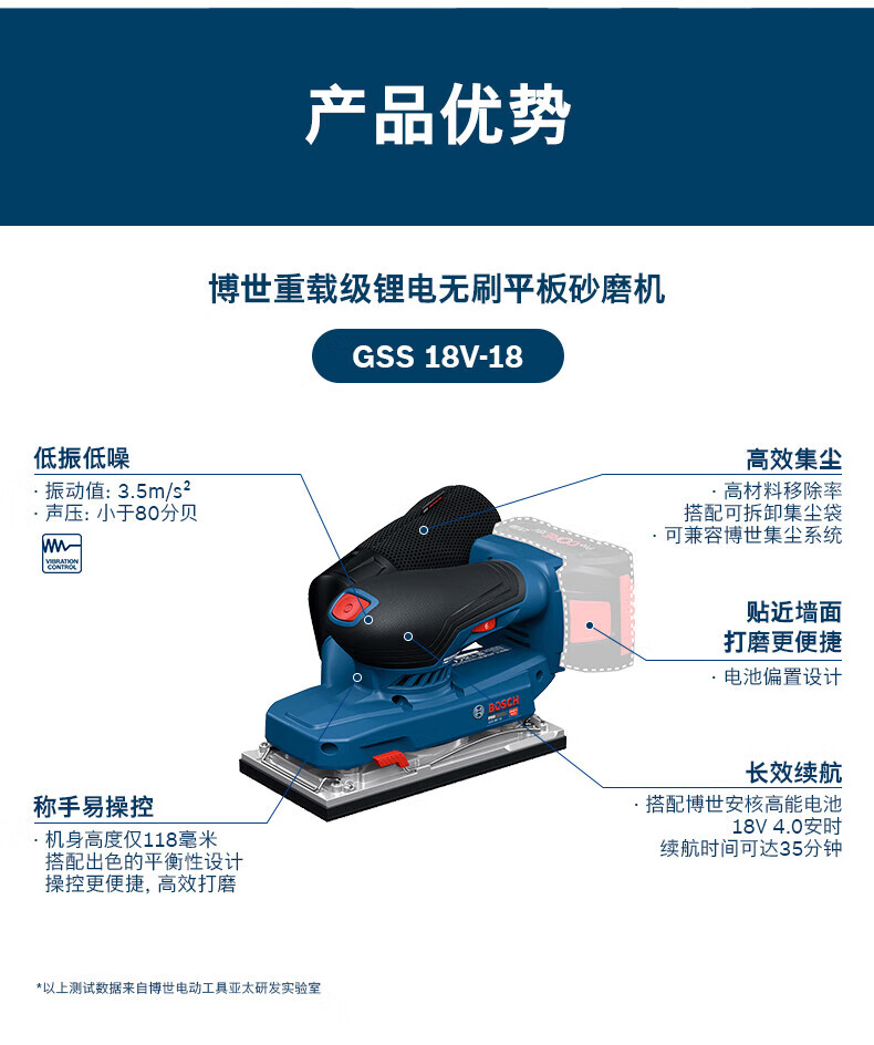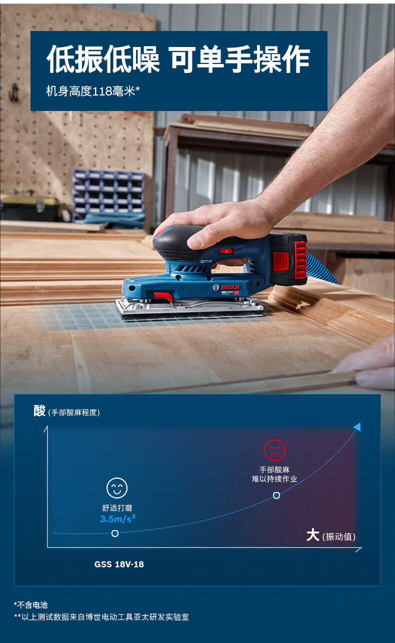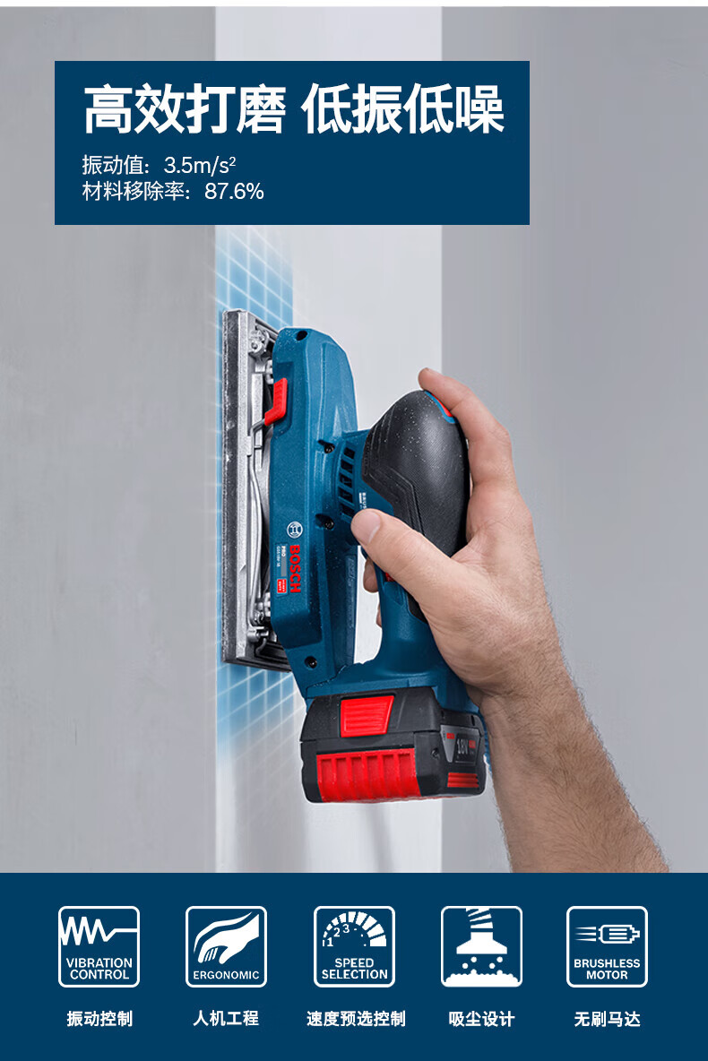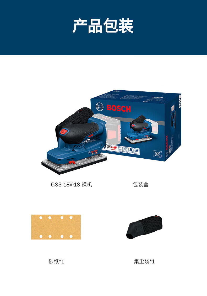 博世(BOSCH)重载级锂电无刷平板砂磨机充电砂纸机木工抛光墙面腻子GSS 18V-18 GSS 18V-18裸机【无电池/充电器】