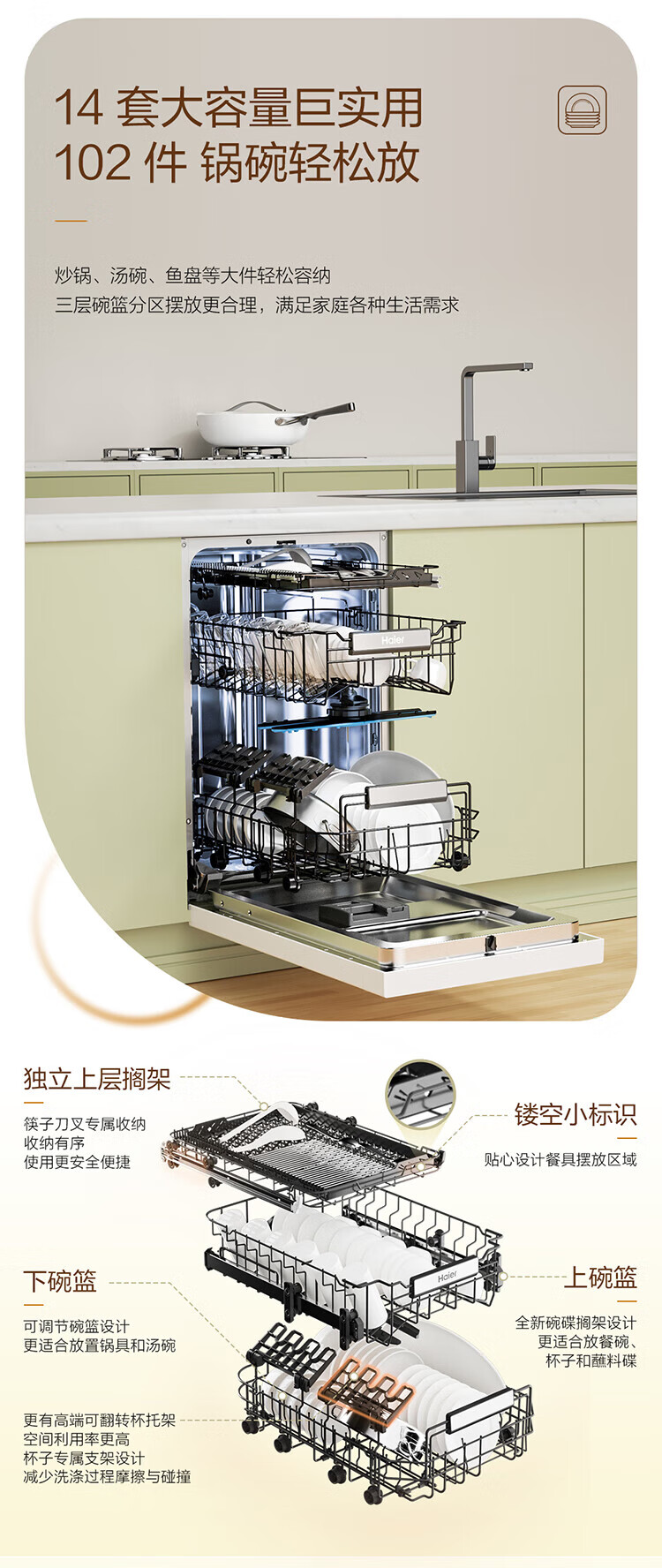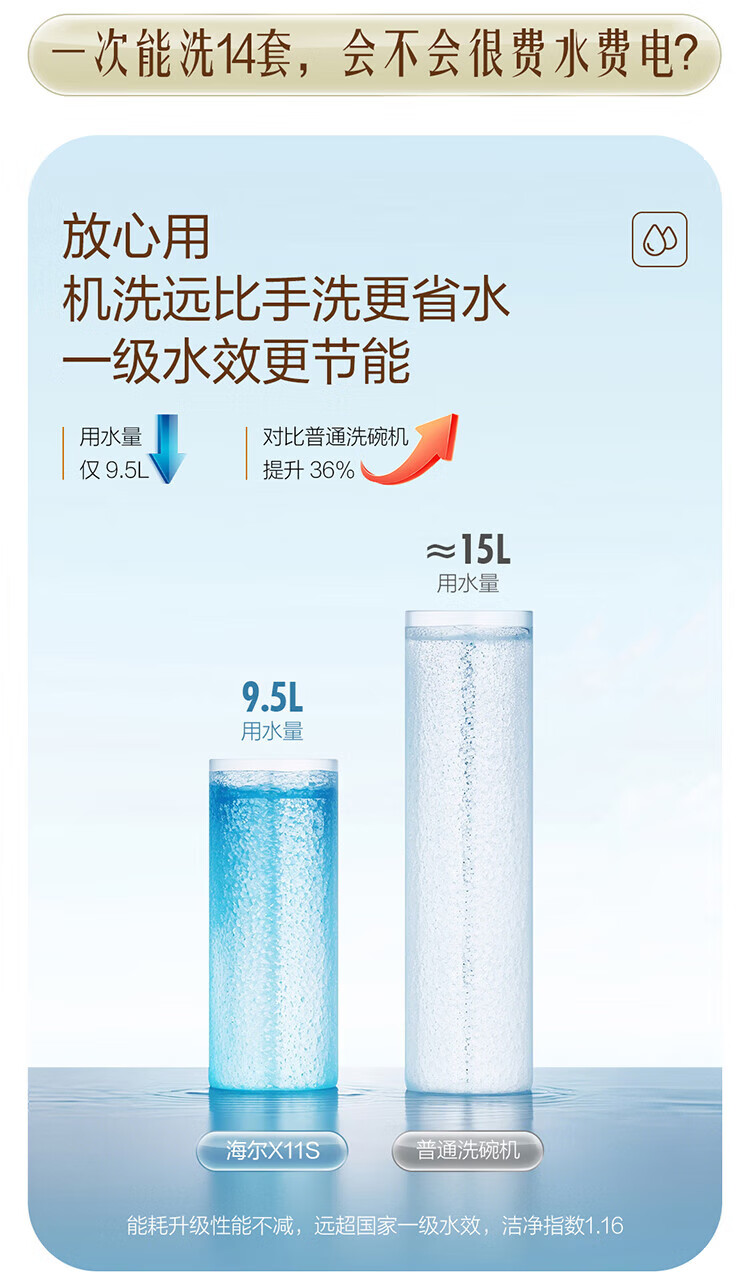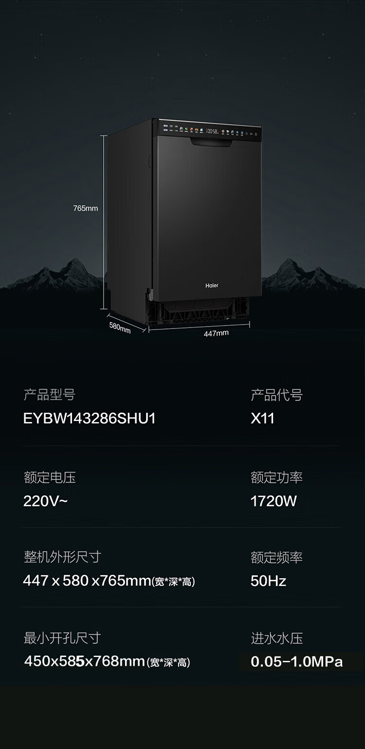 海尔嵌入式14套变频洗碗机双面洗x11/x11小蛮腰极窄面板一级水效智能开门速干五星级消杀速洗消存一体 【X11S常规仓】