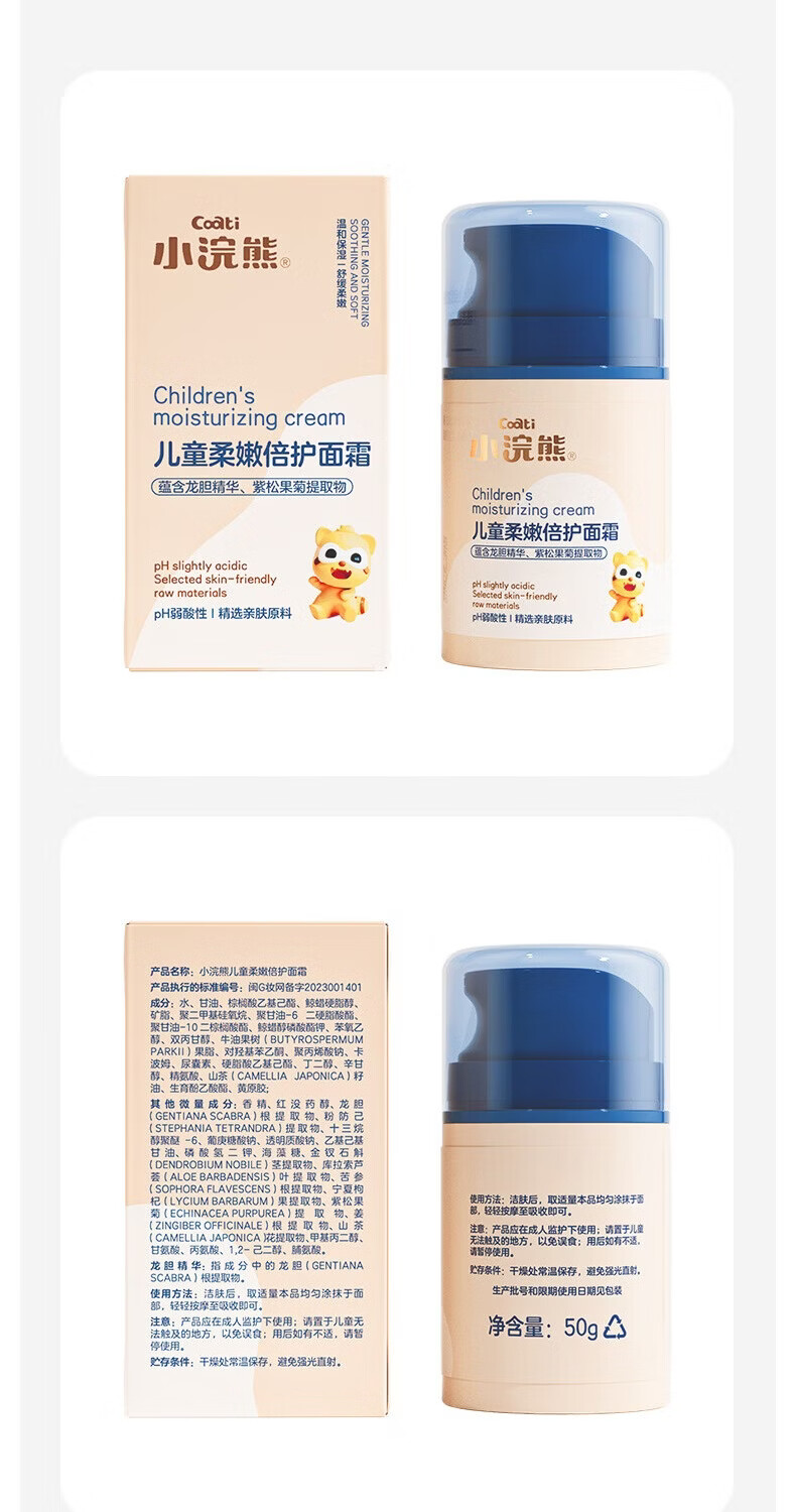 小浣熊儿童面霜 儿童保湿霜 婴儿宝宝保湿补水 儿童润肤乳 宝宝身体乳 保湿霜30g*2+唇膏2.5g*2+护手霜40g