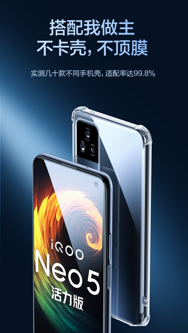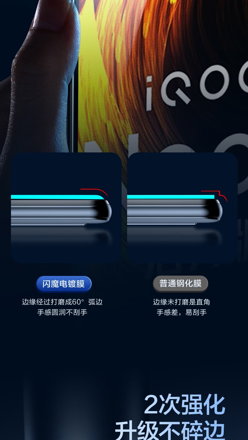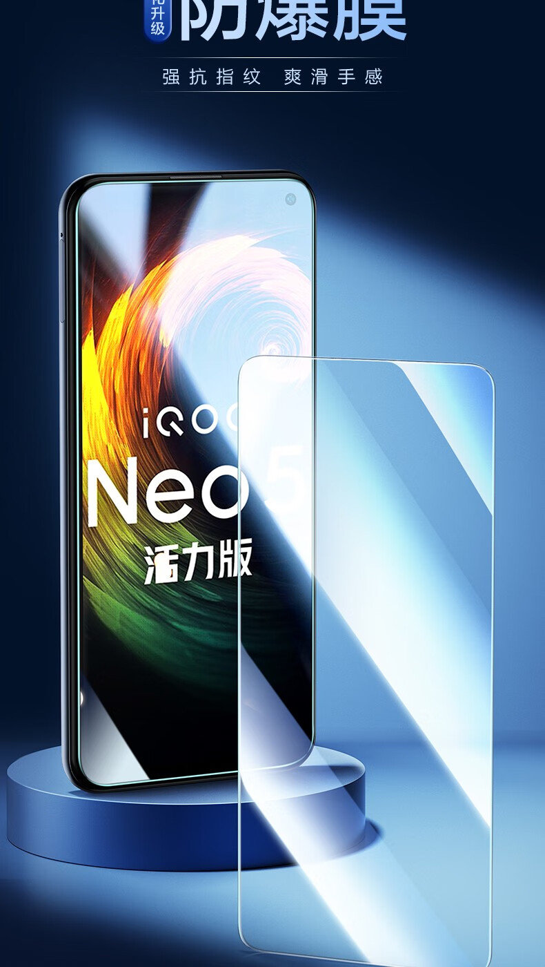 闪魔【甄选直发】 适用于IQOO neo5活力版钢化膜 高清防指纹防摔防手汗手机膜 【加强版 电镀双倍抗指纹】2片装+神器