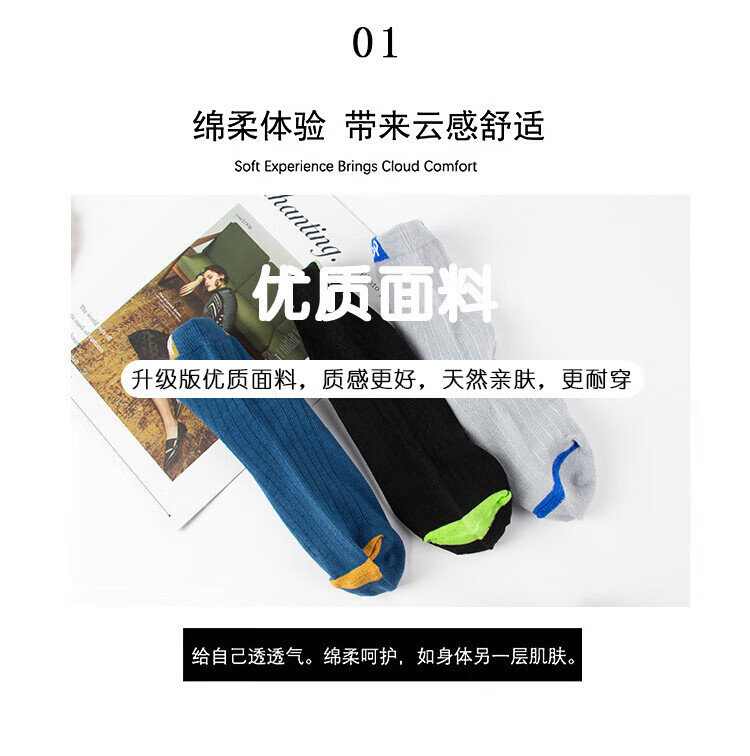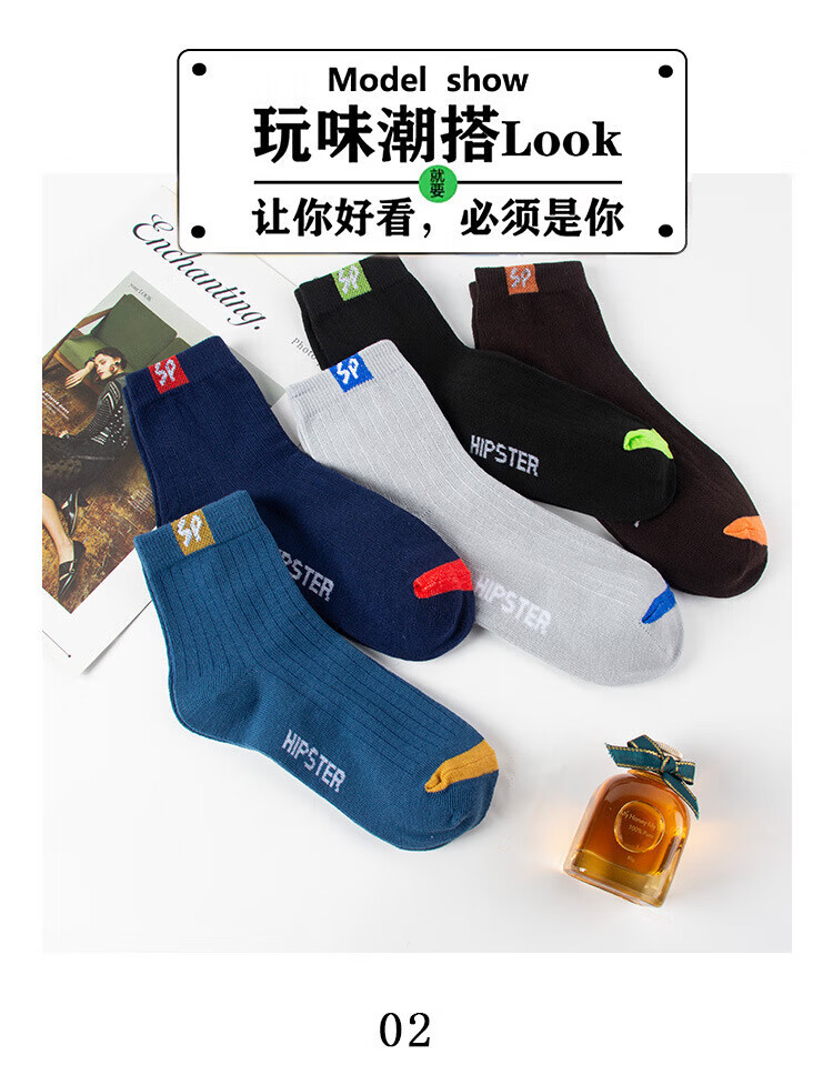 【甄选好物】袜子男士中筒春秋款吸汗防臭运动夏季男生商务长袜耐 【颜色随机】 5双
