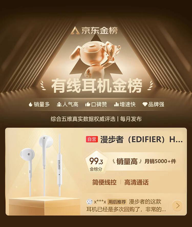 漫步者(EDIFIER)H180 Plus半入耳式有线耳机 3.5mm接口 游戏运动通话降噪K歌吃鸡带麦电脑笔记本 白色