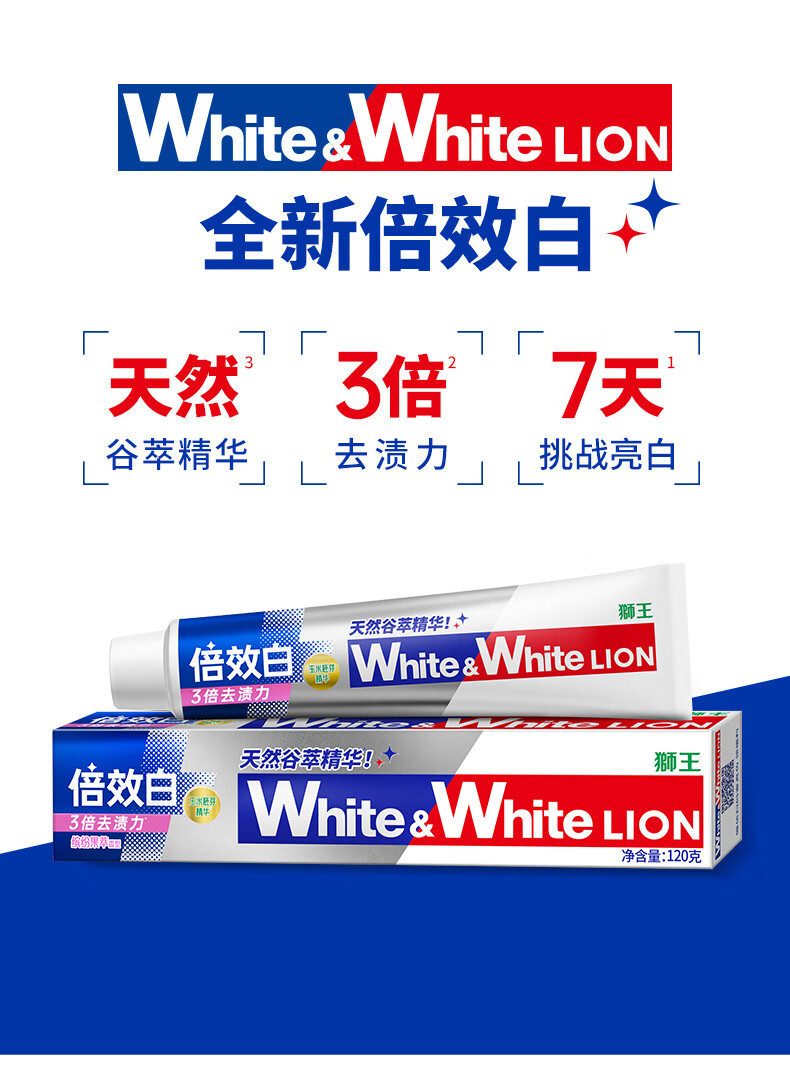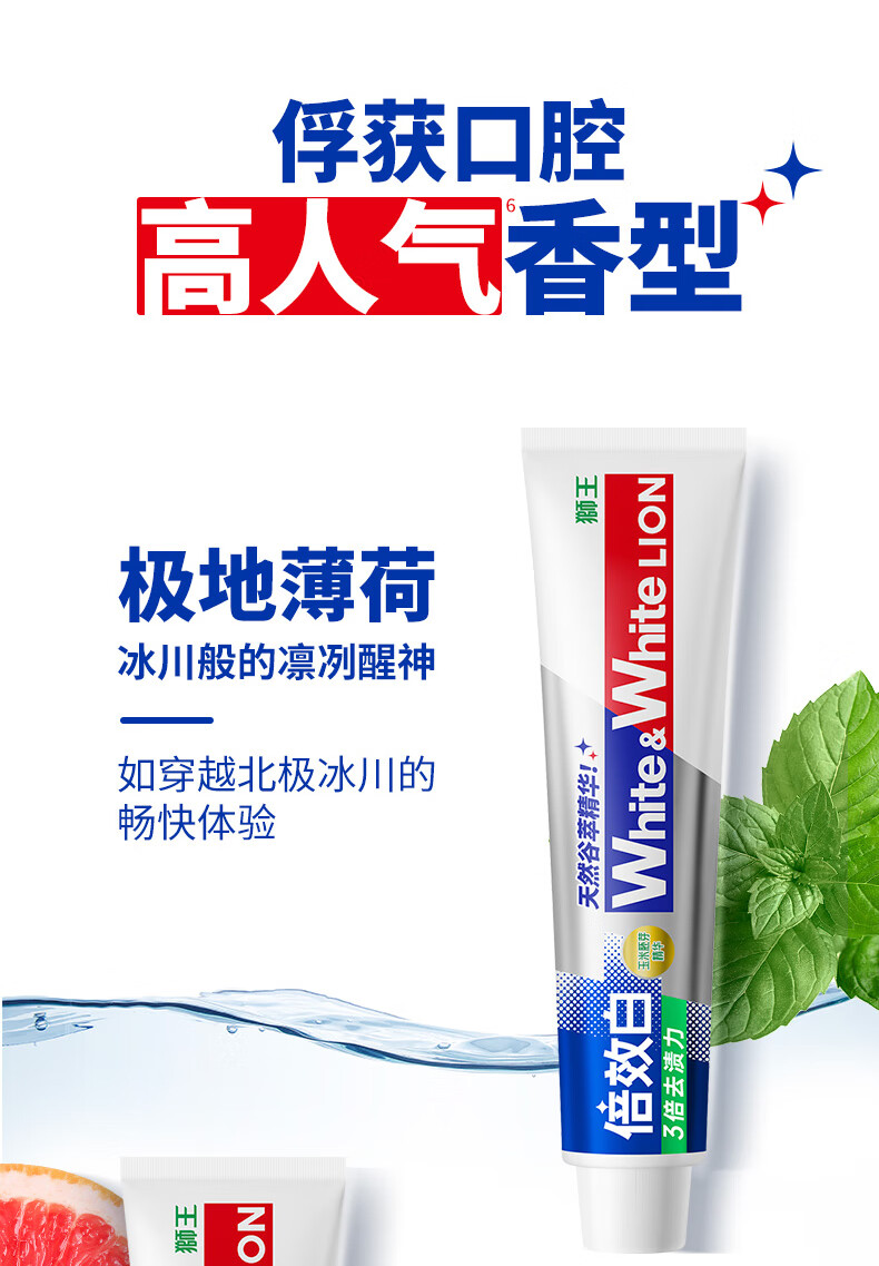 狮王(Lion)WhiteWhite倍效白牙膏缤纷果萃40g 美白去口臭护龈