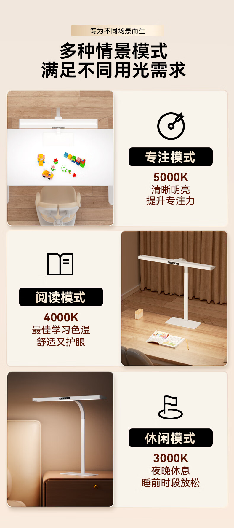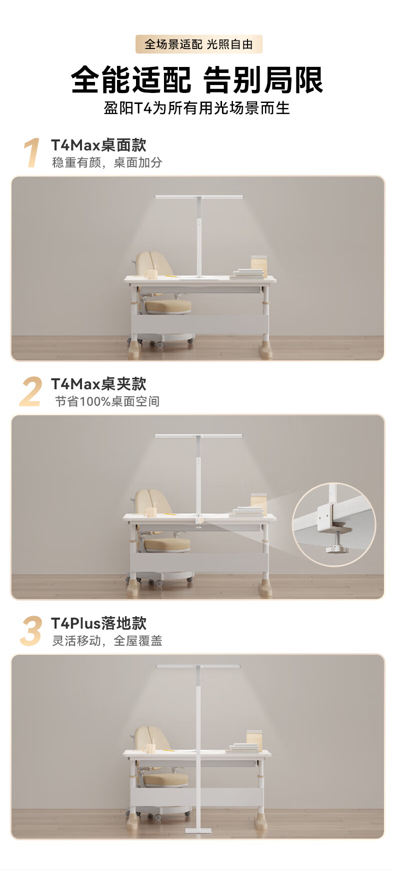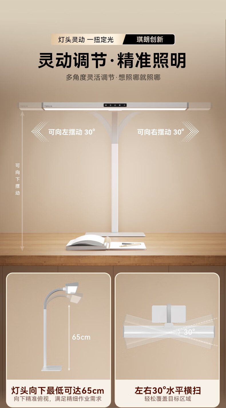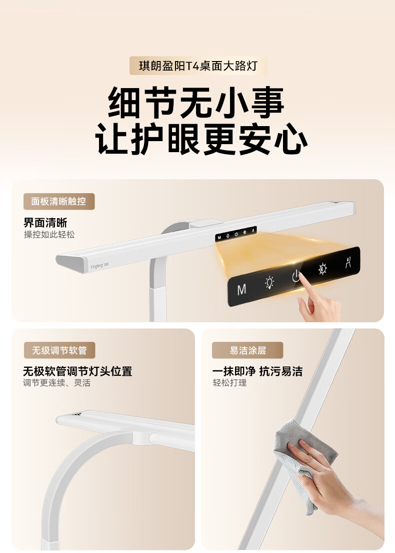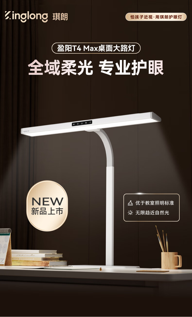 琪朗台式护眼大路灯 桌面立式工作学习灯 儿童家用书桌阅读台灯小夜灯 T4 Max书桌款