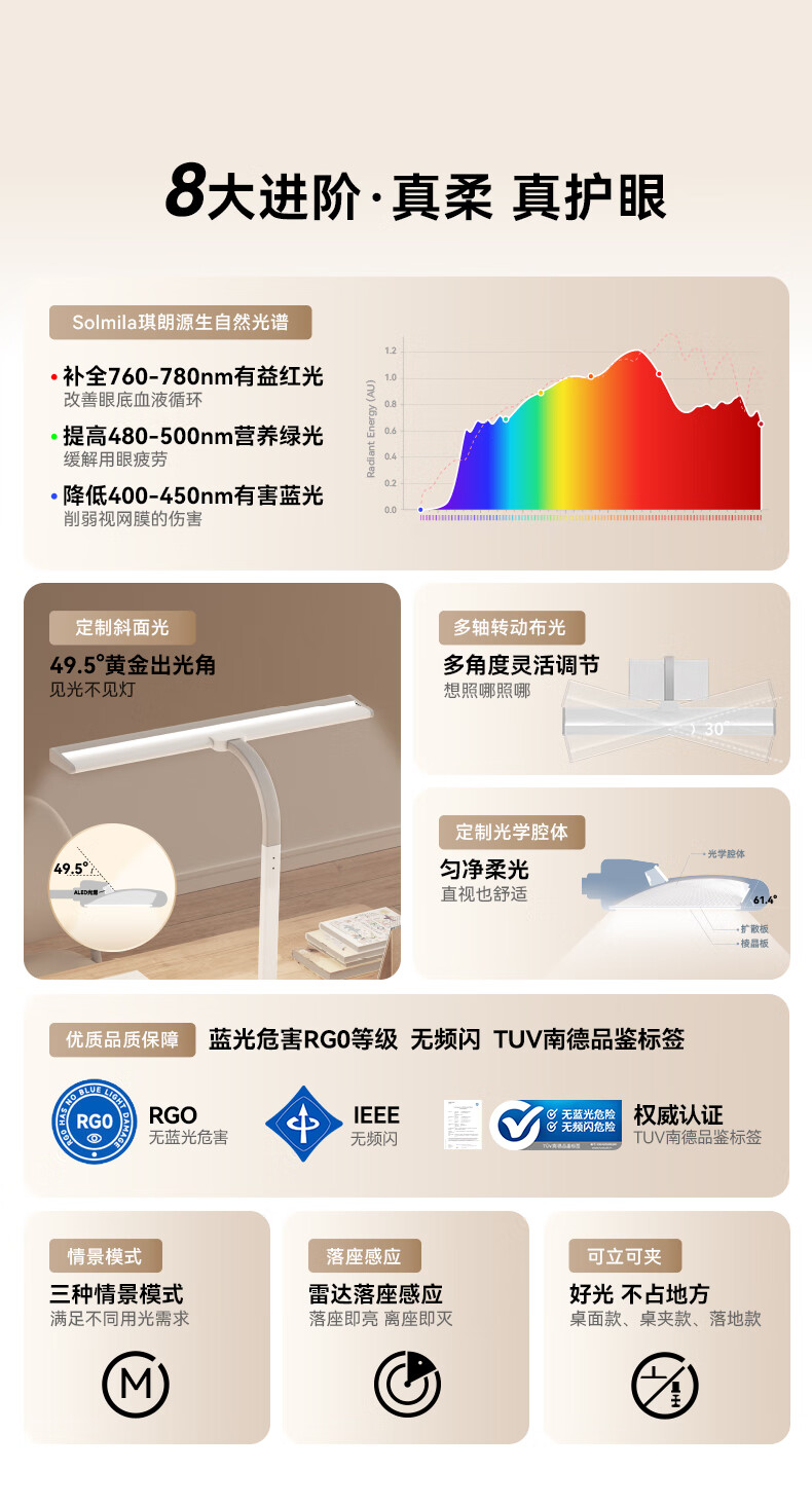 木林森照明红光护眼大路灯雷达智能感应落地灯全光谱护眼台灯