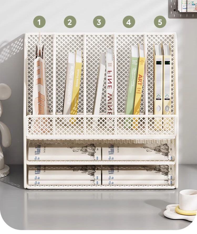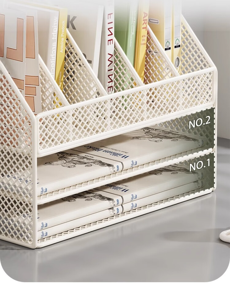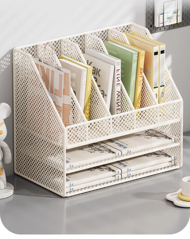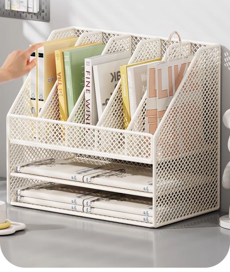 尔思家桌面置物架客厅书架高级感桌上学生课桌旁多层书立办公室文件架 白色